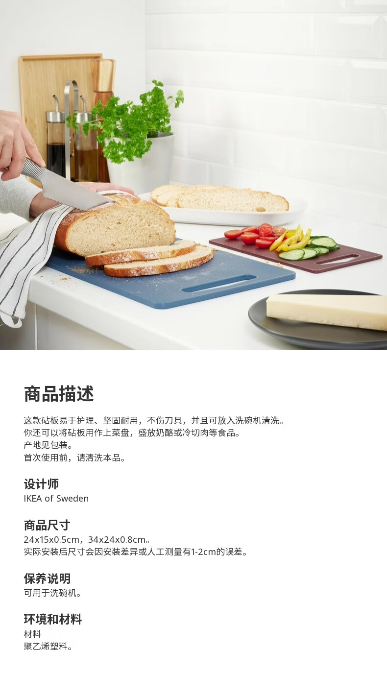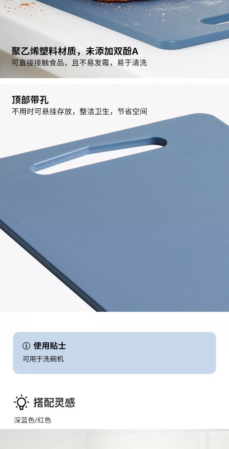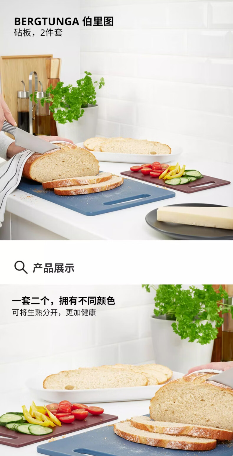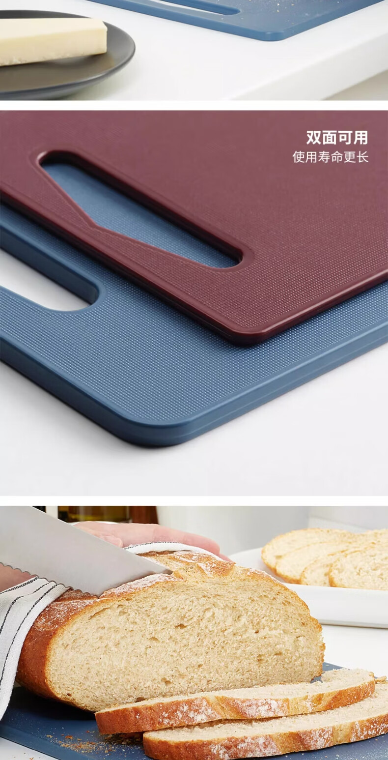 宜家(IKEA)BERGTUNGA伯里图塑料砧板耐用耐磨家用厨房案板切菜板 2件套深蓝色/红色