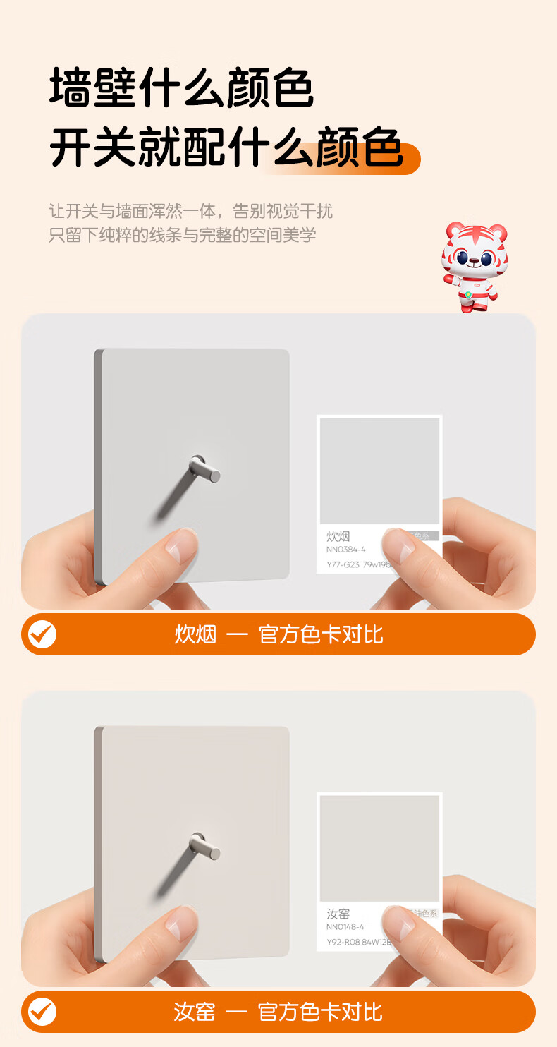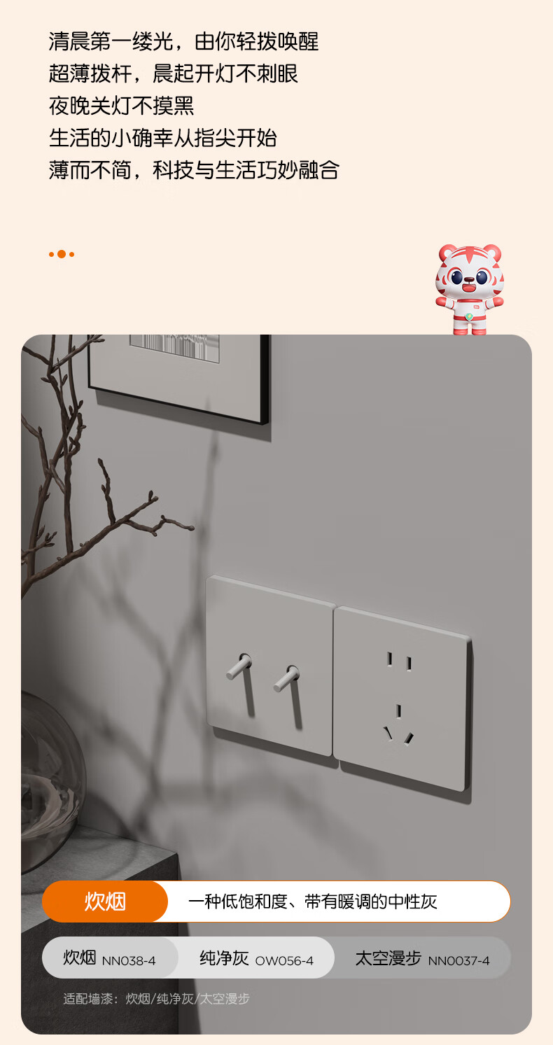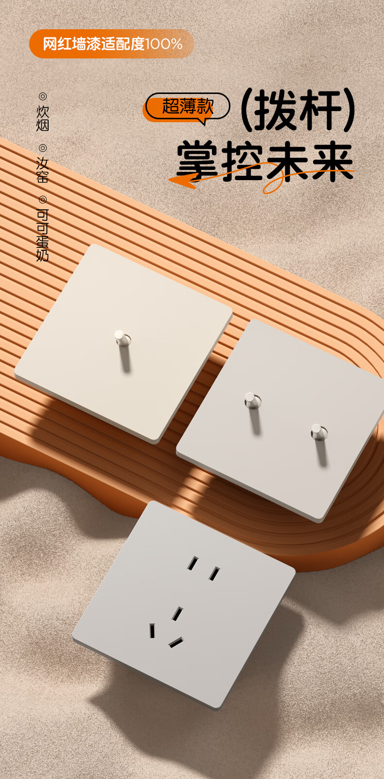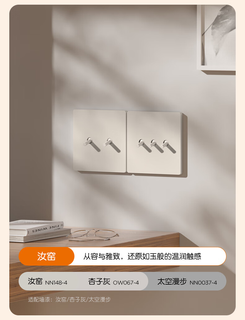 FDD国际电工86型磨砂肤感墙壁插座暗装5.22mm超薄极简汝窑温馨风拨杆开关面板 汝窑-一开单多控通用(拨杆)