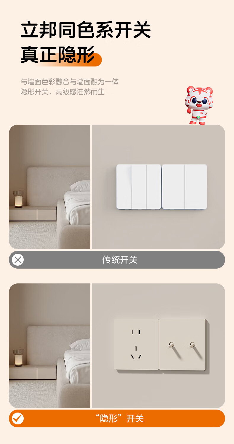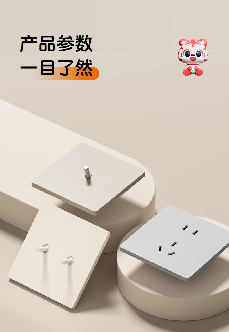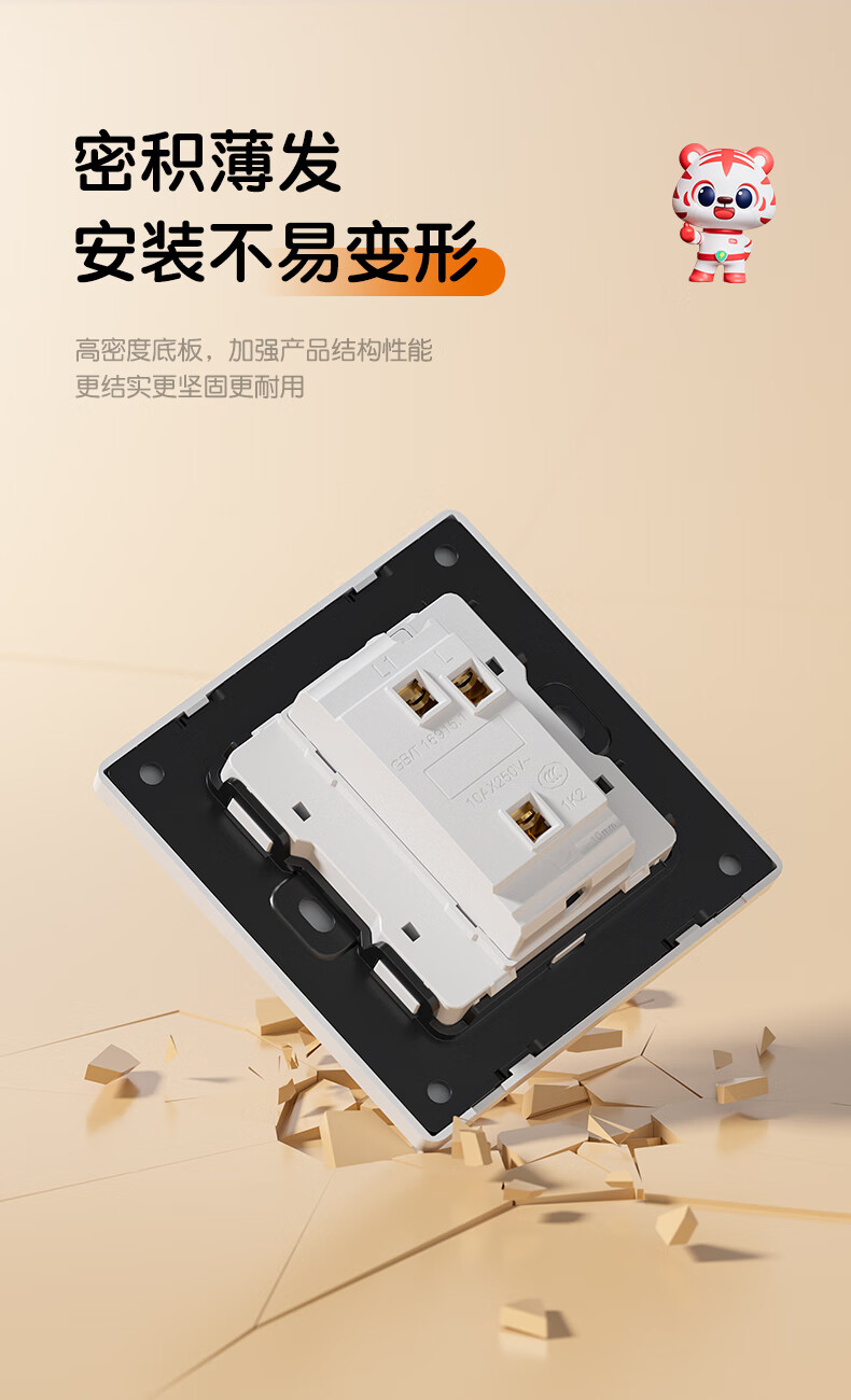 奥克斯超薄钢化玻璃开关插座面板奶油风家用86型墙壁双控一开五孔插座 【钢化超薄】二开多控