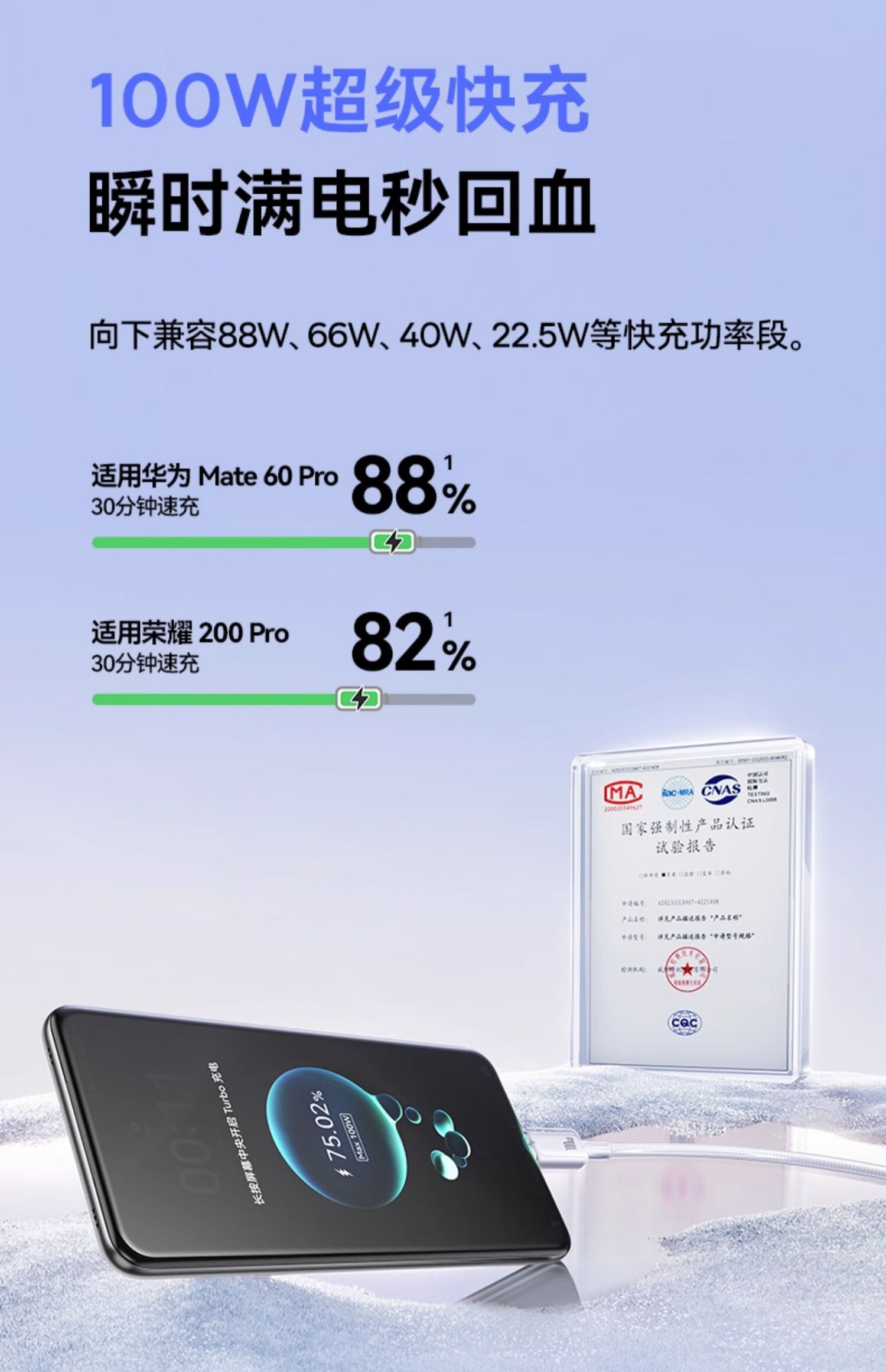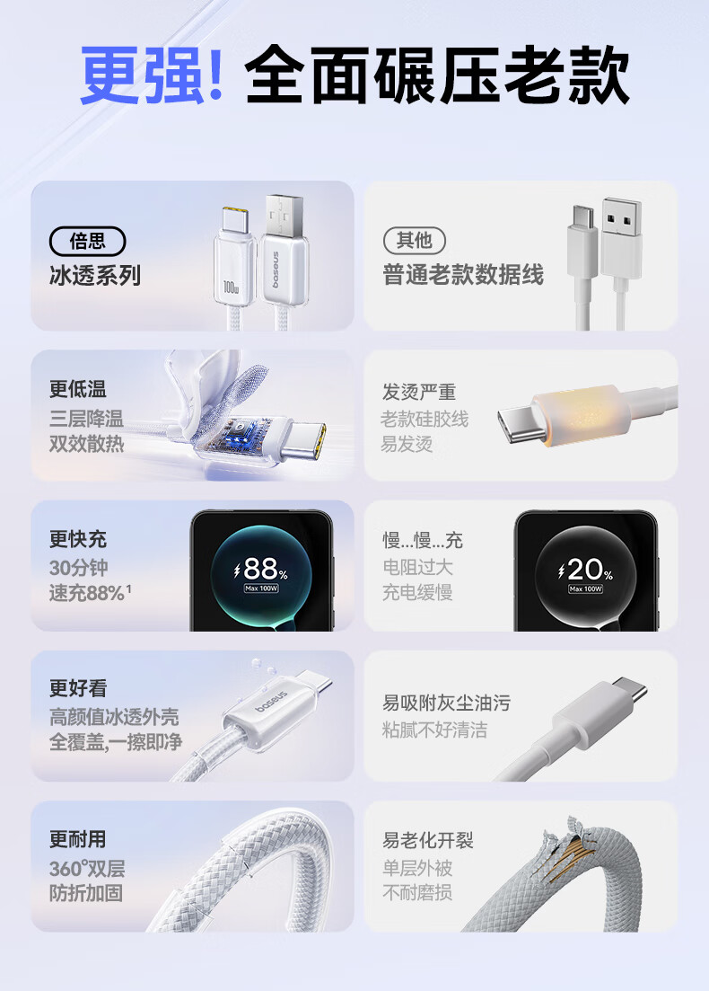 倍思Type-c数据线6A超级快充100W/88W/66W/40W华为荣耀充电线适用小米安卓手机平板Mate70/60/50 2米