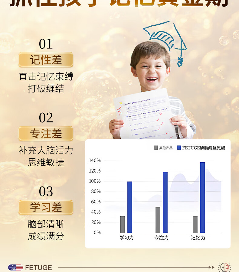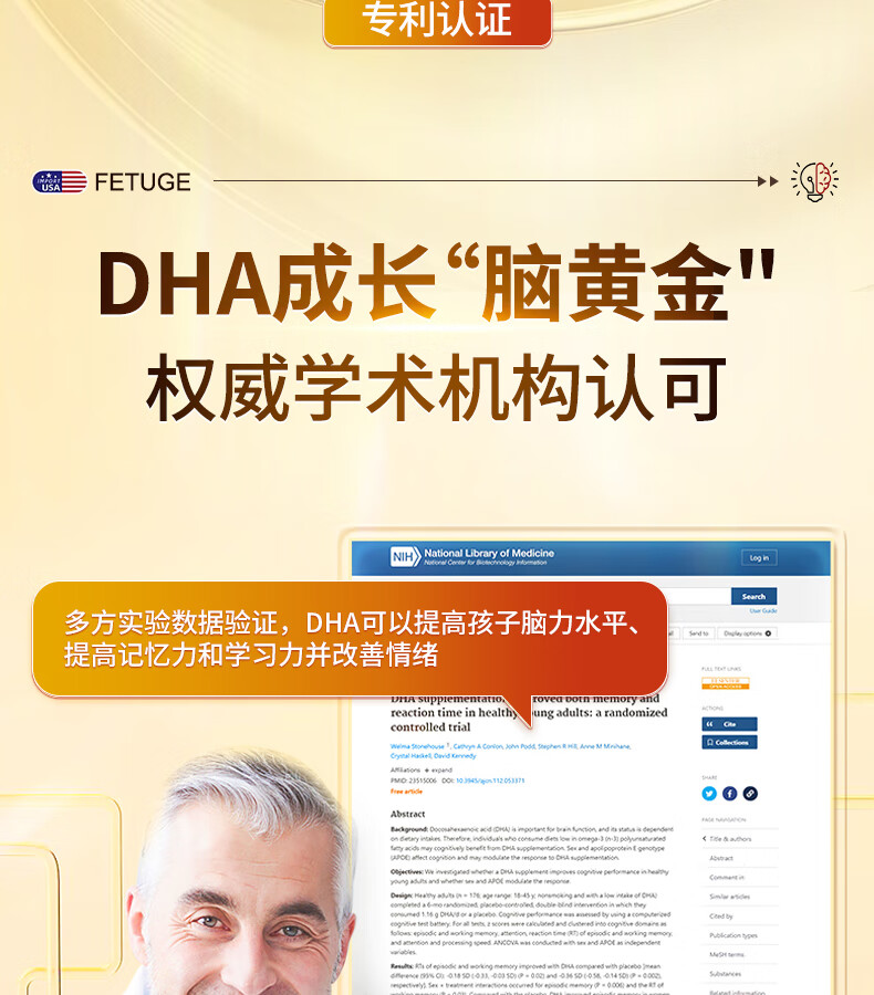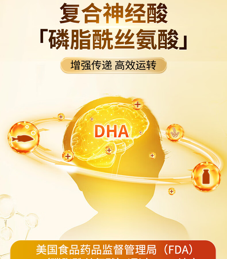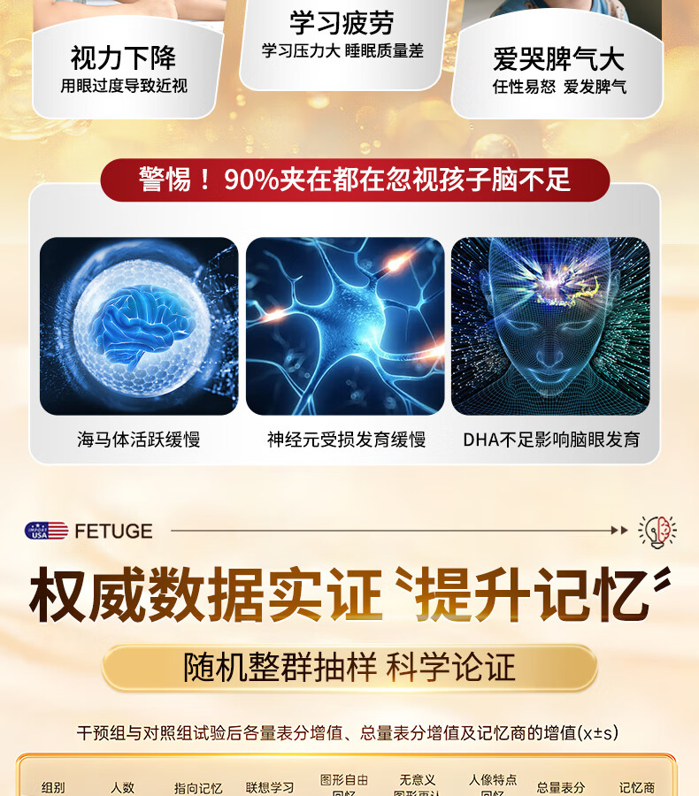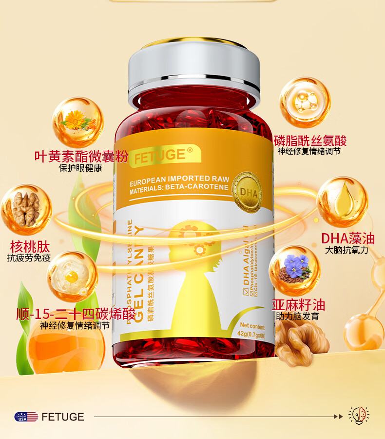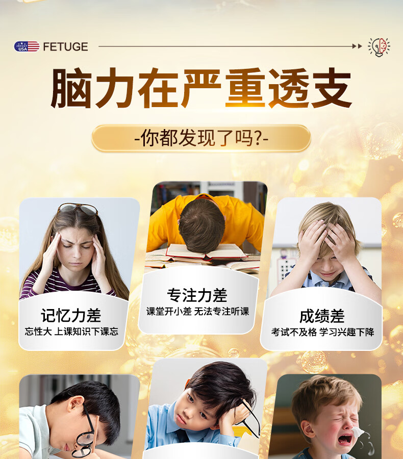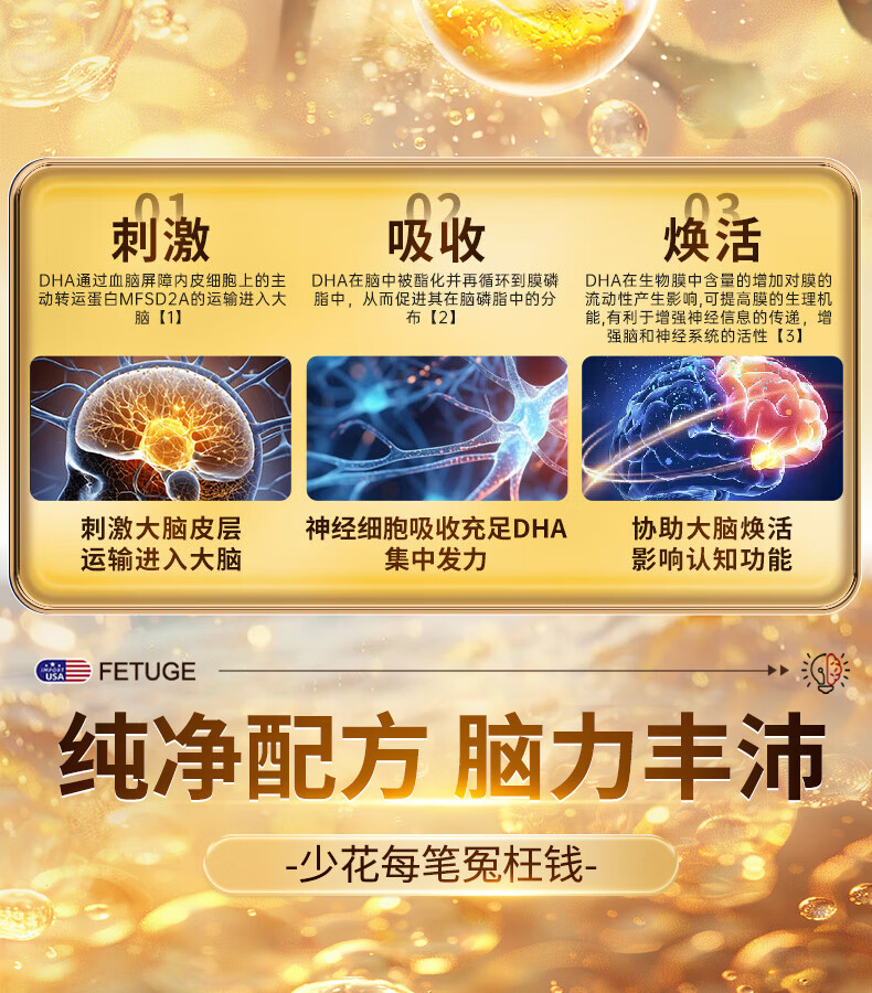 FETUGE美国DHA神经酸儿童青少年学生补脑增强记忆力思维活跃学习专注力 【1瓶激活装】强效补脑
