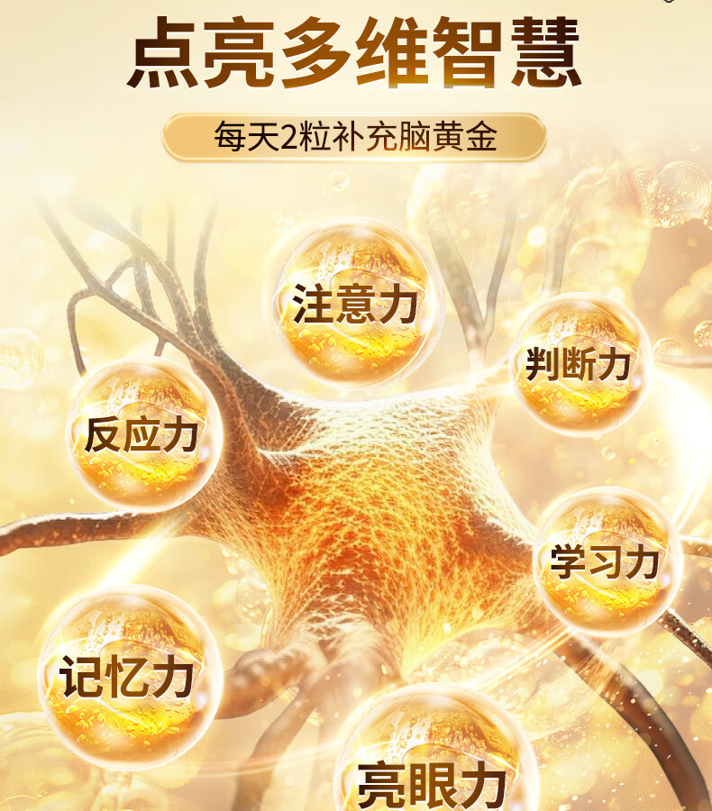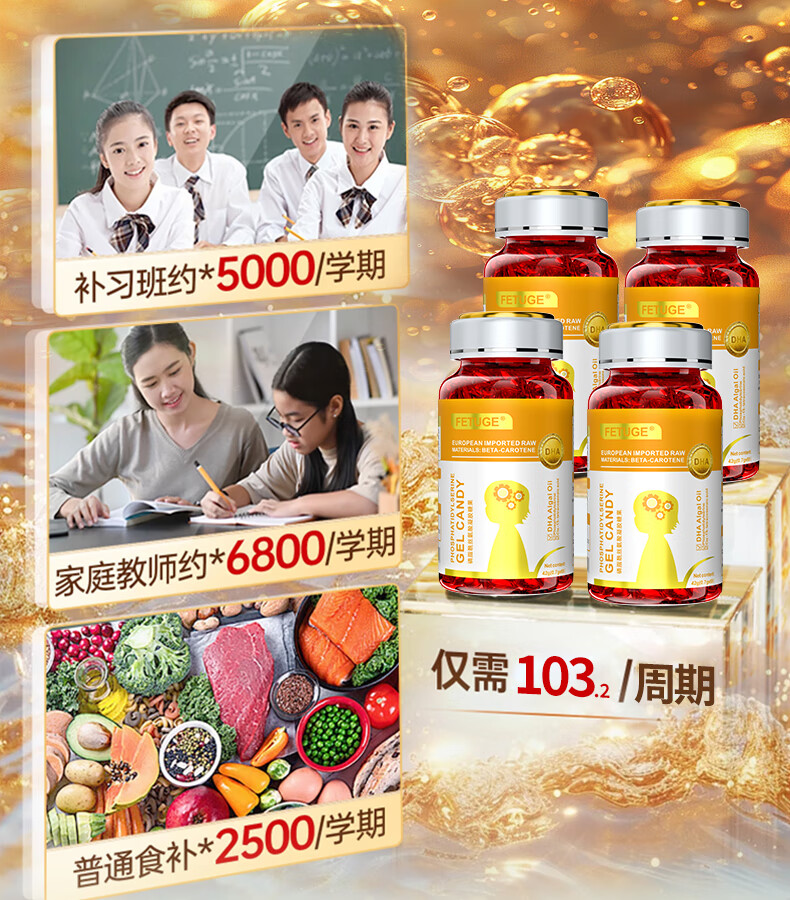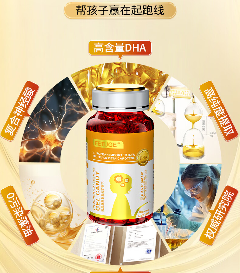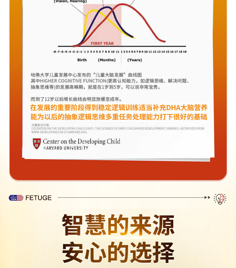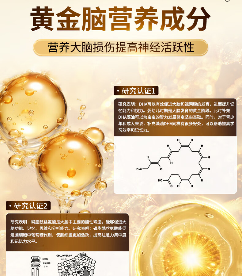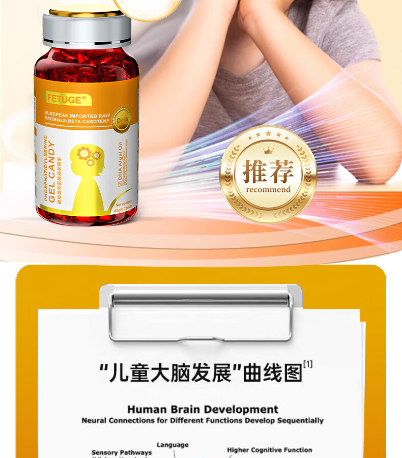 FETUGE美国DHA神经酸儿童青少年学生补脑增强记忆力思维活跃学习专注力 【1瓶激活装】强效补脑