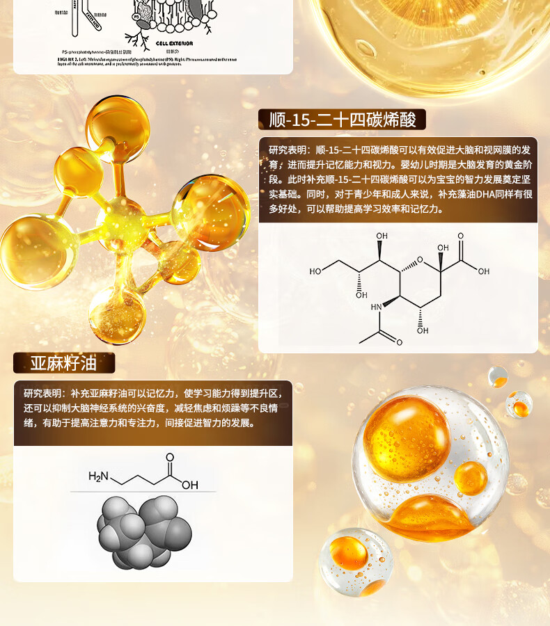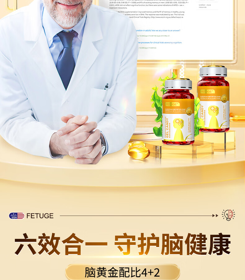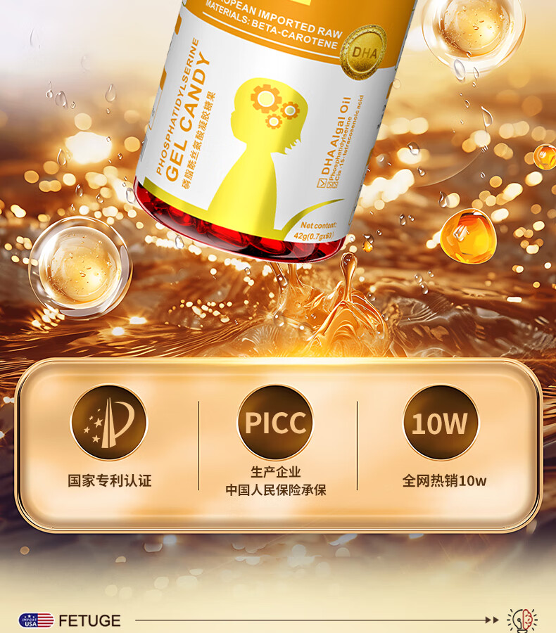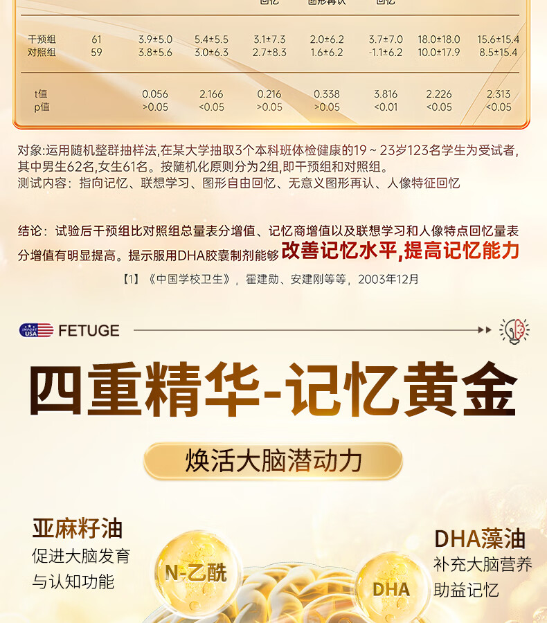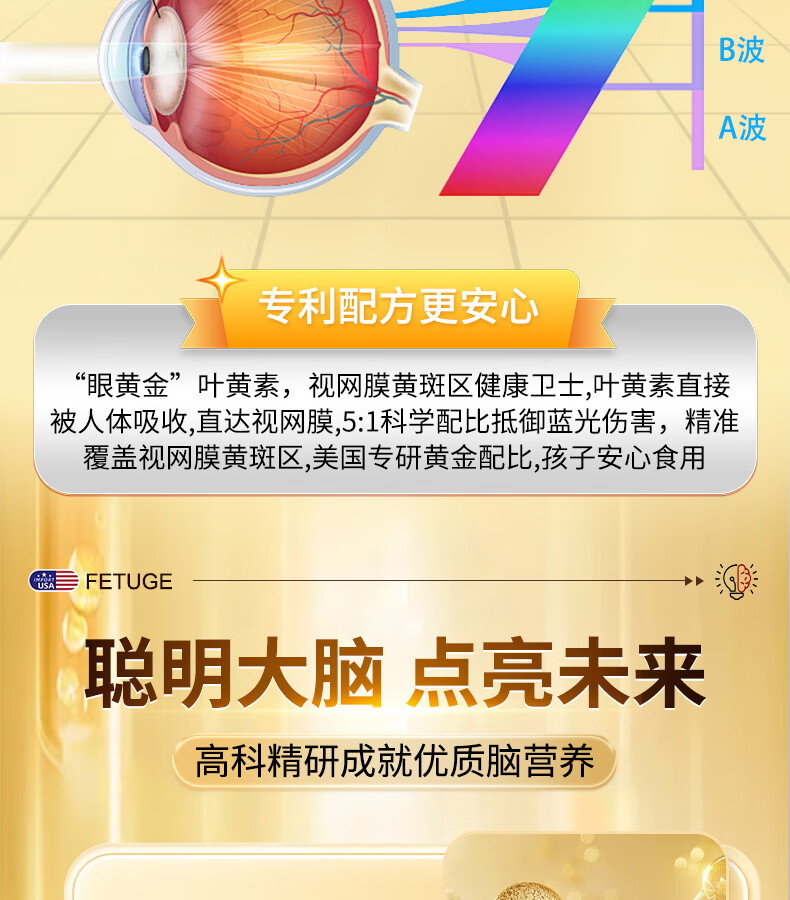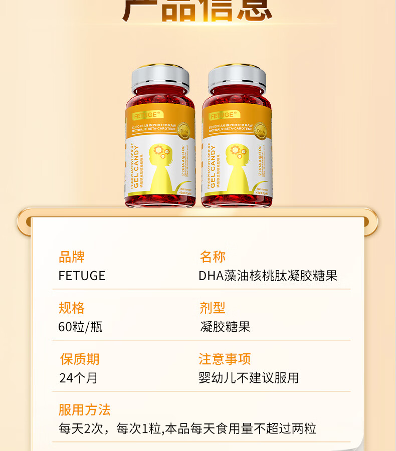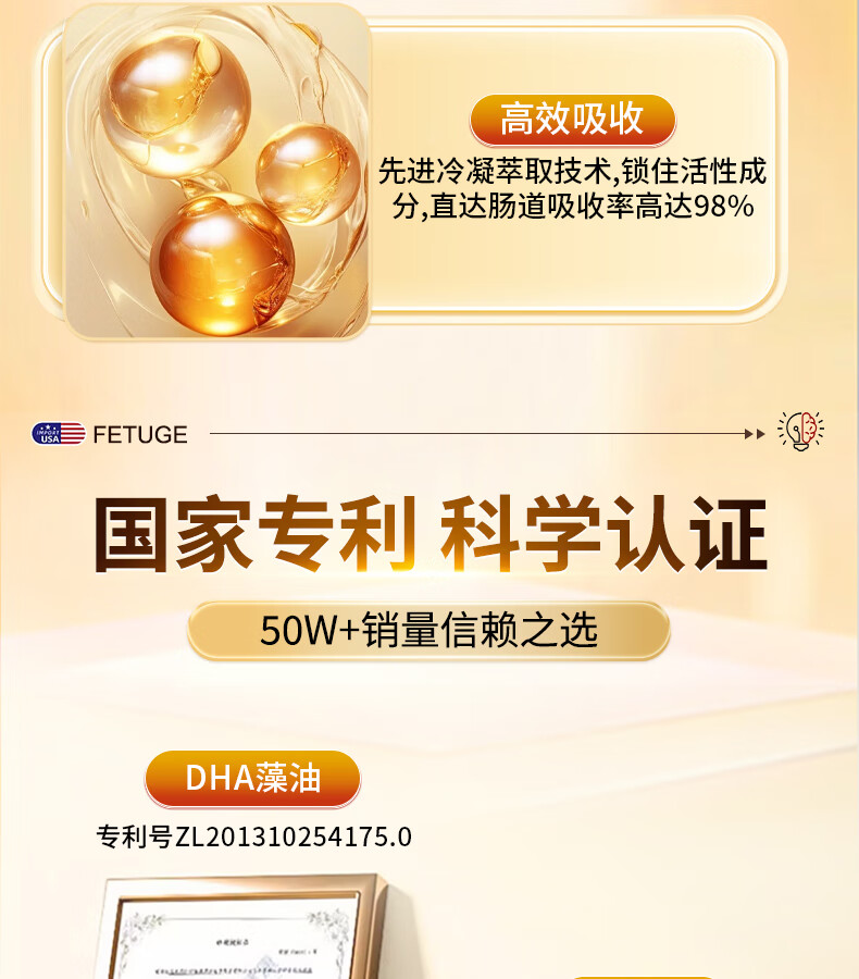 FETUGE美国DHA神经酸儿童青少年学生补脑增强记忆力思维活跃学习专注力 【1瓶激活装】强效补脑