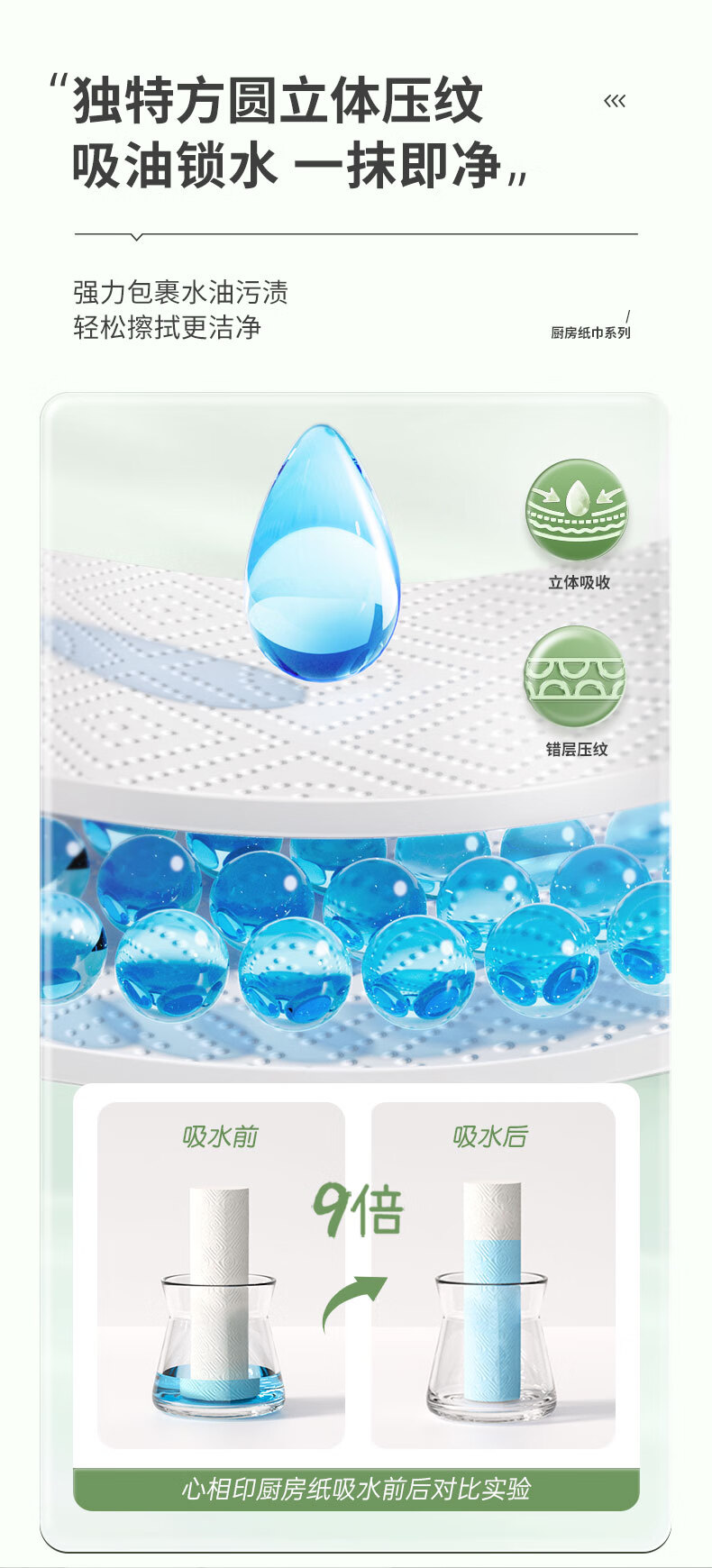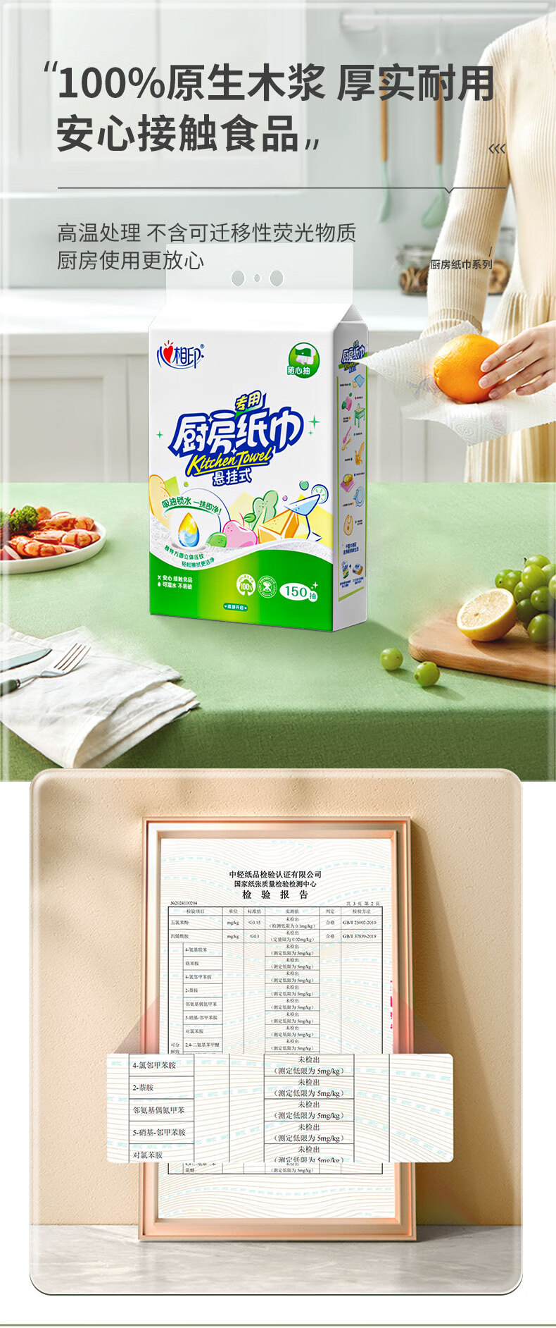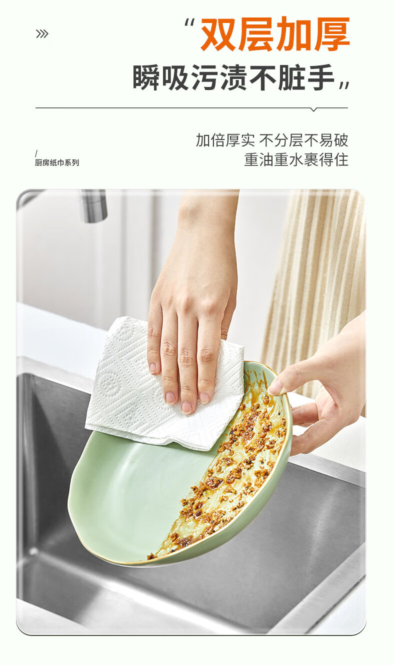 心相印厨房用纸悬挂式抽纸150抽*6提整箱装 吸油锁水食品级厨房纸巾