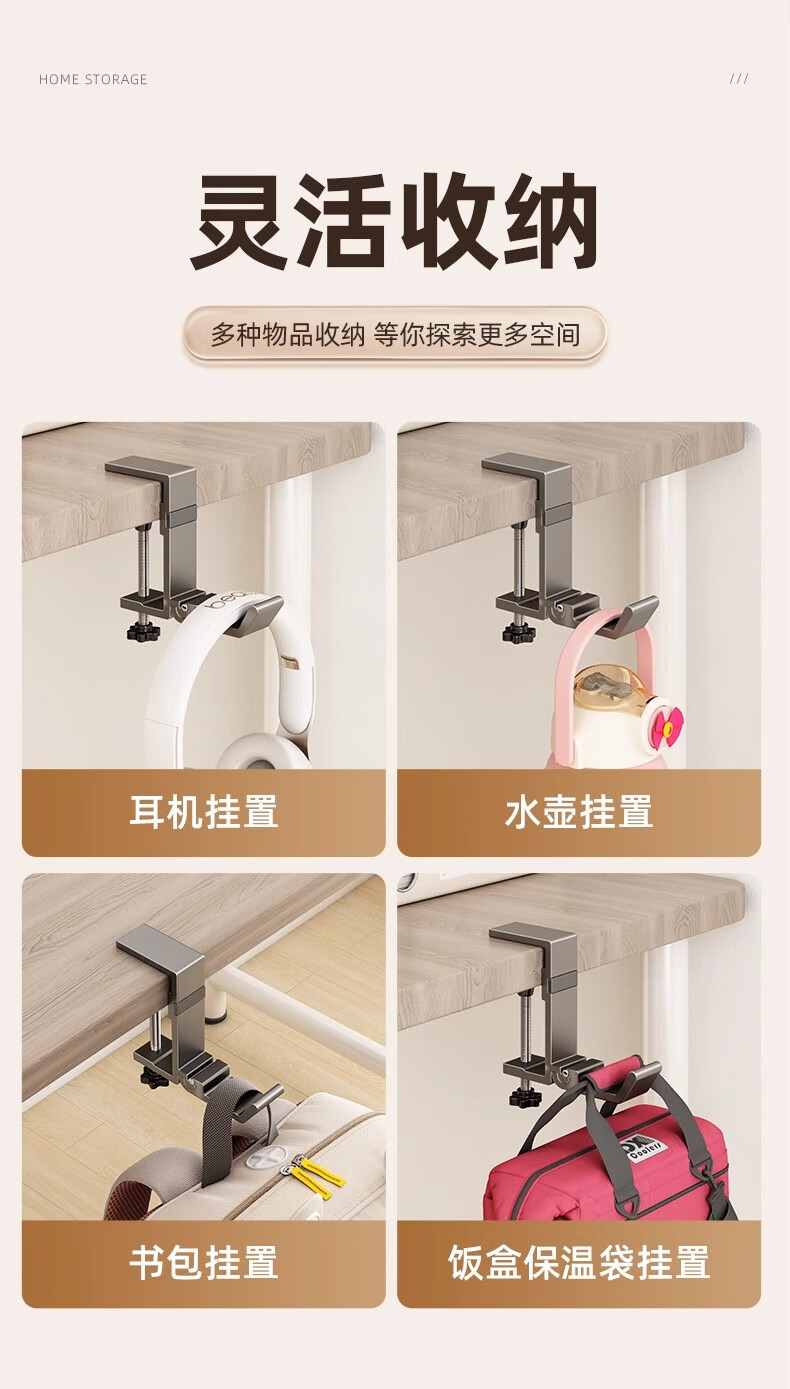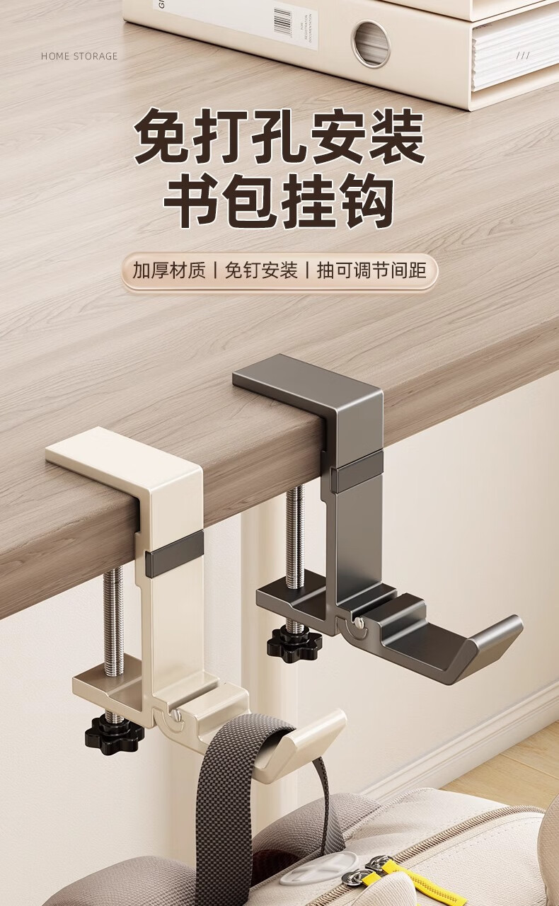 慕亚(MUYA)书包挂钩学生桌边书桌可调节挂桌子背包挂钩课桌面折叠无痕钩