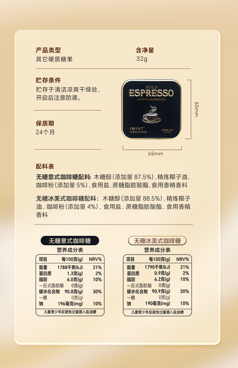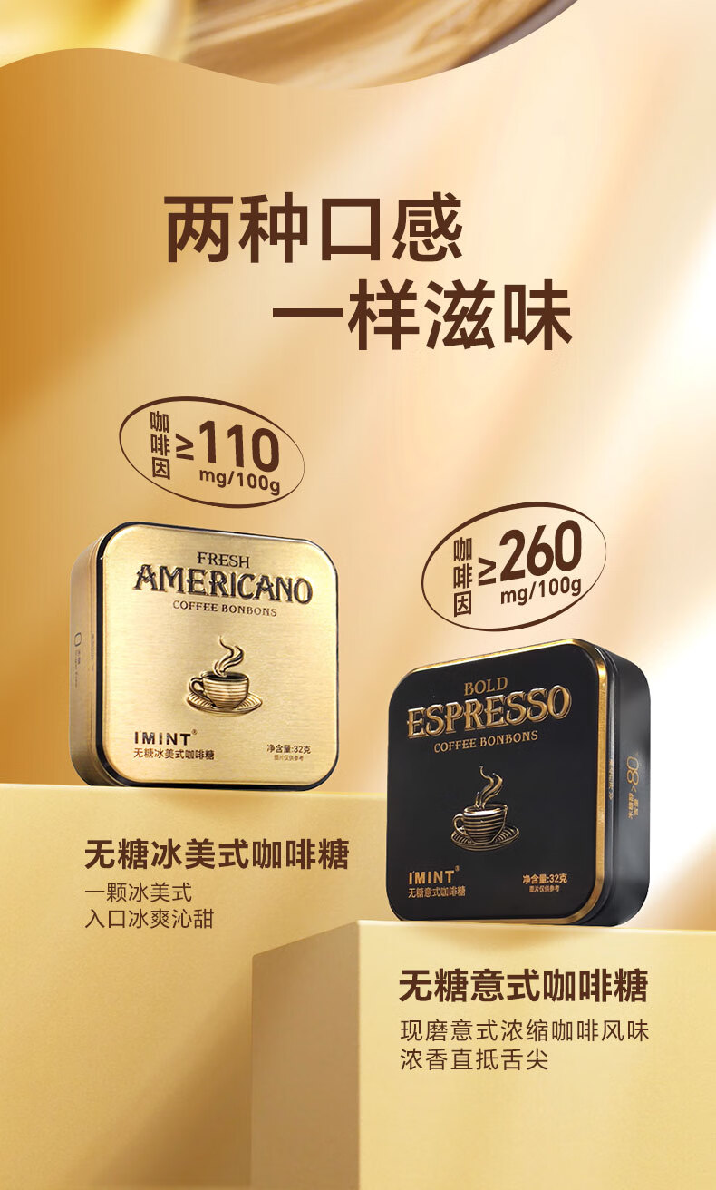 益美滋 无糖木糖醇 意式冰美式 咖啡糖 32g*2 黑咖啡 犯困醒神 润喉糖果