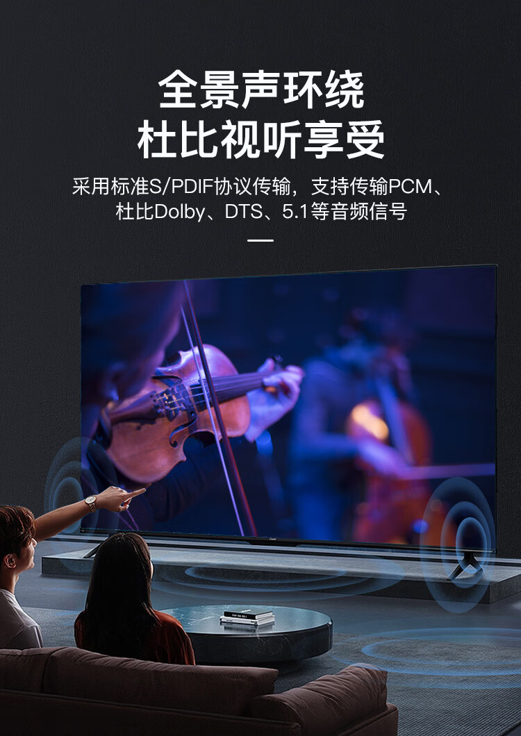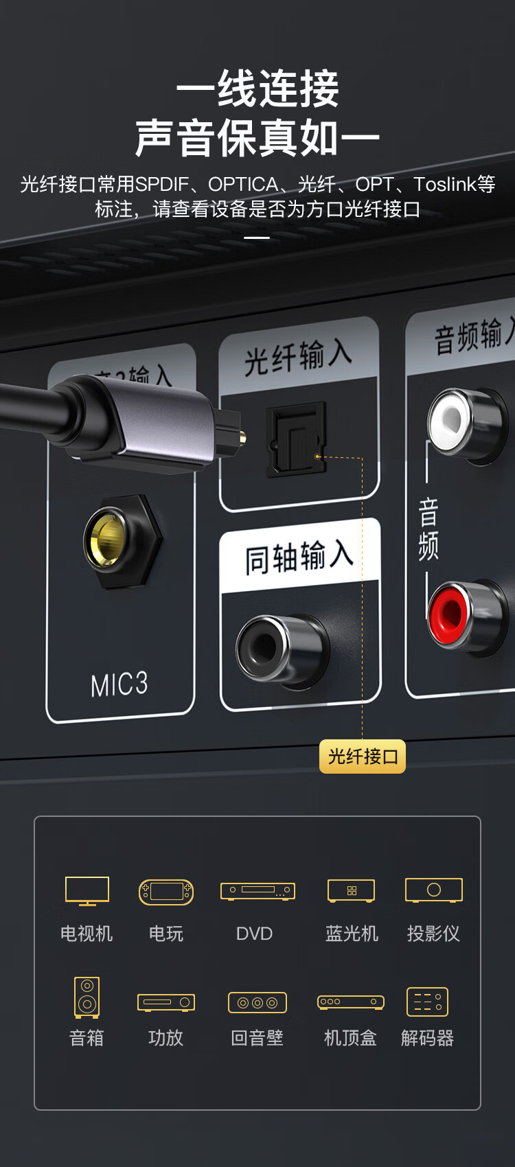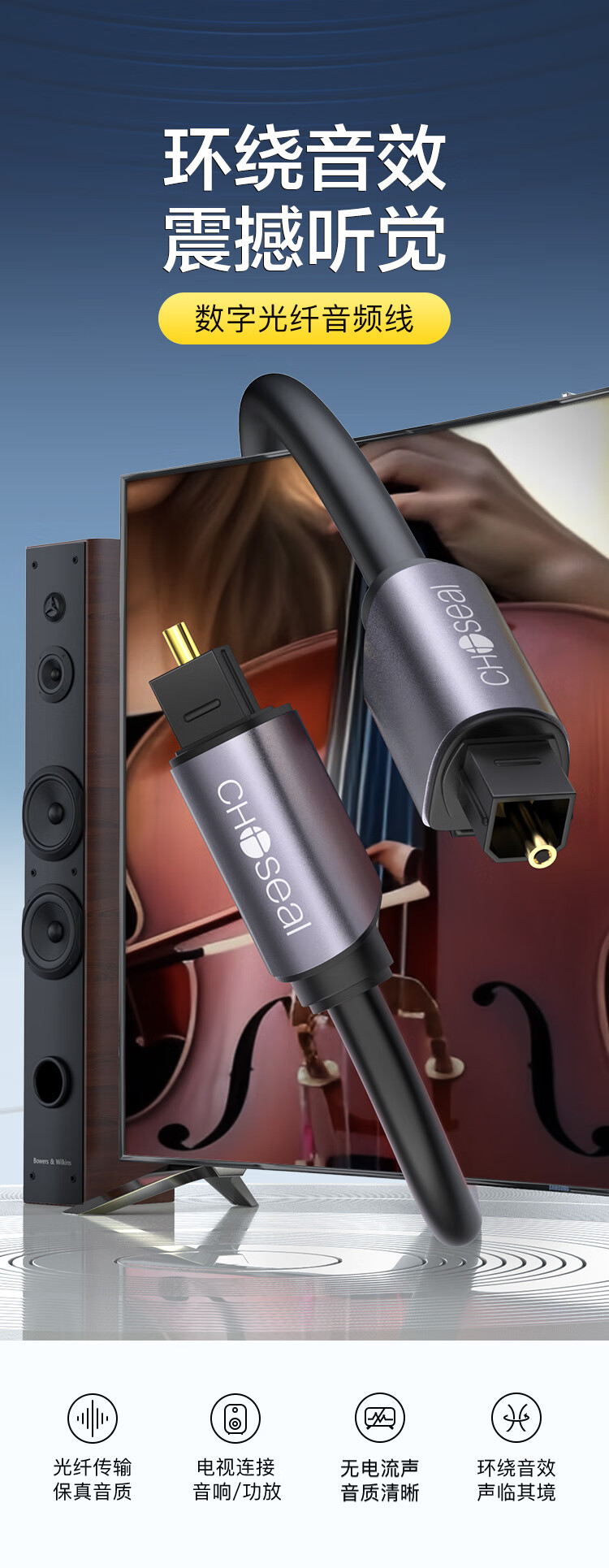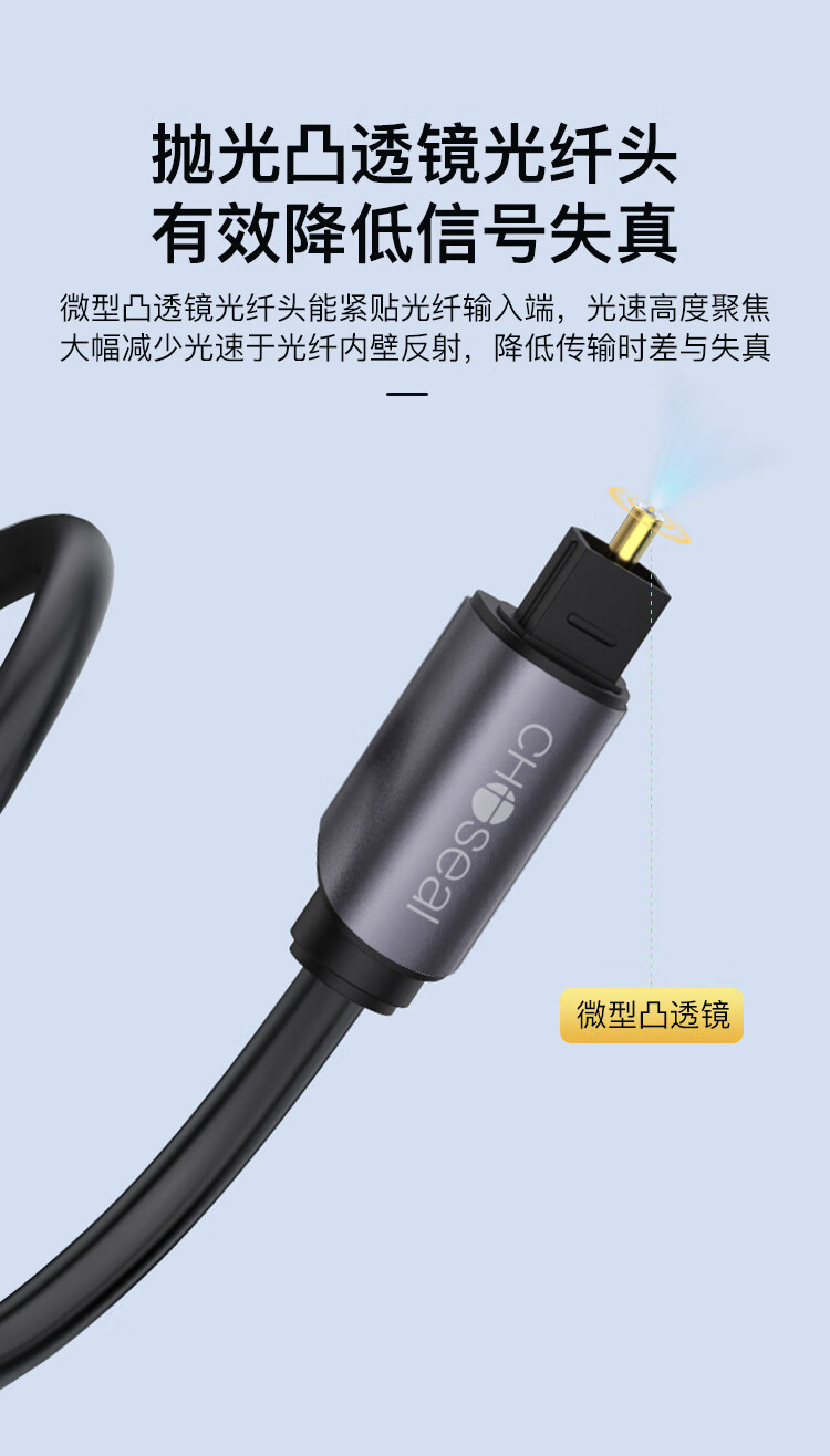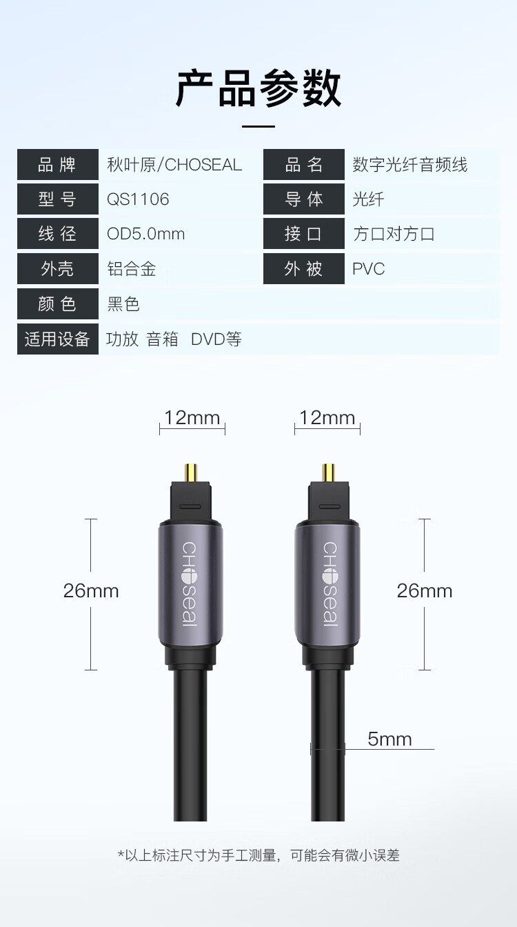 秋叶原(CHOSEAL)数字光纤音频线 电视DVD投影仪功放机顶盒家庭影院 spdif多声道方口音响连接线 5米 QS1106A
