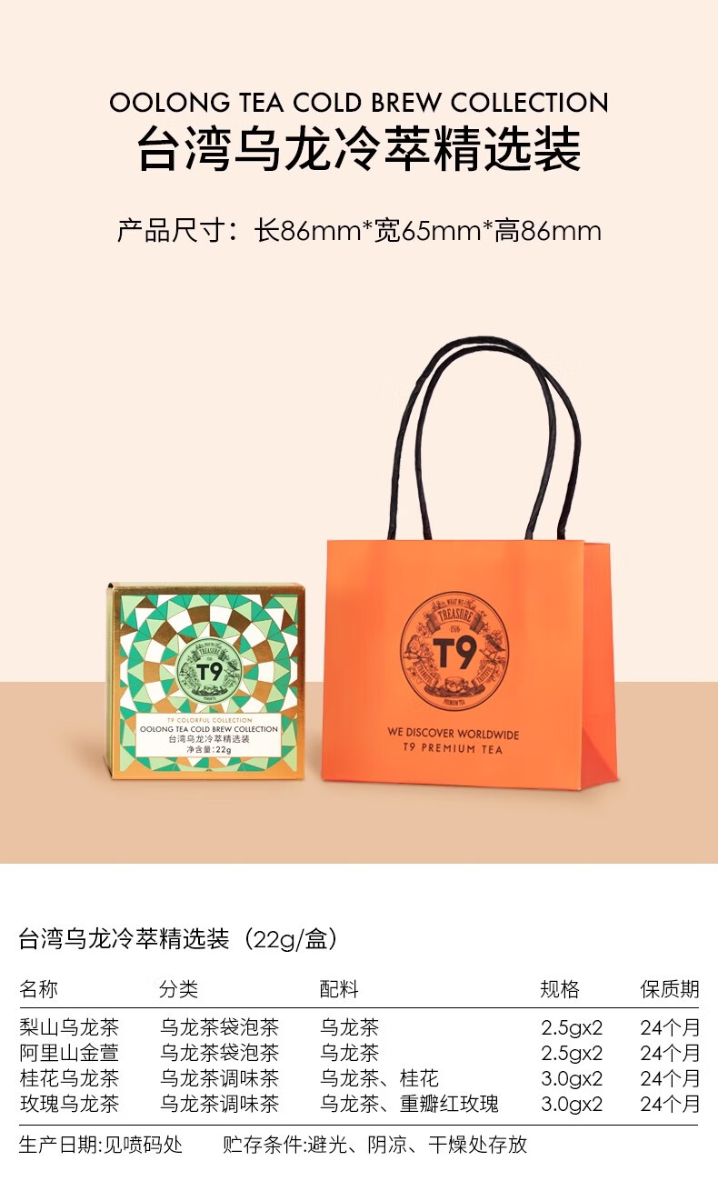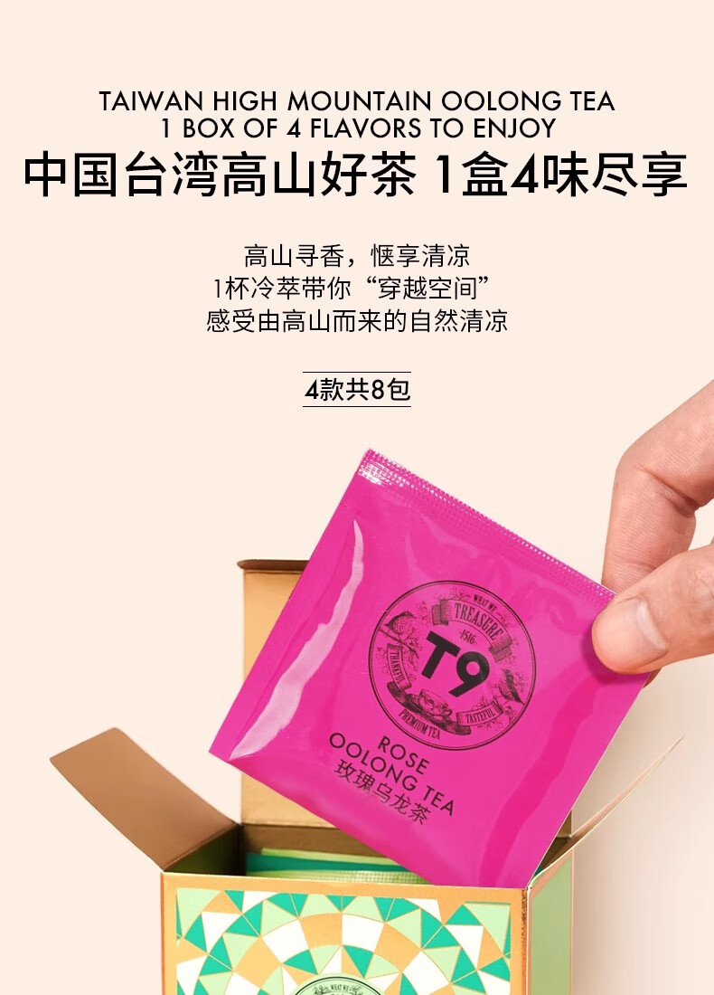 T9台湾乌龙茶8包精选冷泡茶袋泡茶包桂花玫瑰梨山