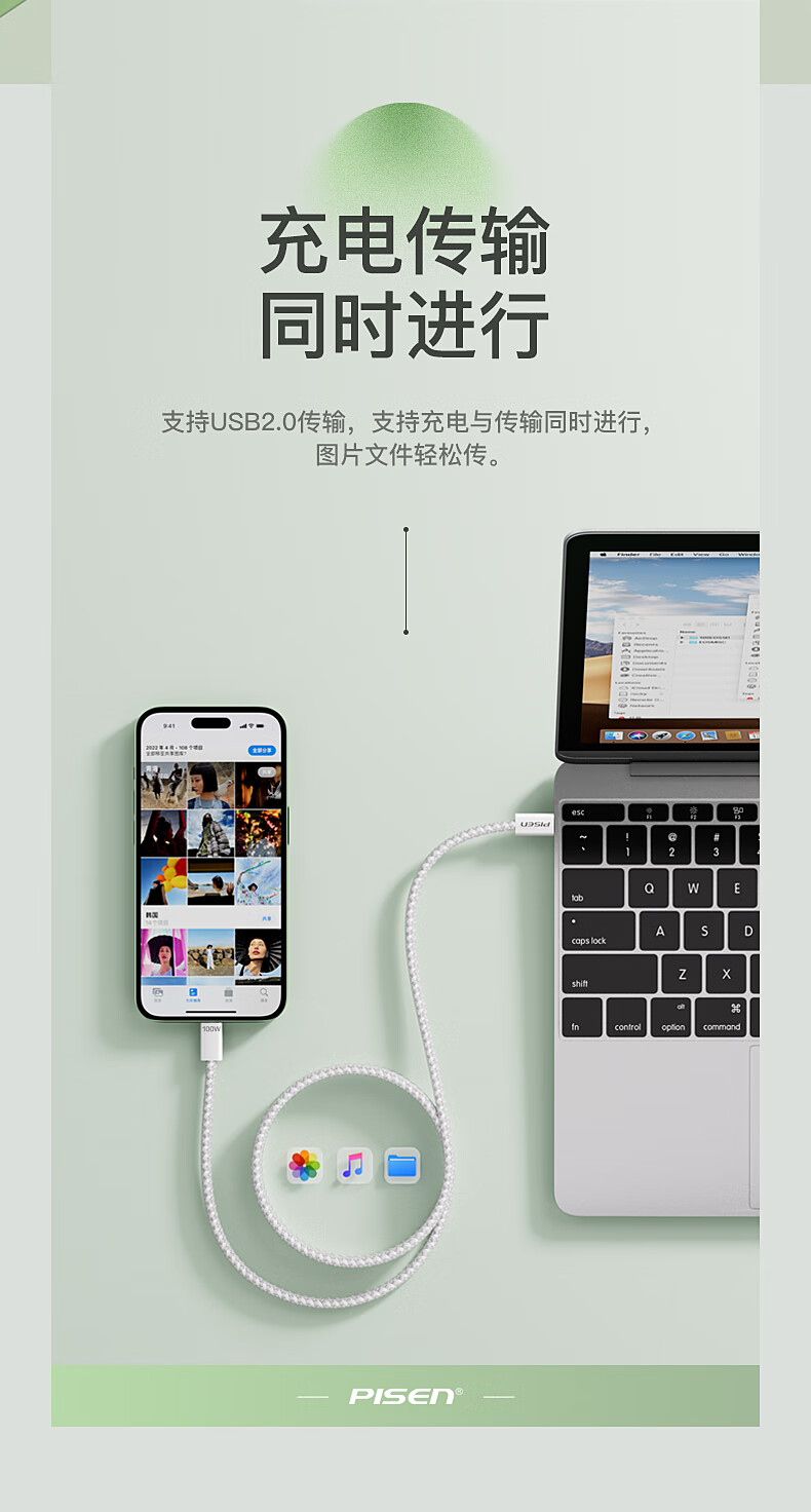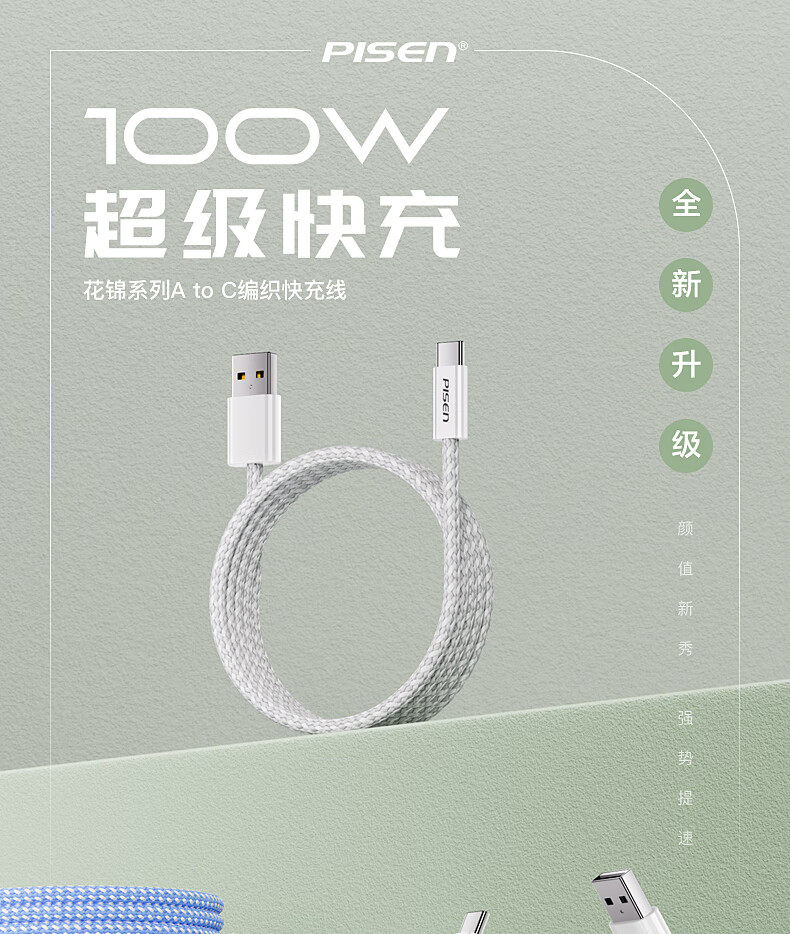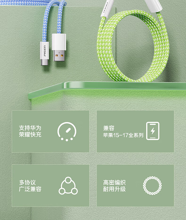 品胜苹果17/16充电线type-c数据线100W/66W快充6a车载适用华为mate70p80小米手机ip15平板AirPodsPro3