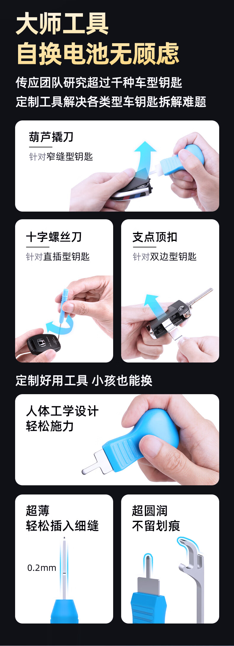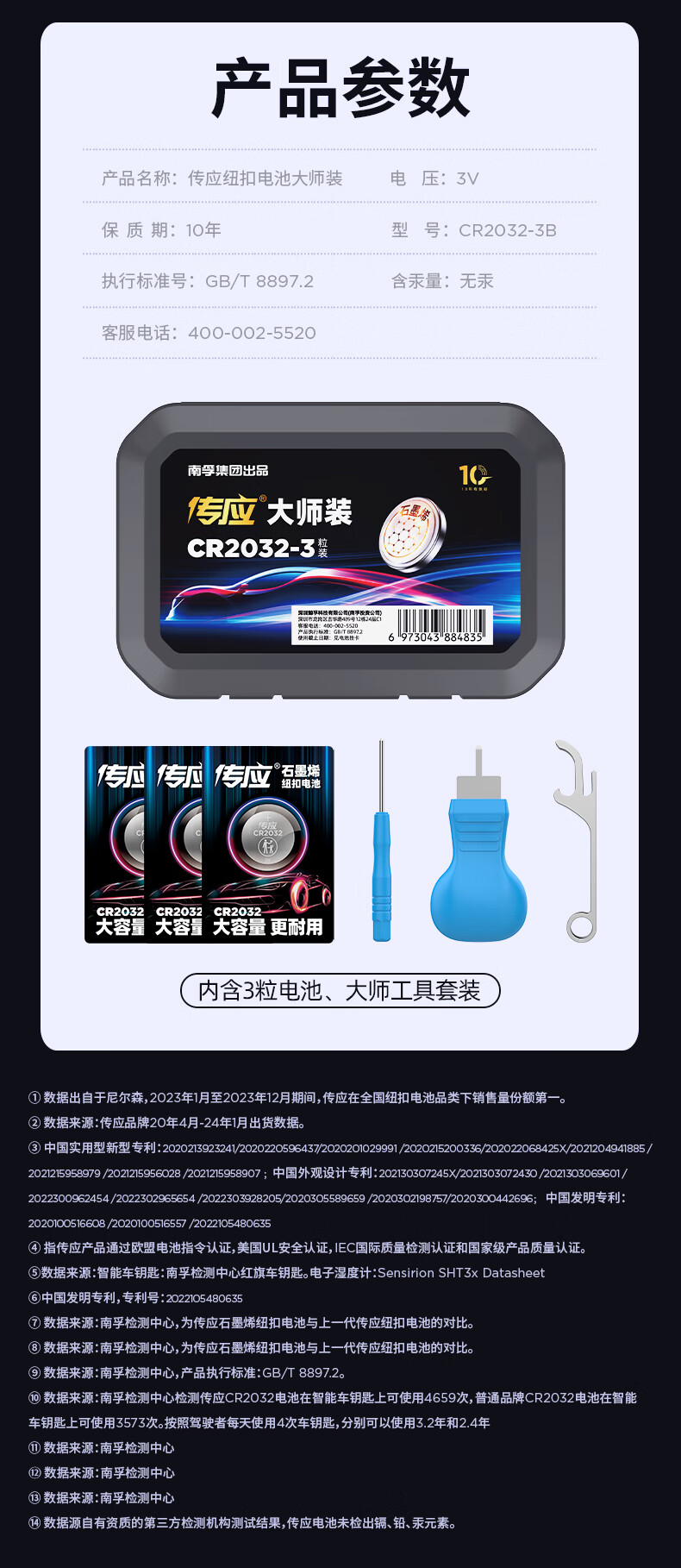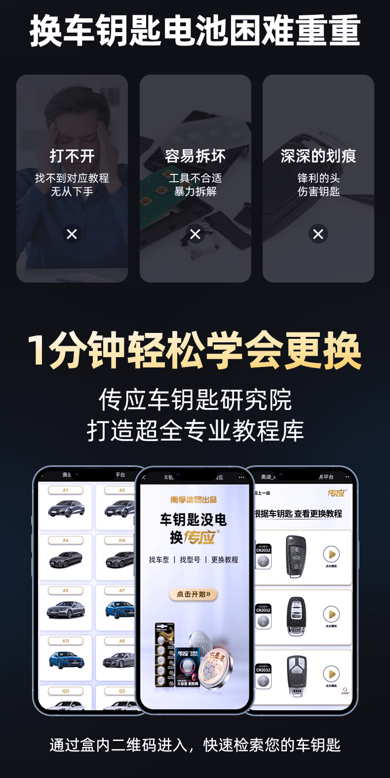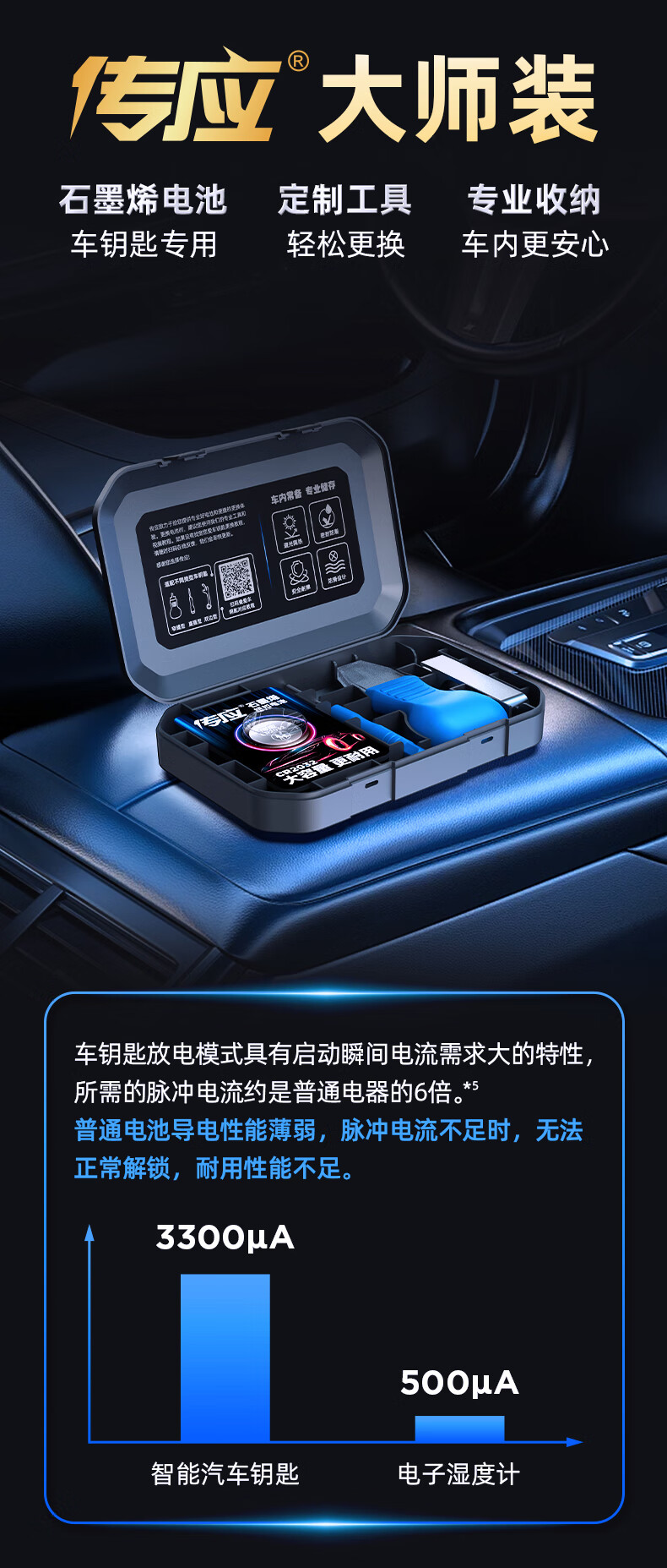 传应CR2032石墨烯纽扣电池3粒大师装 车钥匙专用【内置定制拆卸工具】适用于奥迪/宝马/大众/别克