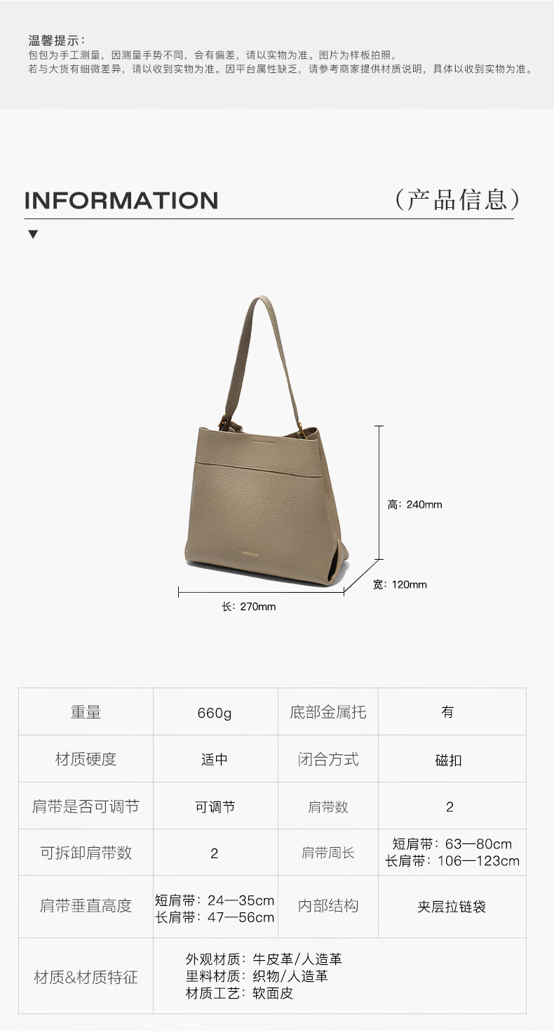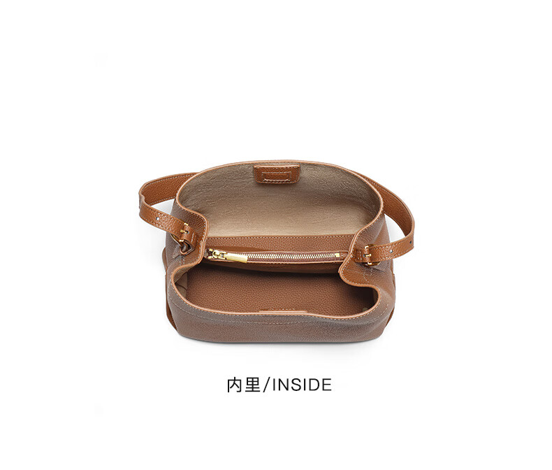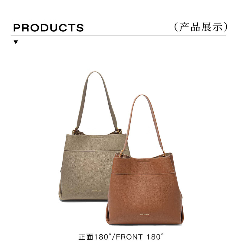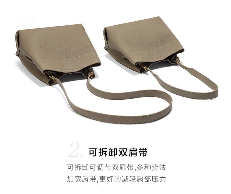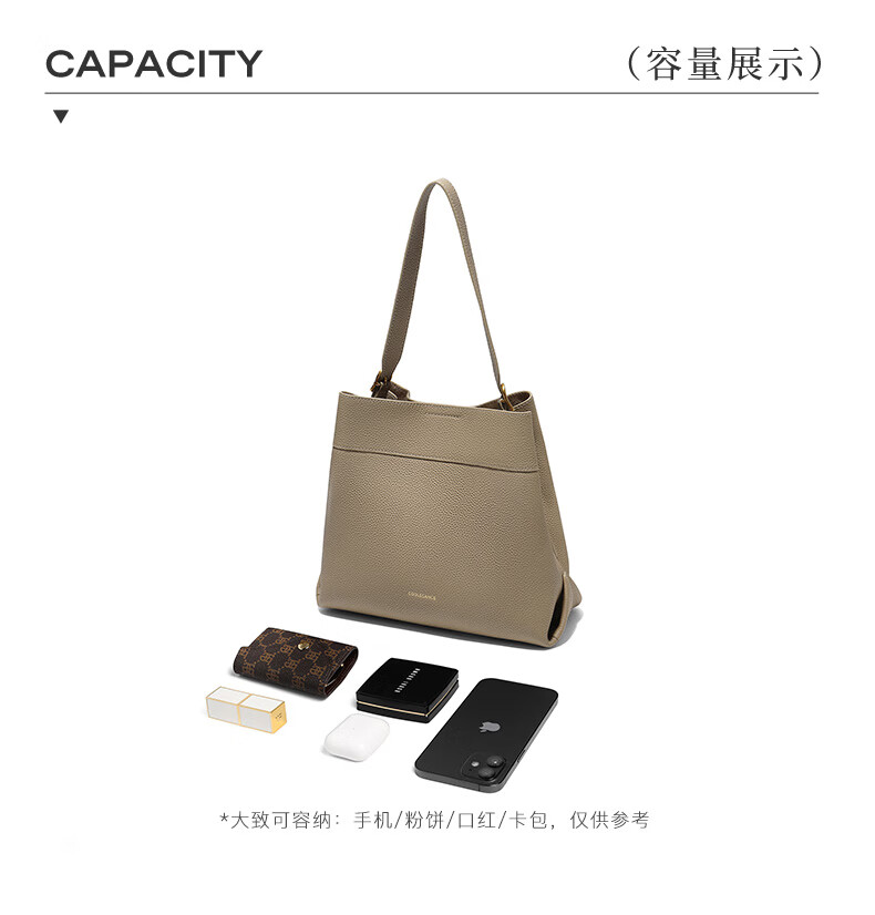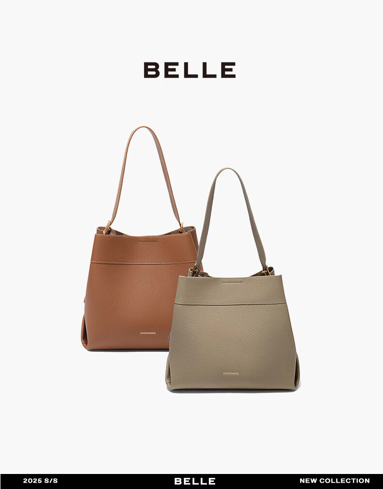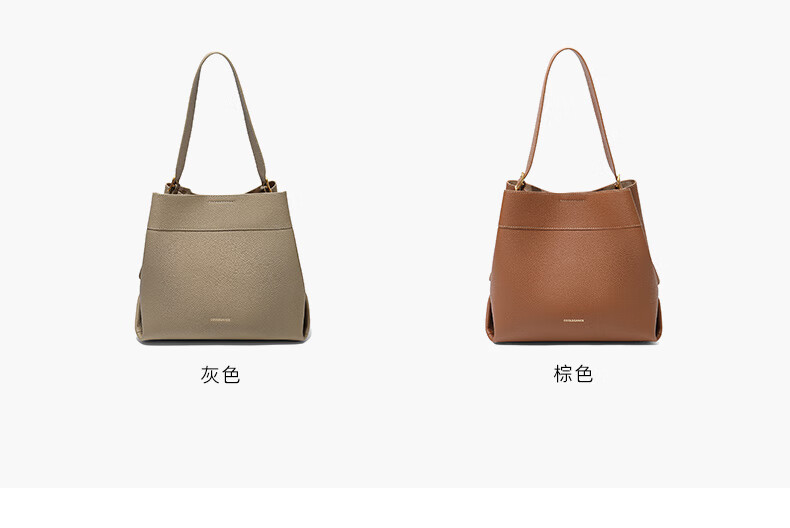 百丽包包女2025新款牛皮质感通勤简约单肩斜挎水桶包7948ADX5 灰色 F