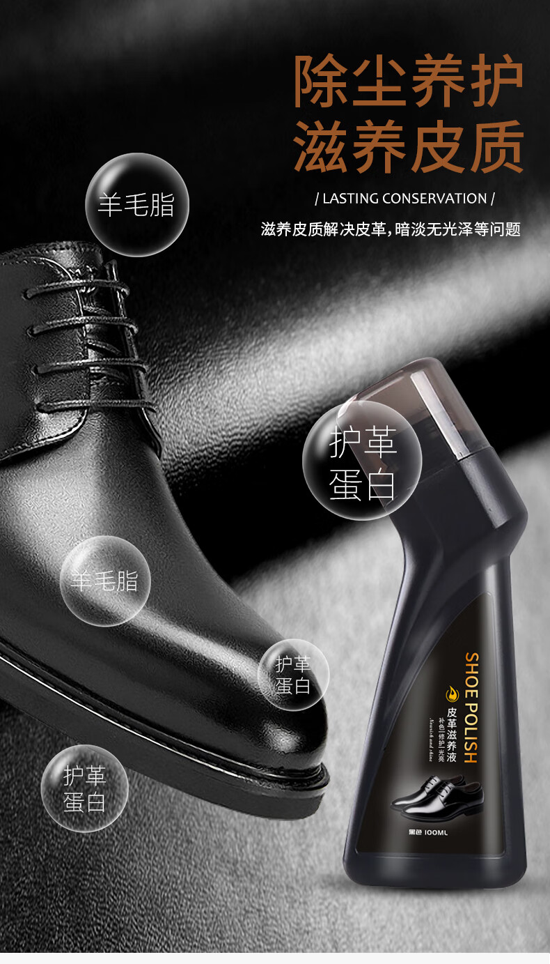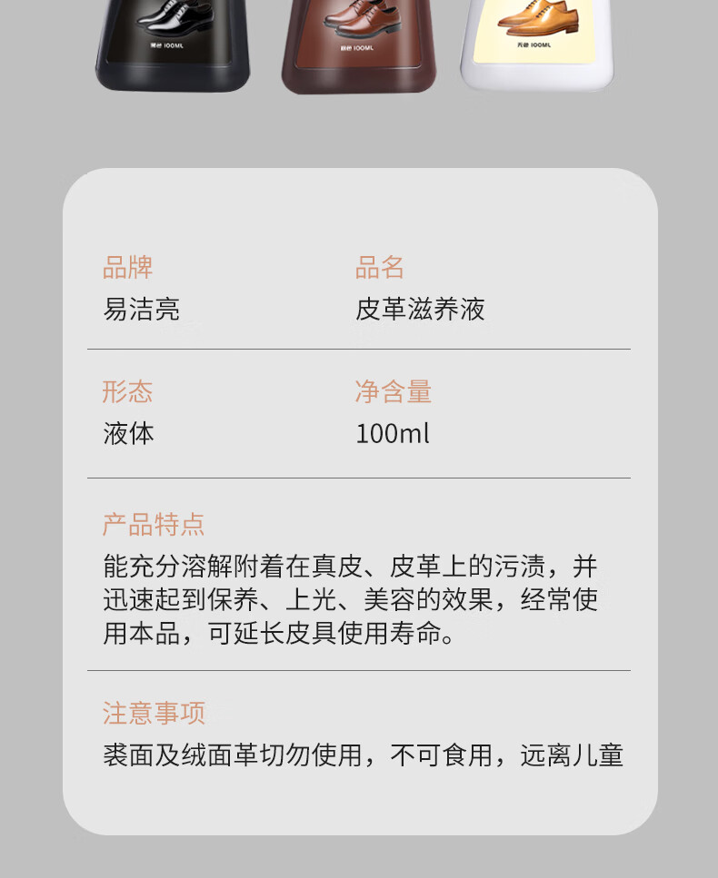 易洁亮液体鞋油黑色上光擦鞋神器皮鞋油皮革护理保养油100ml*2支