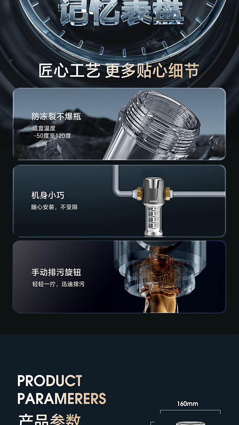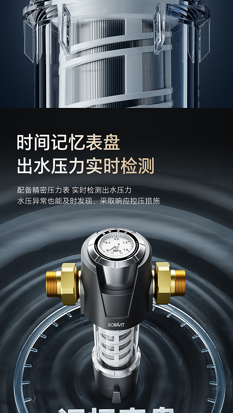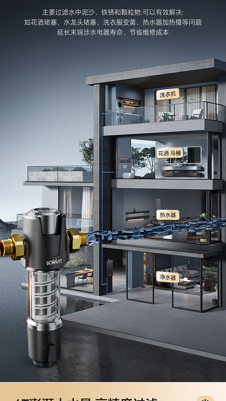 BORAVIT勃朗【免费上门安装】家用前置过滤器自动清洗前十名厨下净水器自来水过滤器反冲洗小巨鲨 【小巨鲨K07】微米过滤双涡轮