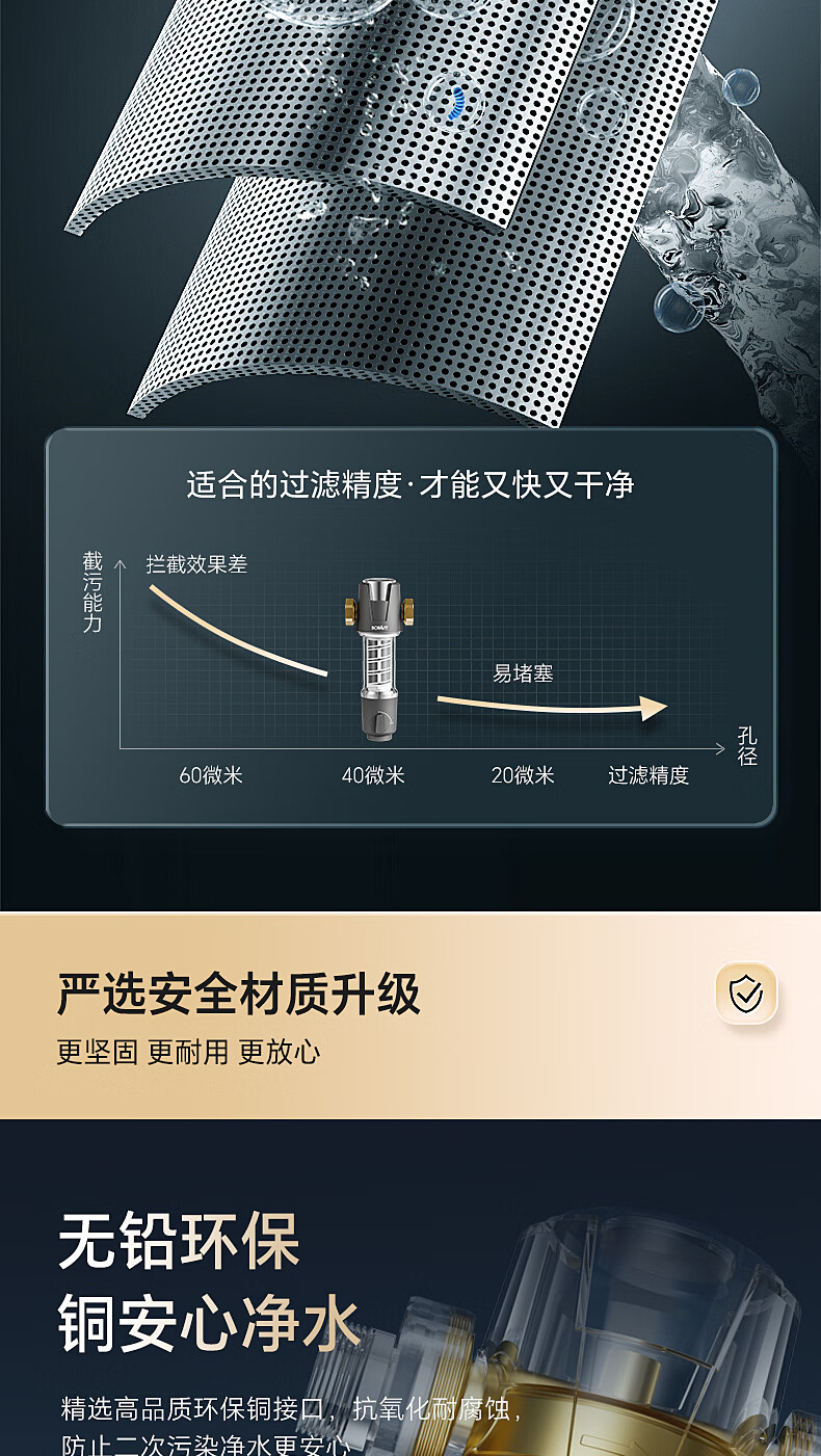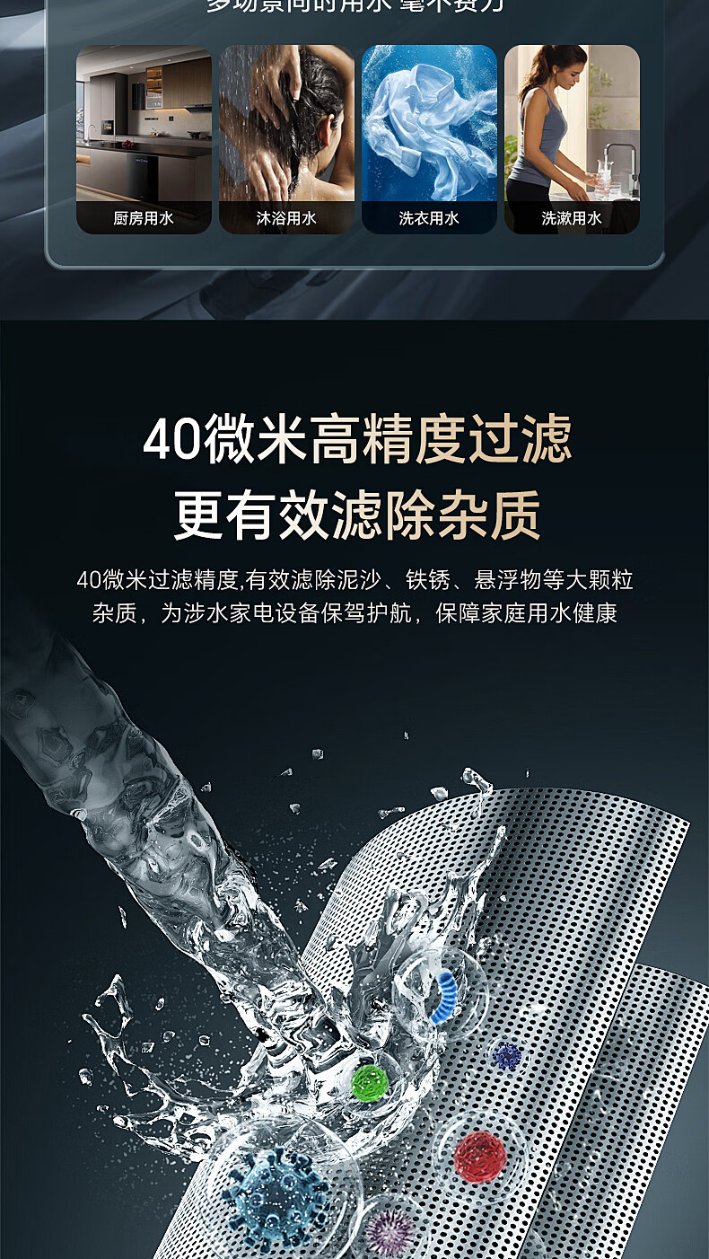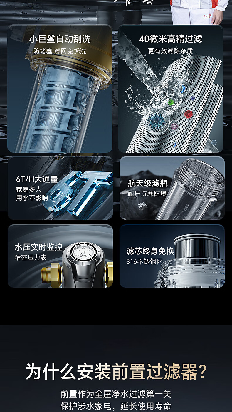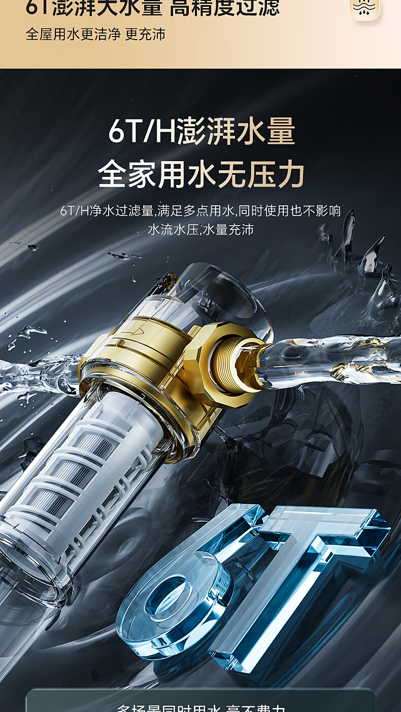 BORAVIT勃朗【免费上门安装】家用前置过滤器自动清洗前十名厨下净水器自来水过滤器反冲洗小巨鲨 【小巨鲨K07】微米过滤双涡轮