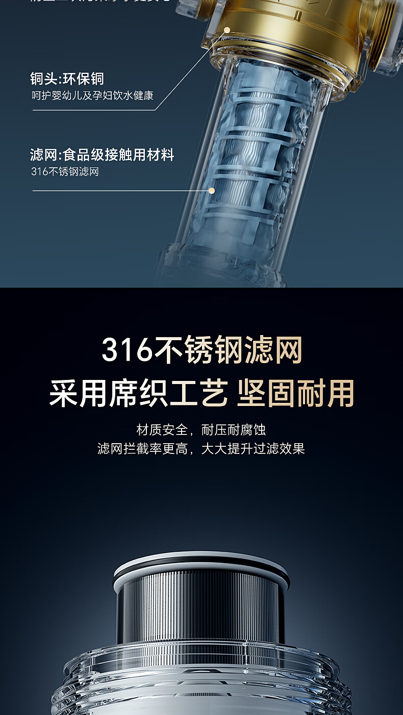 远大健科rurua水龙头净水器家用滤水器厨房卫生间两用可清洗滤芯前置净水机自来水过滤器 一机一芯
