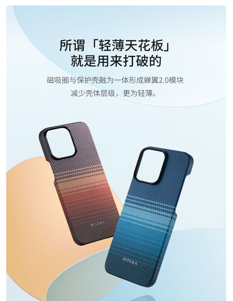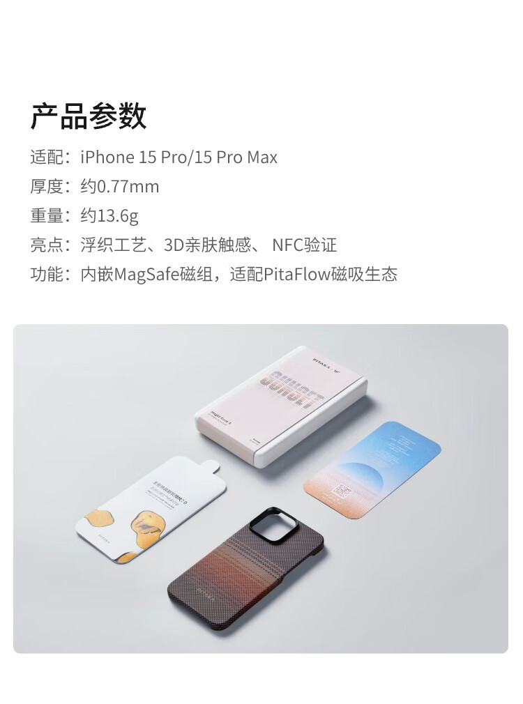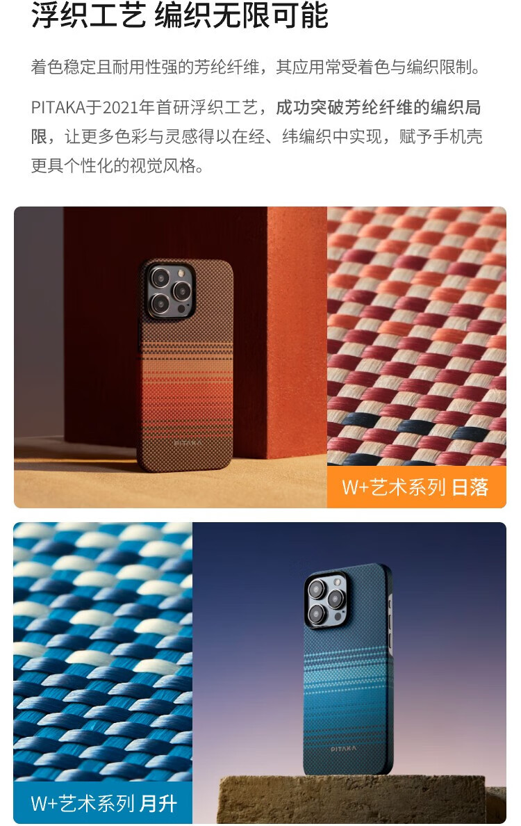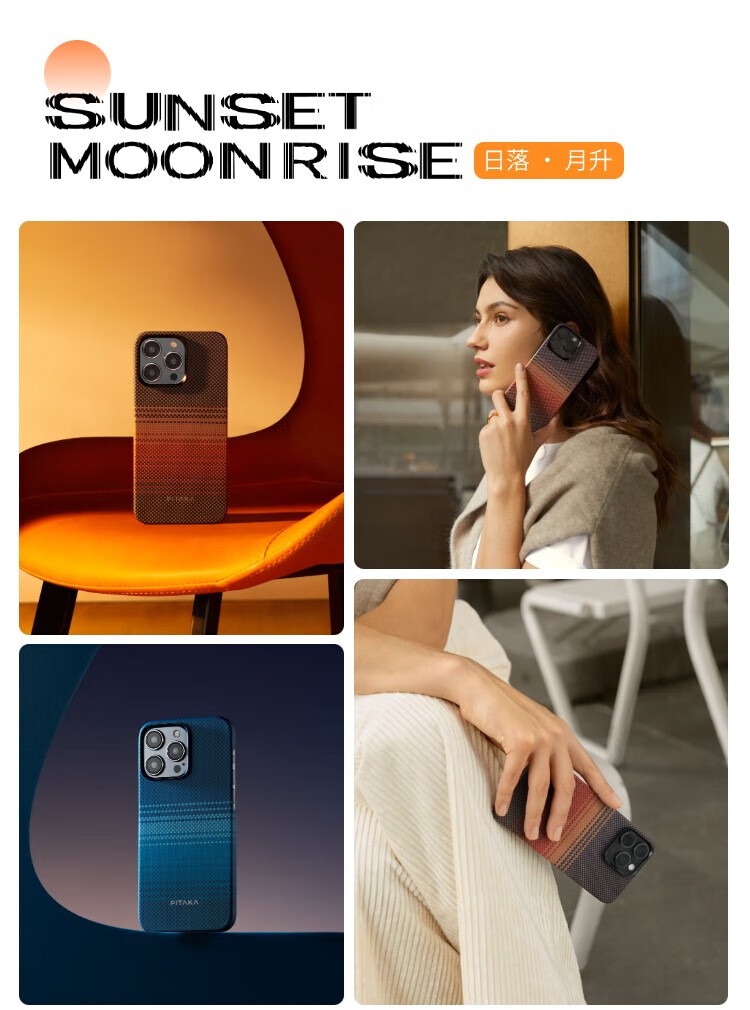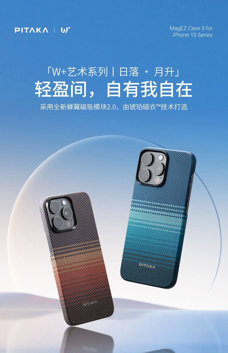 PITAKA适用苹果iPhone15ProMax手机壳W+日落月升艺术凯夫拉MagSafe磁吸超薄肤感男女款保护套非碳纤维