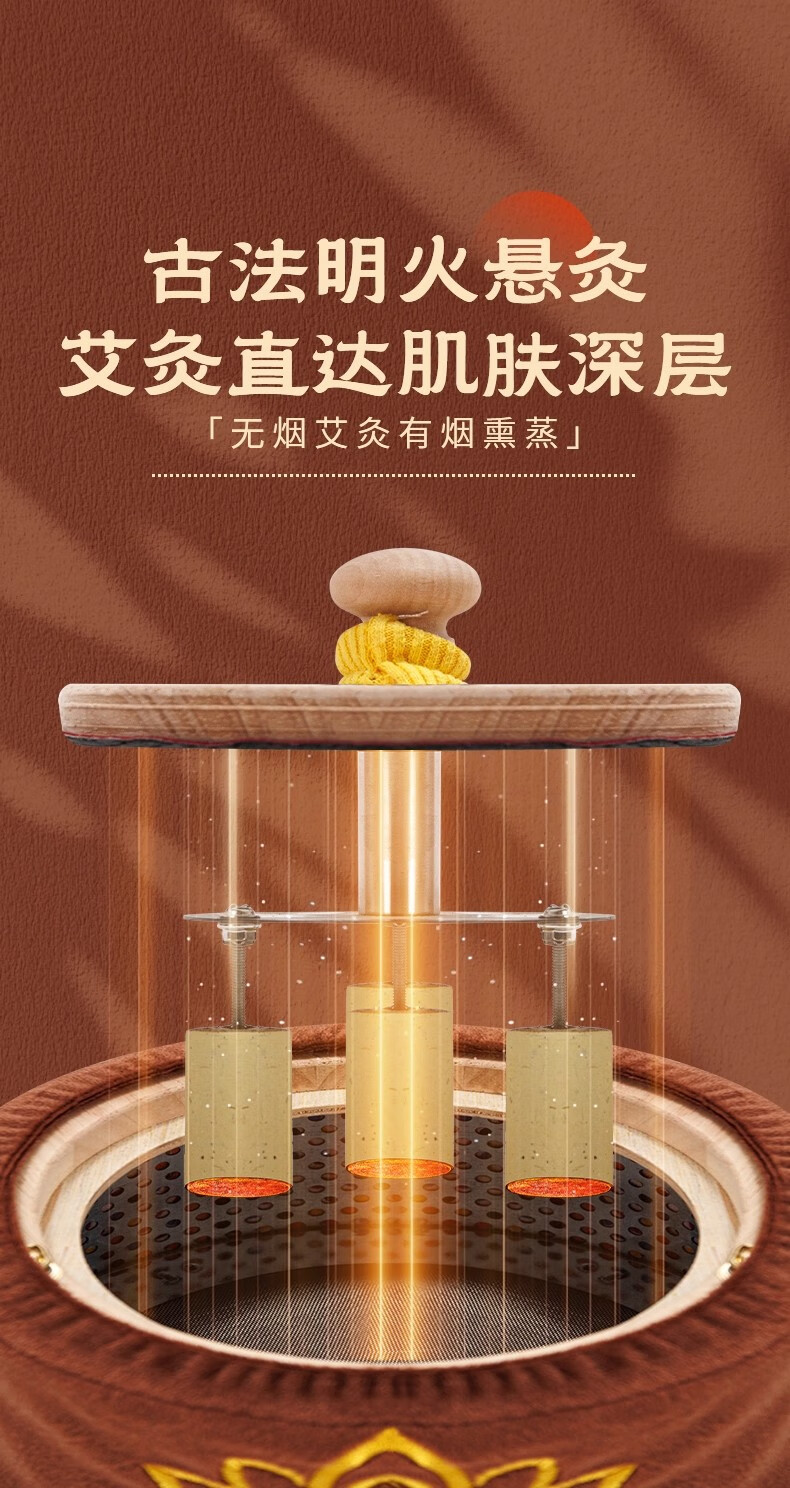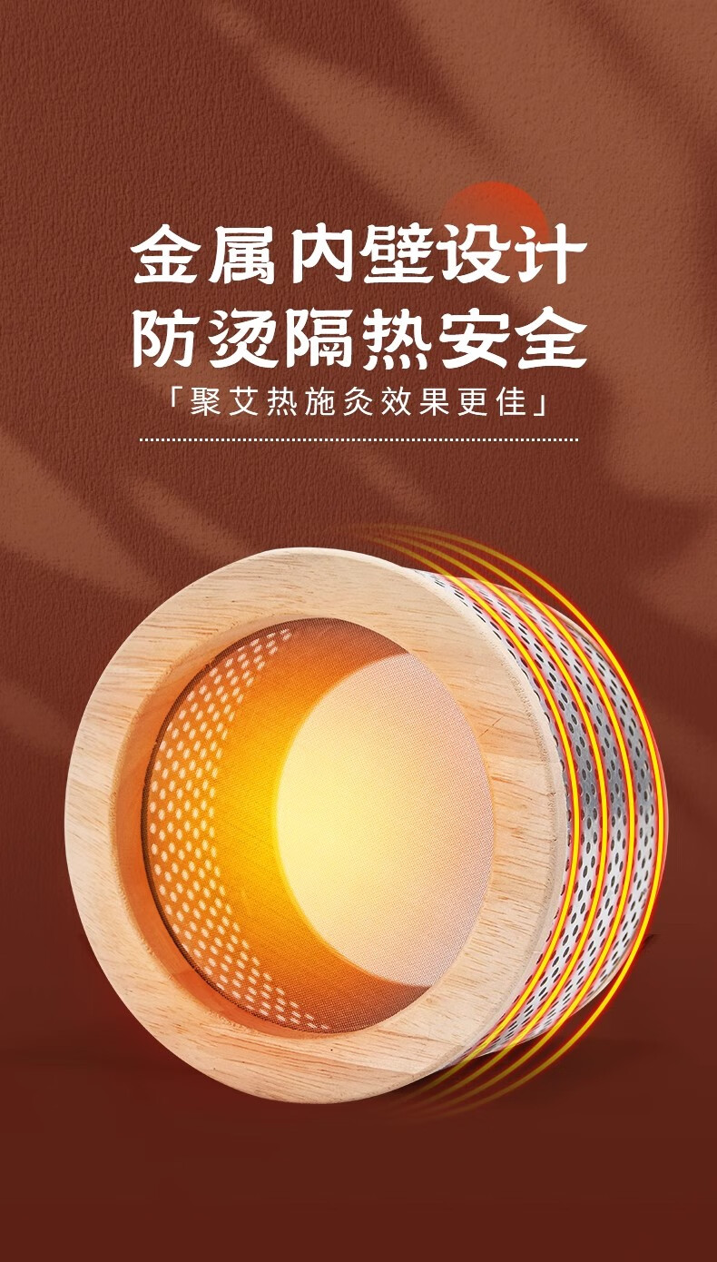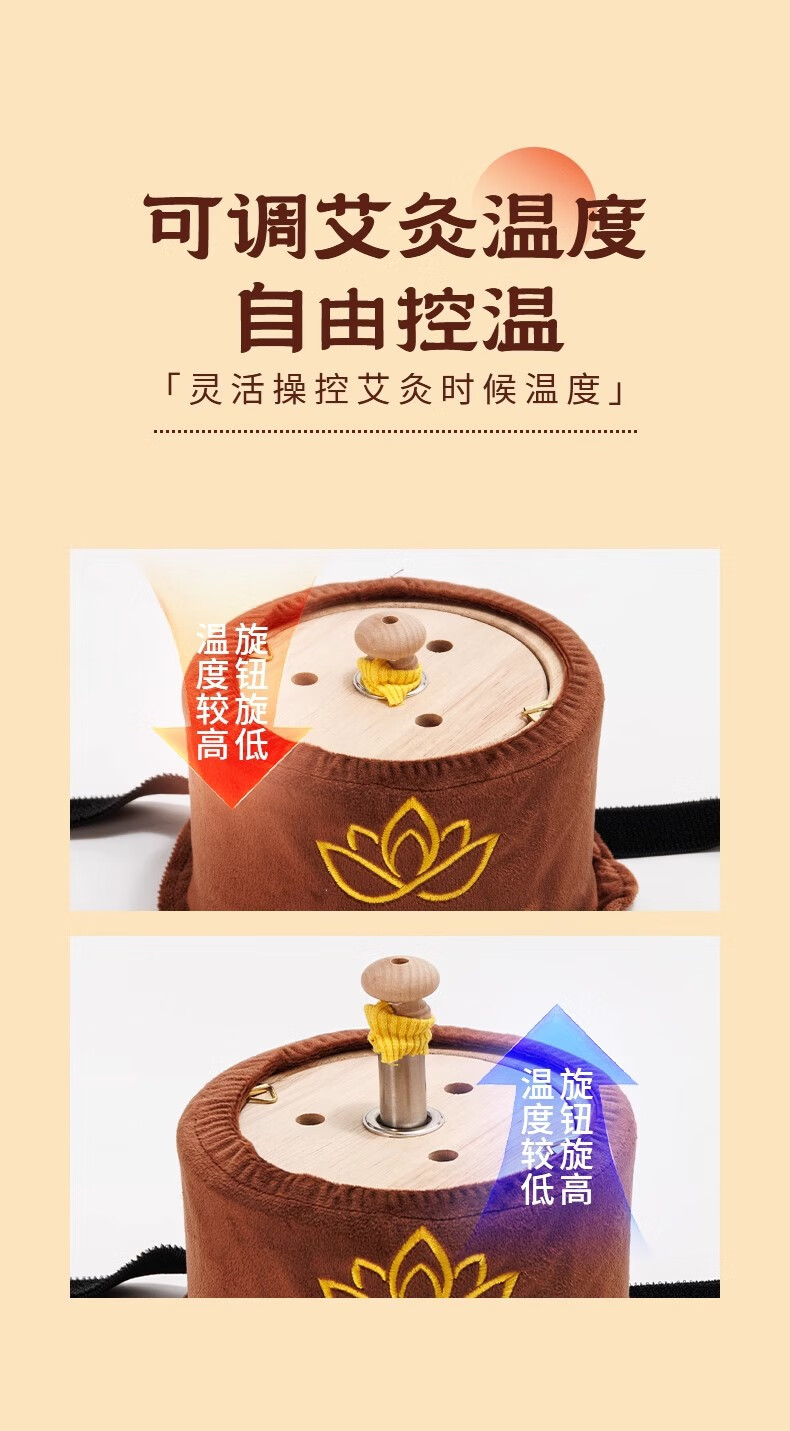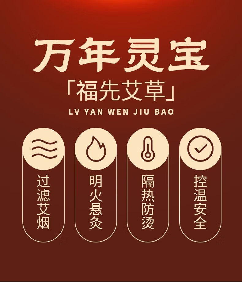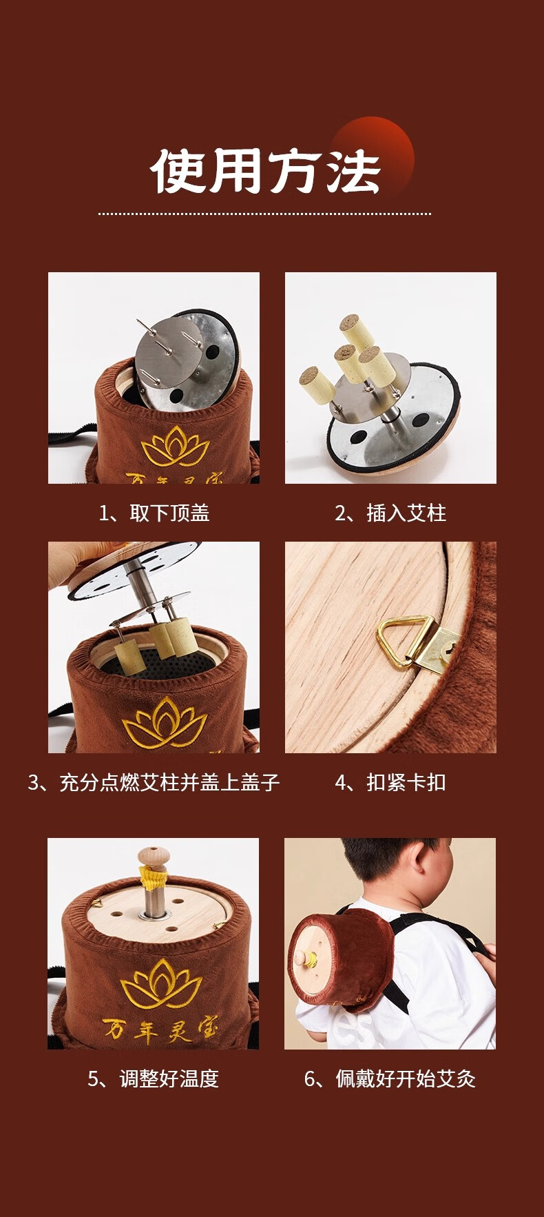 万年灵宝无烟艾灸盒橡木大灸罐随身灸家用暖宫腰带腹部肚子腰 万年灵 滤烟温灸宝单住4针灸盒+万年灵仲景专用艾柱 精品版