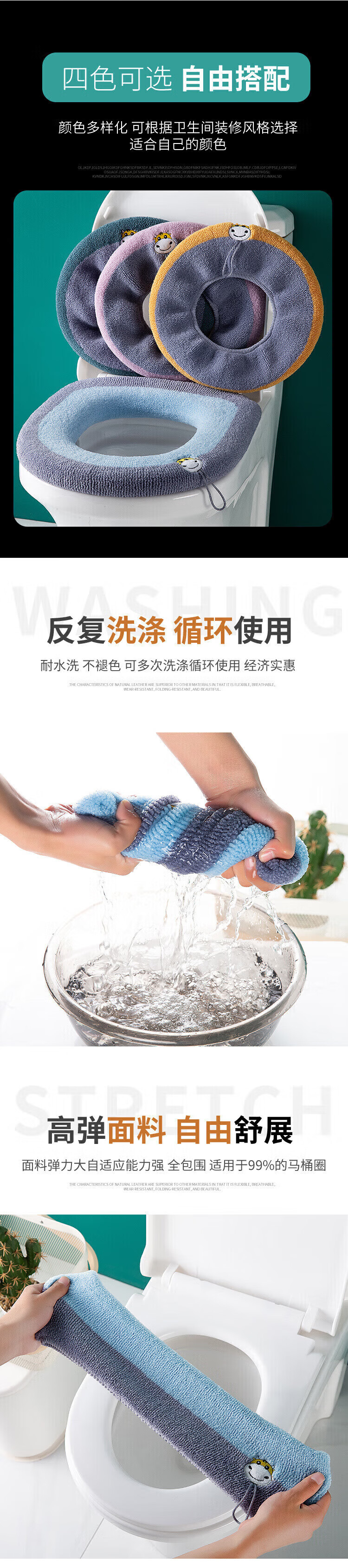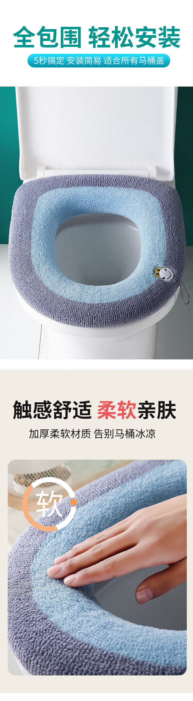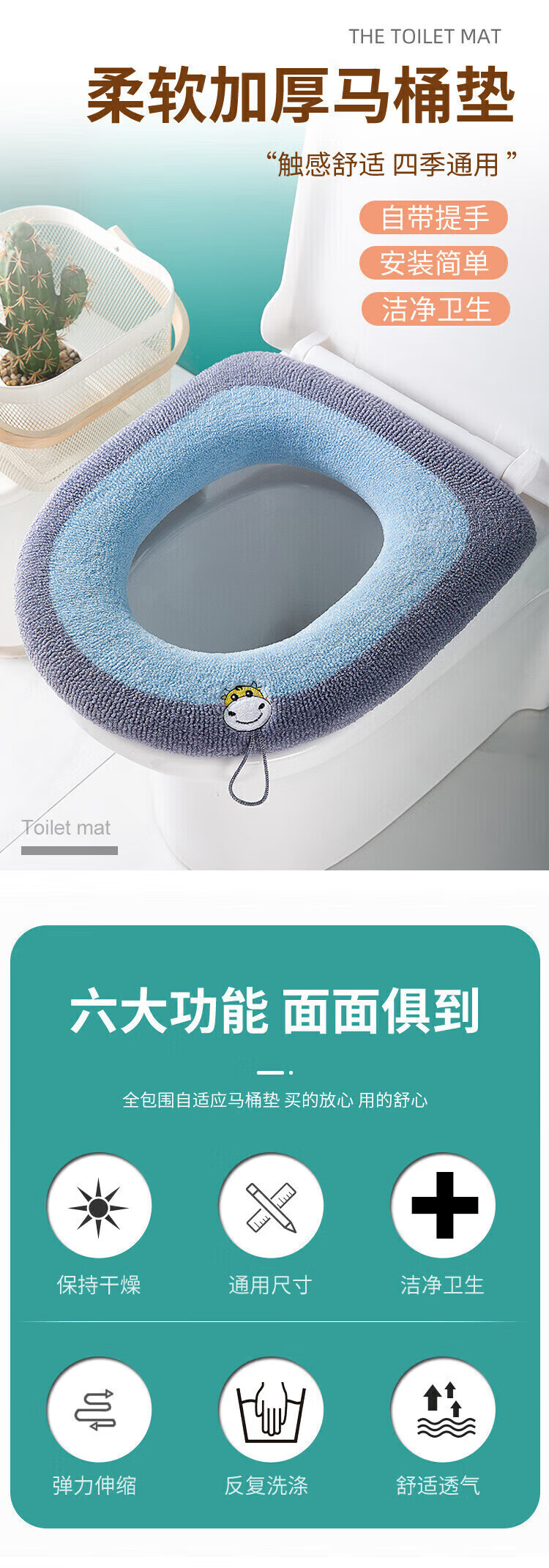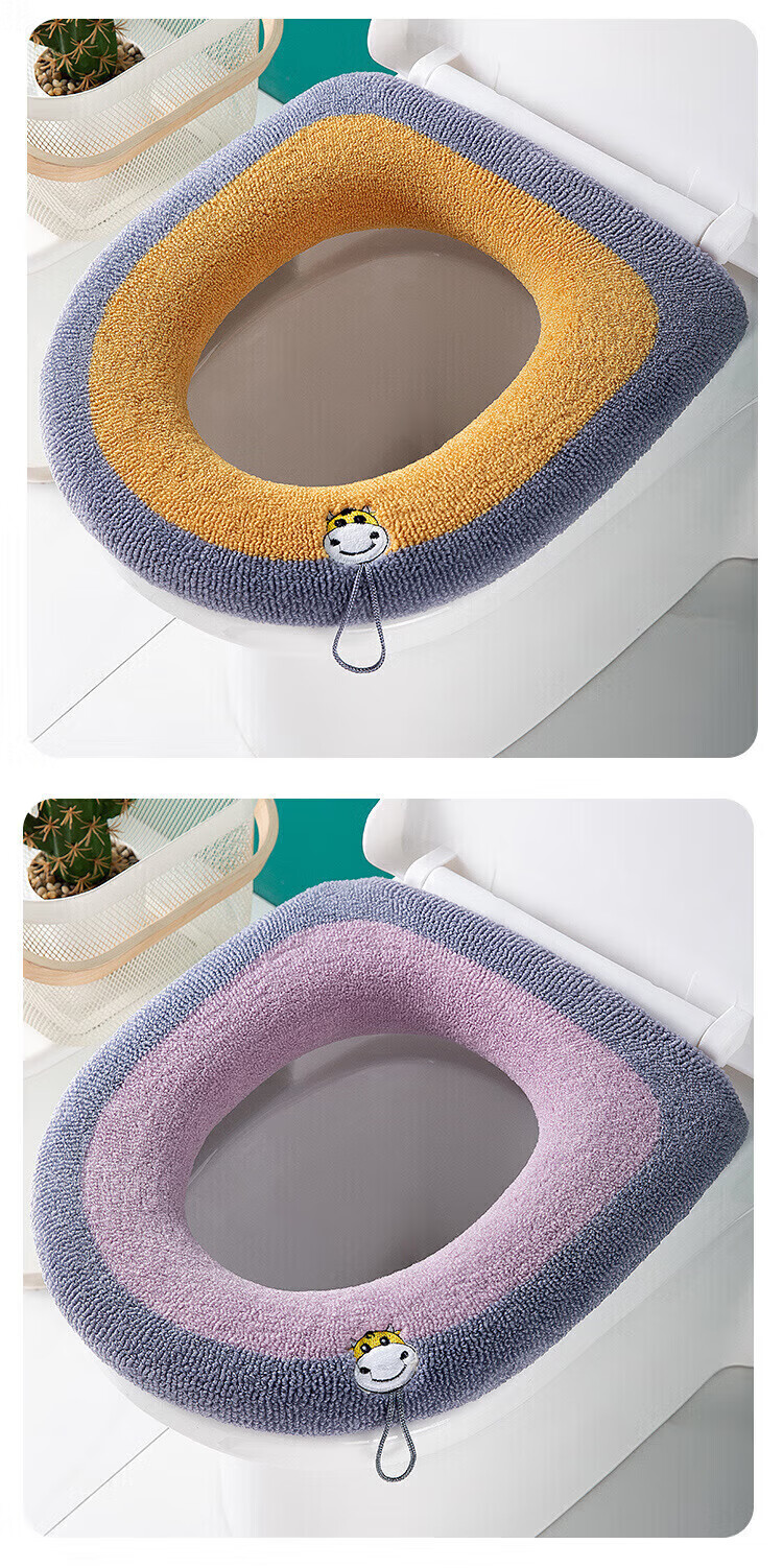 Jidaocook马桶坐垫家用坐便套冬季加厚针织四季通用大号坐便器垫子马桶垫圈 牛头加厚提手【灰蓝】1个装