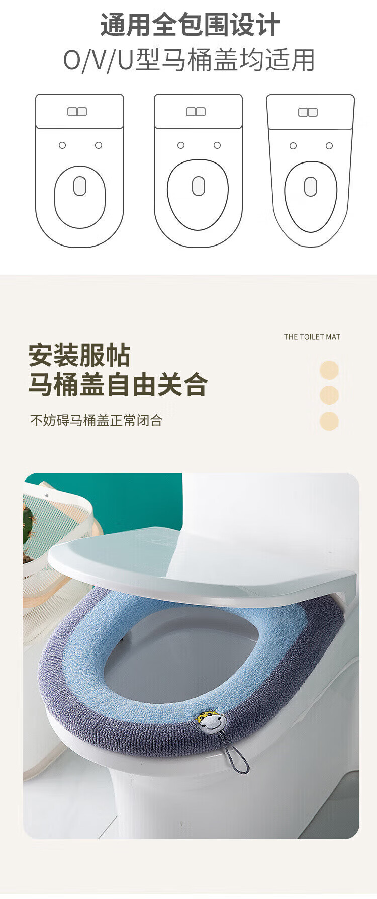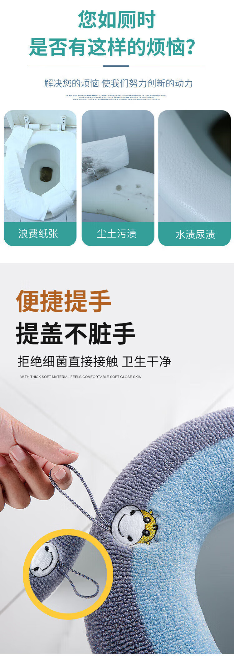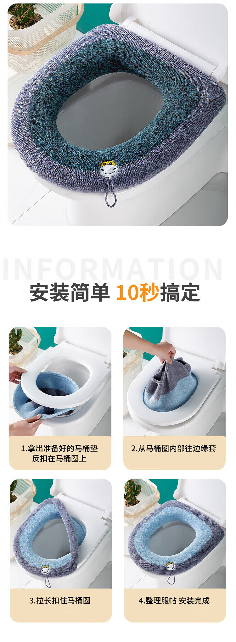 Jidaocook马桶坐垫家用坐便套冬季加厚针织四季通用大号坐便器垫子马桶垫圈 牛头加厚提手【灰蓝】1个装