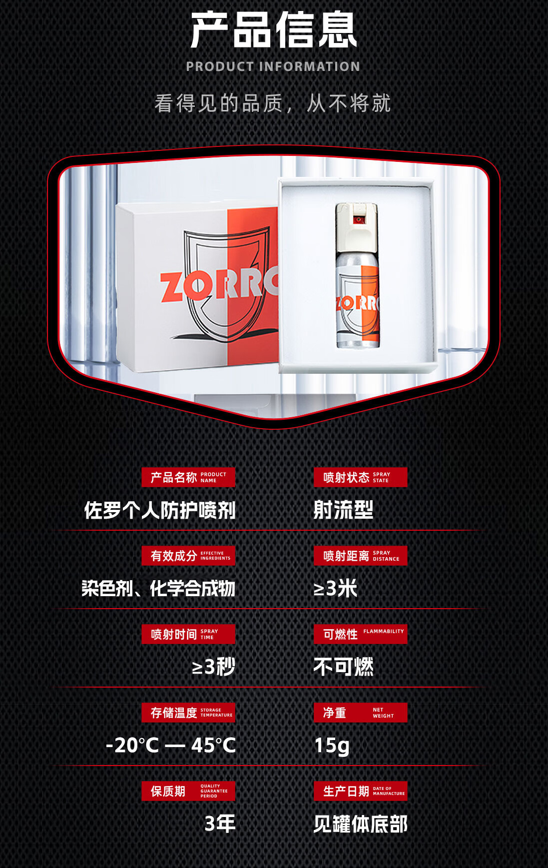 佐罗(ZORRO)玲珑盾 女子防身防狼神器防恶犬随身防狼水防卫雾剂防护用品