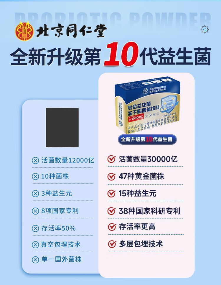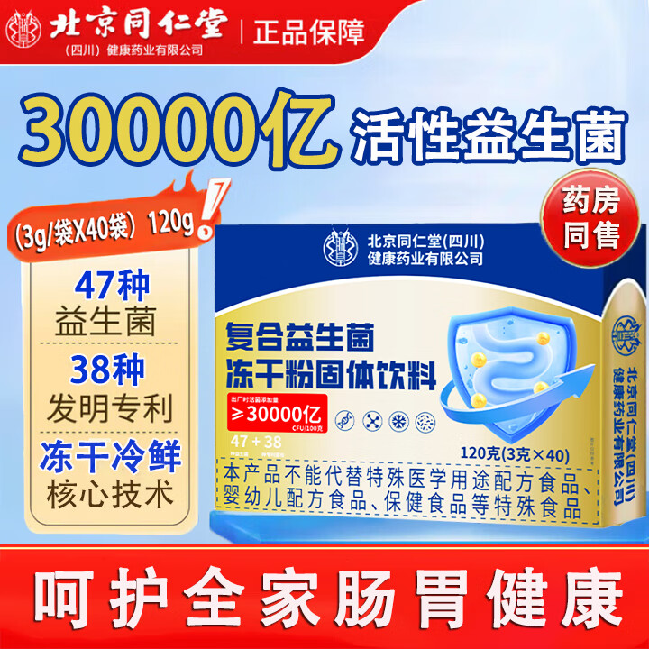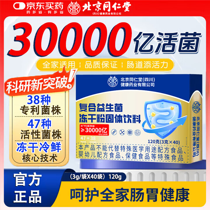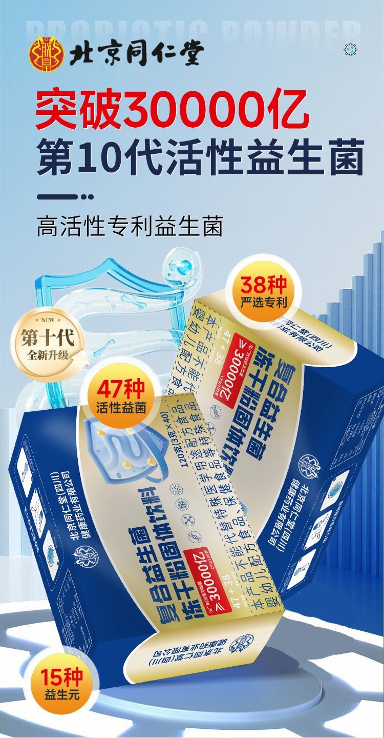 北京同仁堂益生菌粉肠道肠胃道复合益生菌益生元活性菌冻干粉 3盒【120袋*3g】益生菌周期装