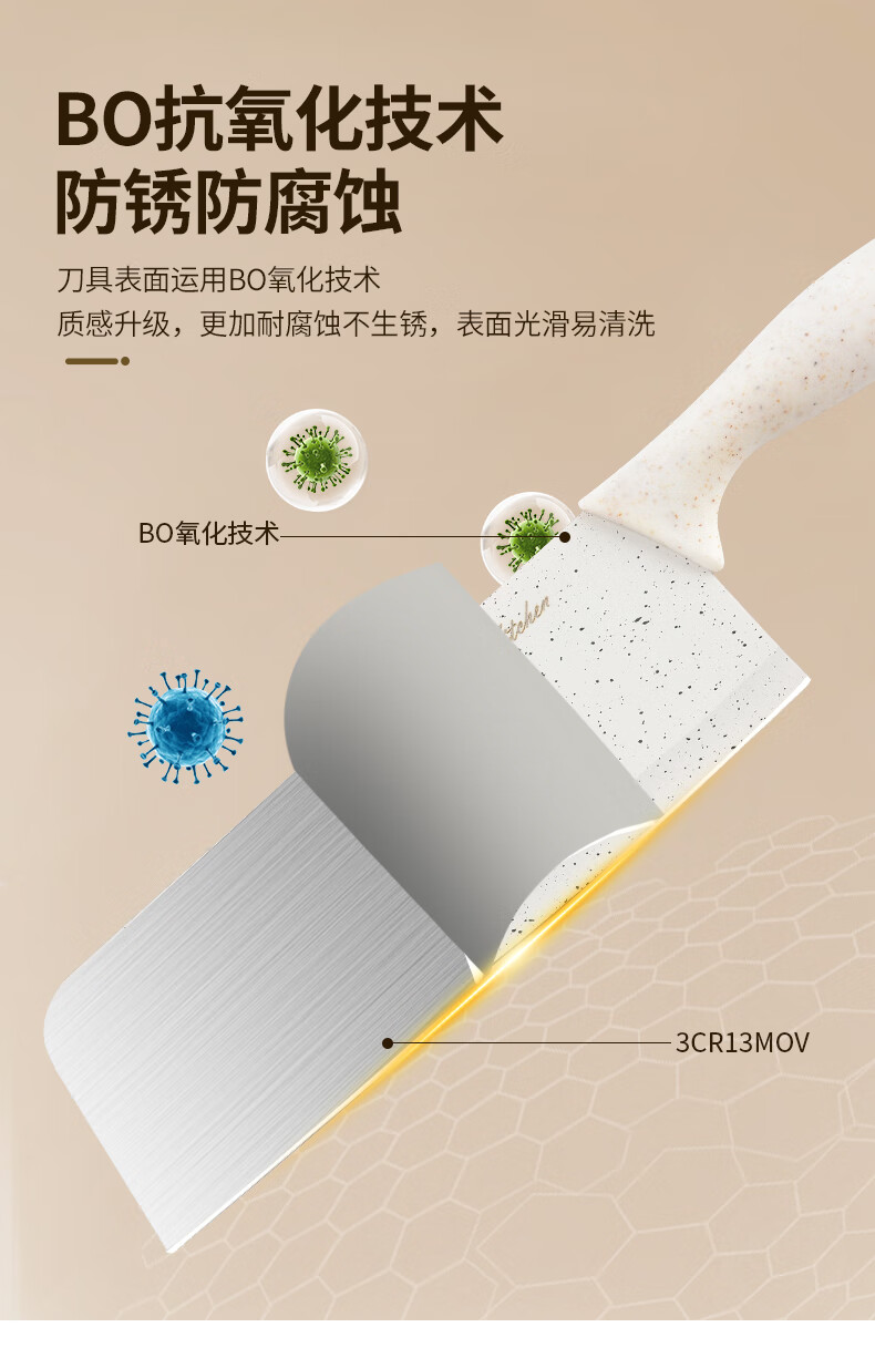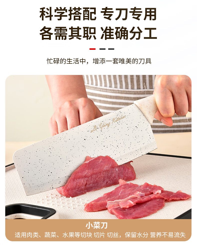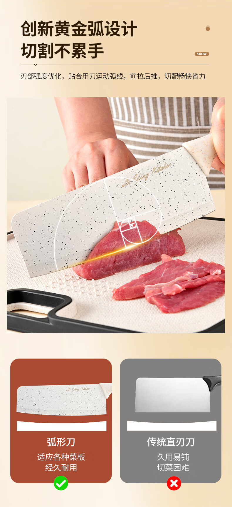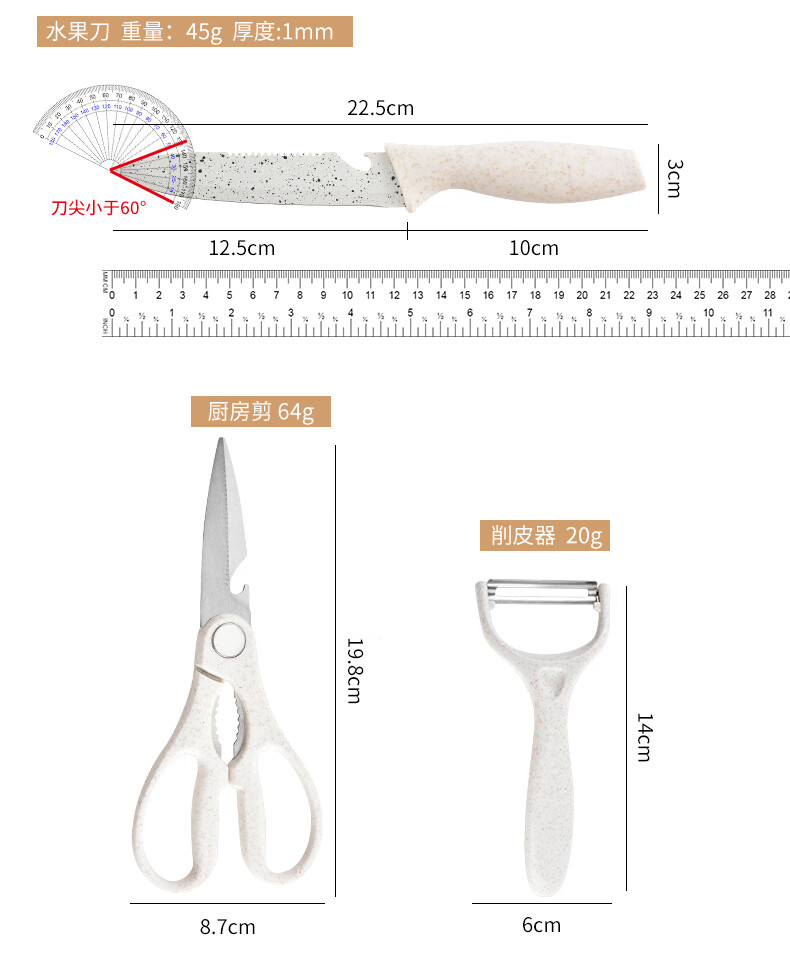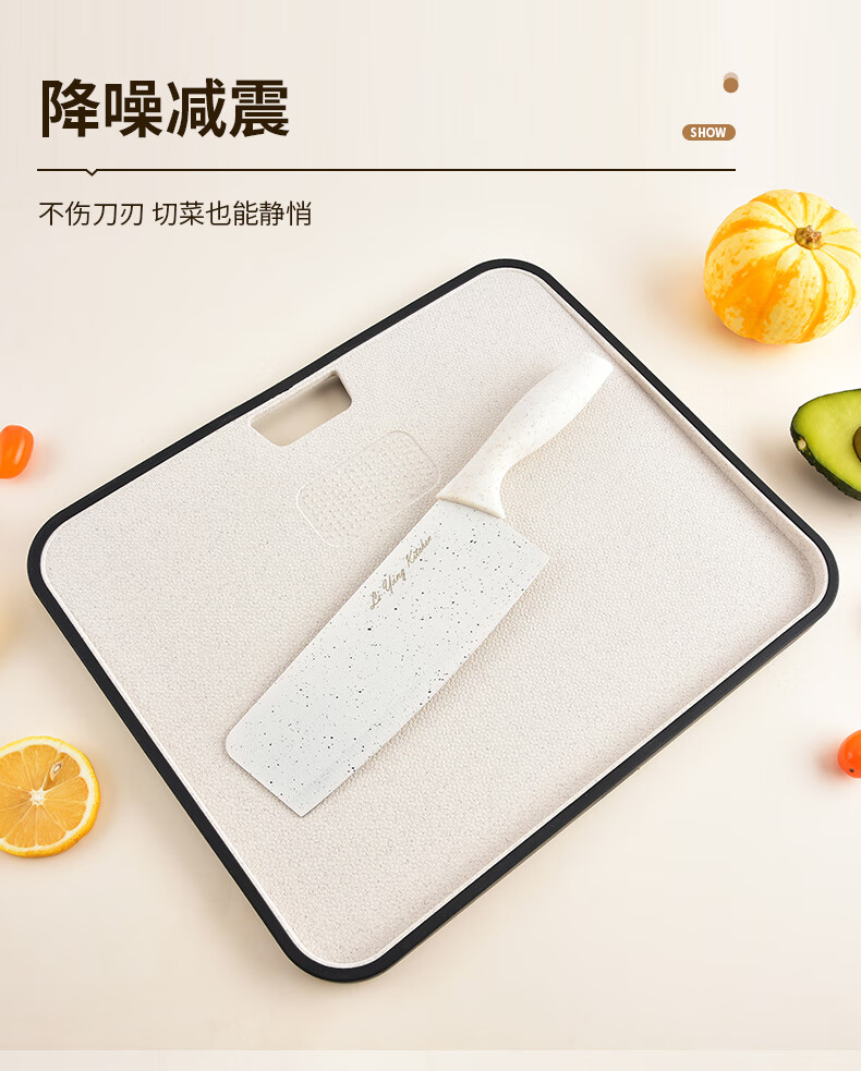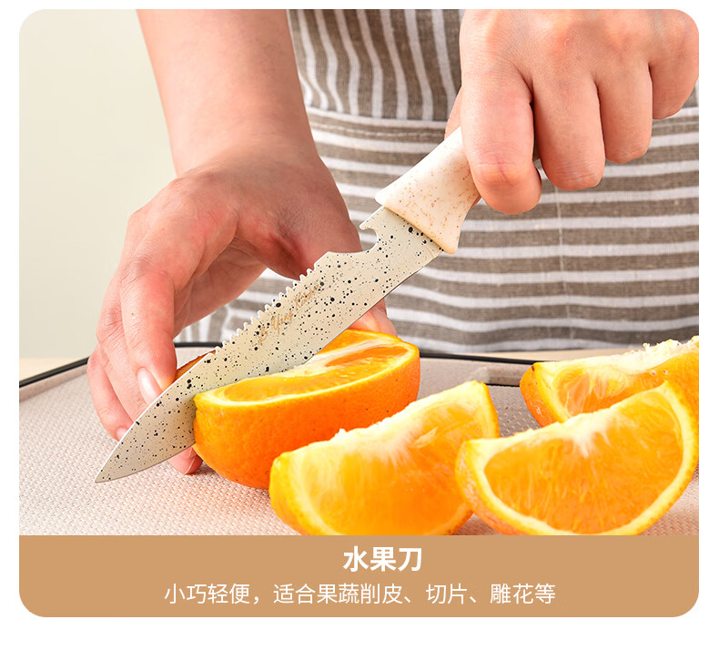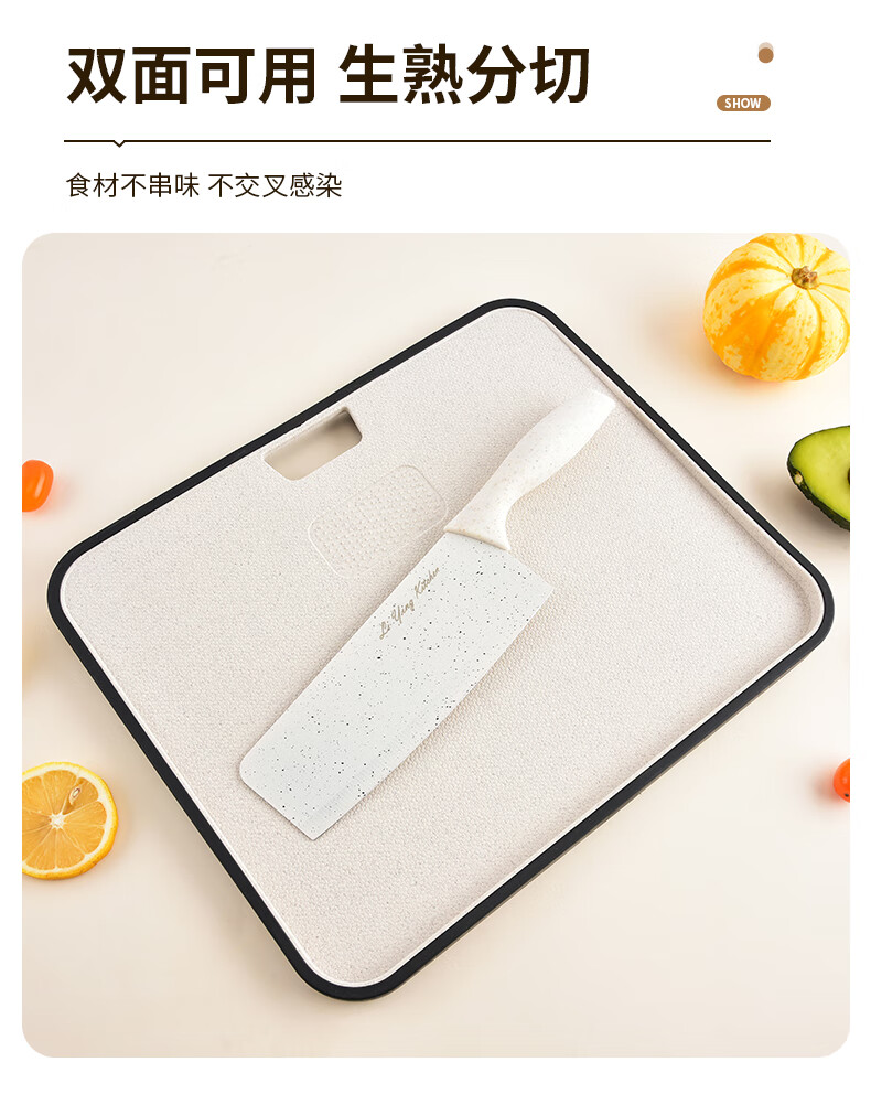 婴儿辅食刀具套装宝宝专用菜刀菜板砧板全套厨房工具宿舍组合套装 【米白色】双面菜刀菜板4件套装