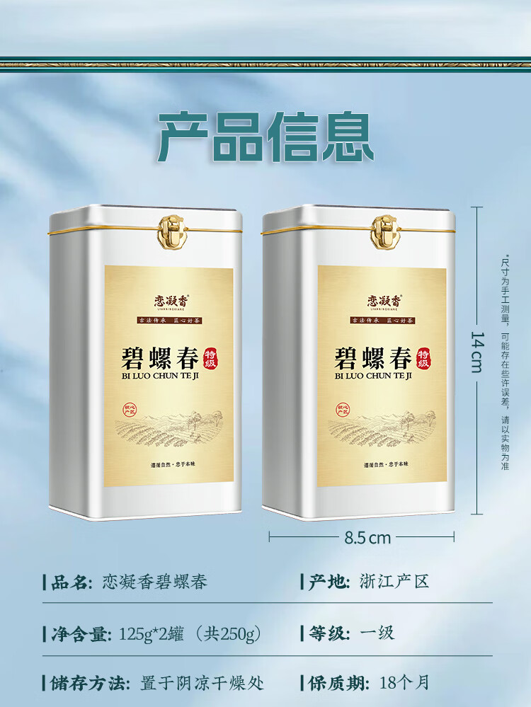 恋凝香碧螺春2025雨前嫩芽新茶耐泡炒青绿茶高山浓香型花果香250g共2罐