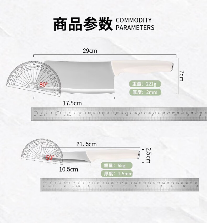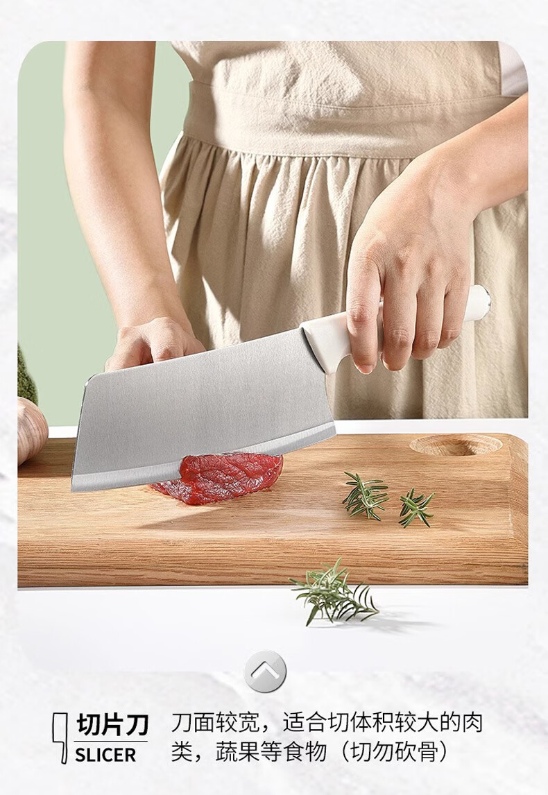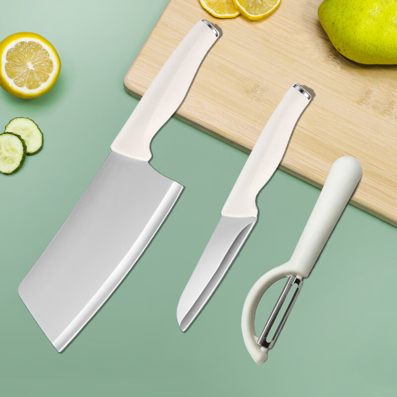 优赏不锈钢刀具套装厨师专用菜刀厨房锋利家用切菜刀组合水果刀厨师刀 雅白菜刀+水果刀+瓜刨【三件套】