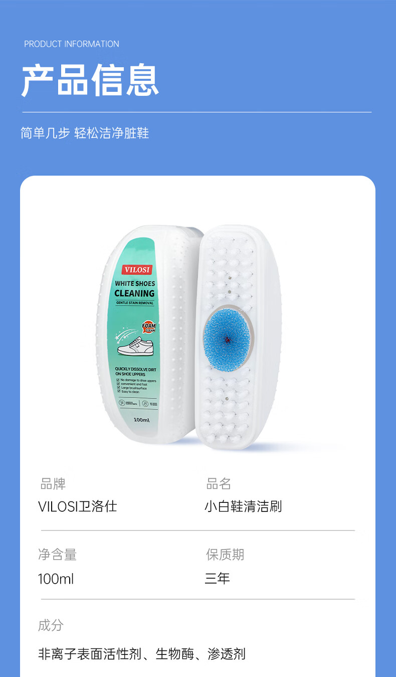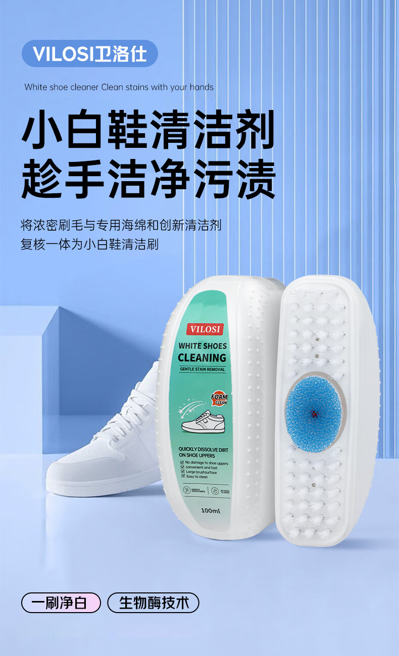 vilosi英国小白鞋清洗剂懒人神器刷鞋洗鞋去污增白免水洗白鞋清洁100ml