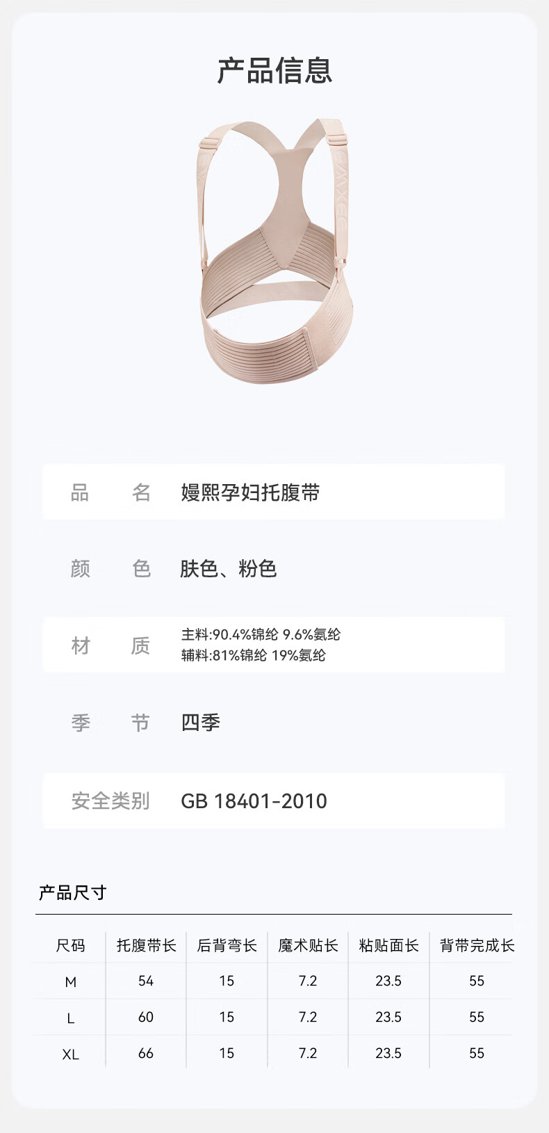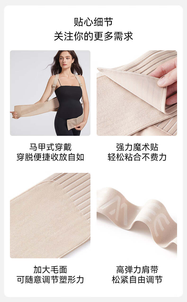 嫚熙(EMXEE)托腹带孕妇专用孕晚期孕中期孕妇拖腹部腰托肚子夏季背带缓解 肤色/L【建议体重120-140斤】