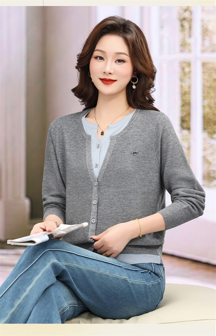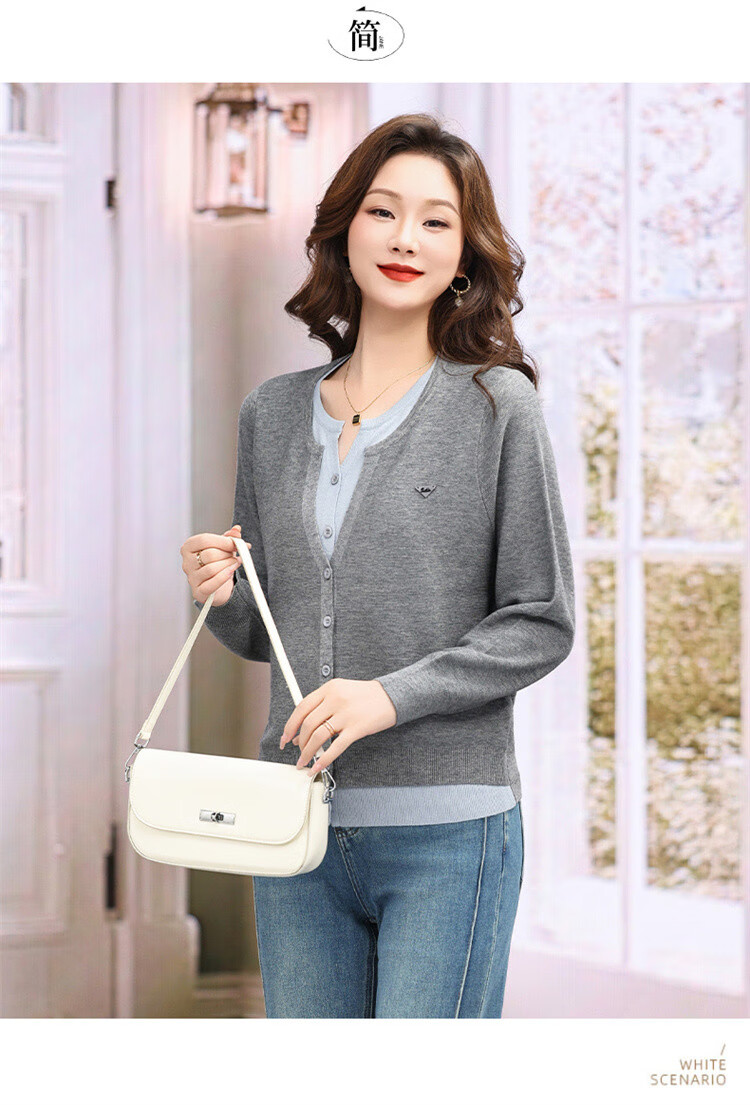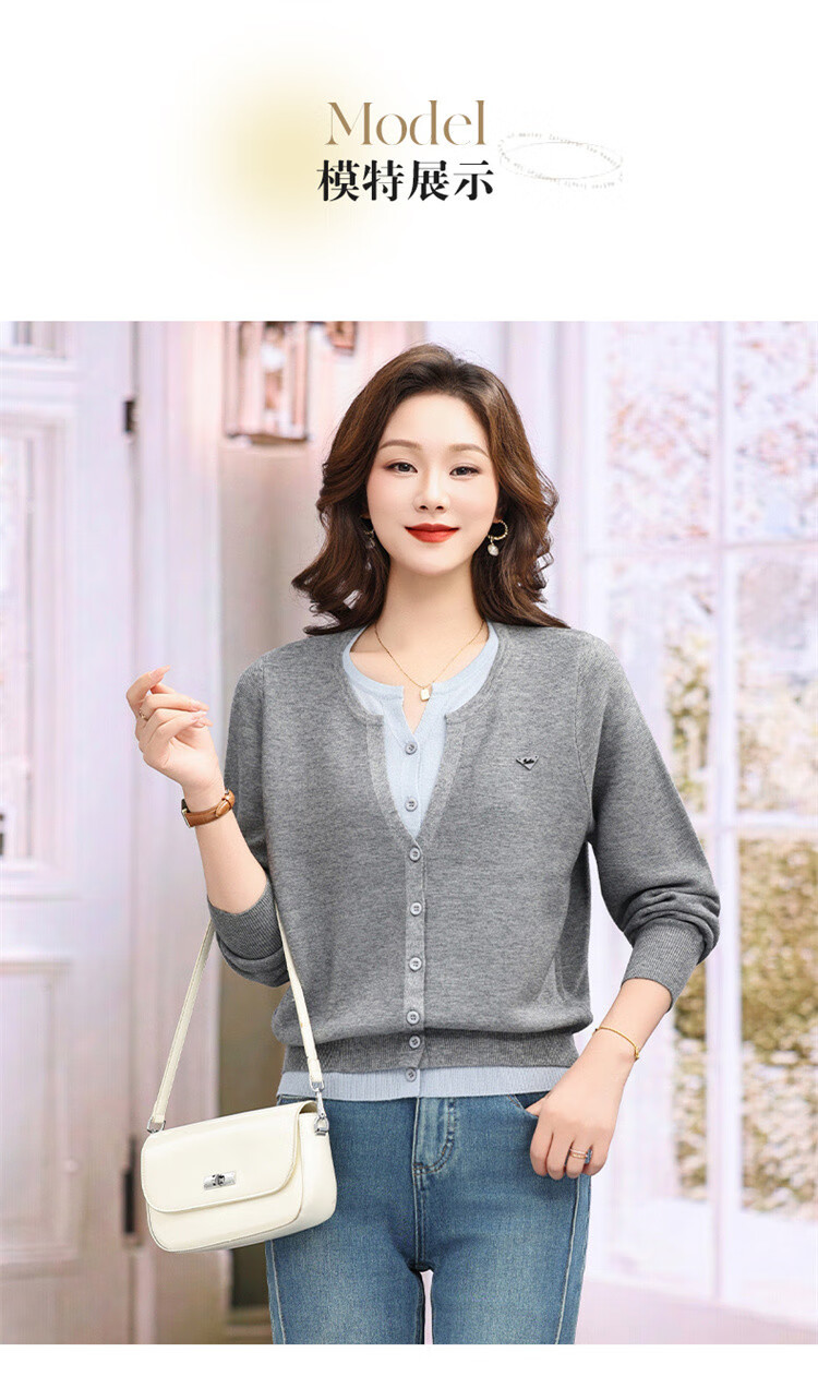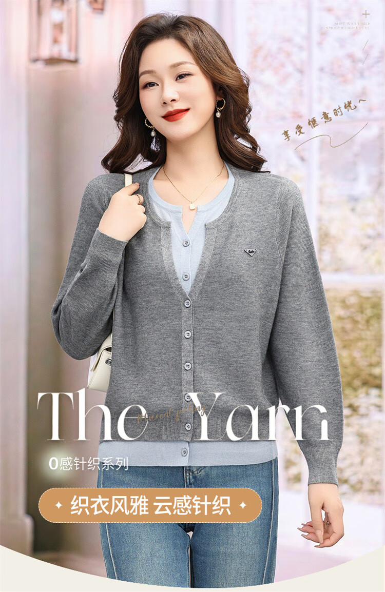 简狐妈妈装秋装时尚气质毛衣春秋季中老年女装长袖V领针织开衫上衣服