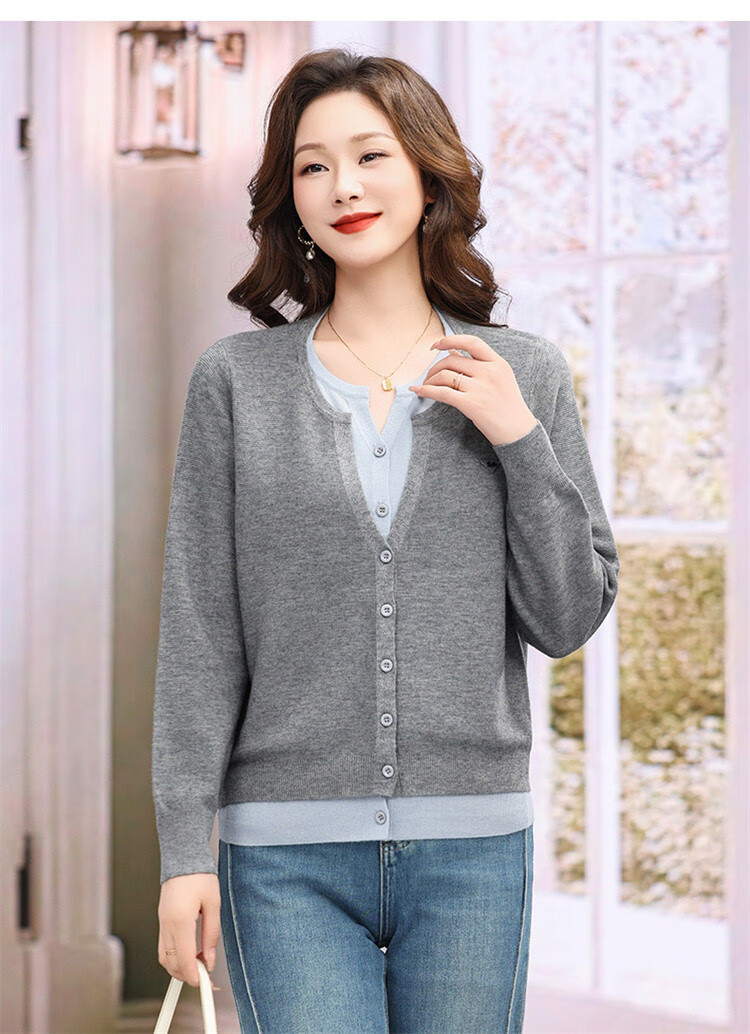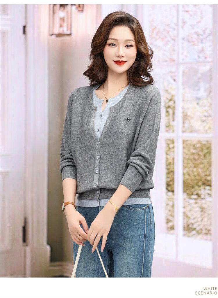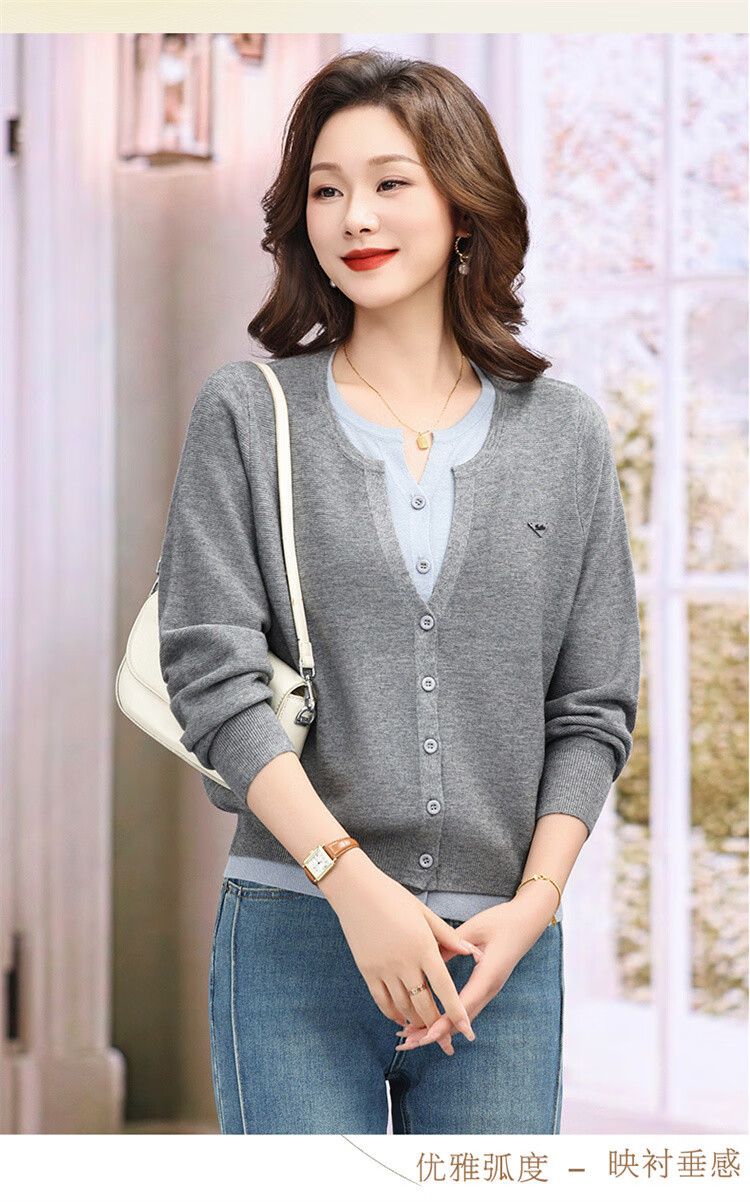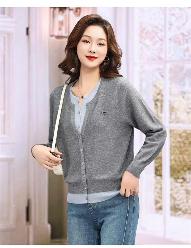 简狐妈妈装秋装时尚气质毛衣春秋季中老年女装长袖V领针织开衫上衣服