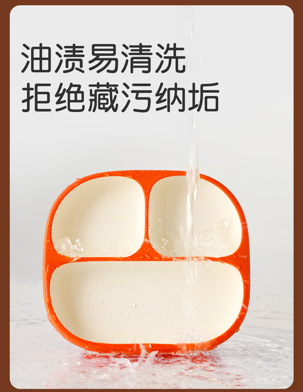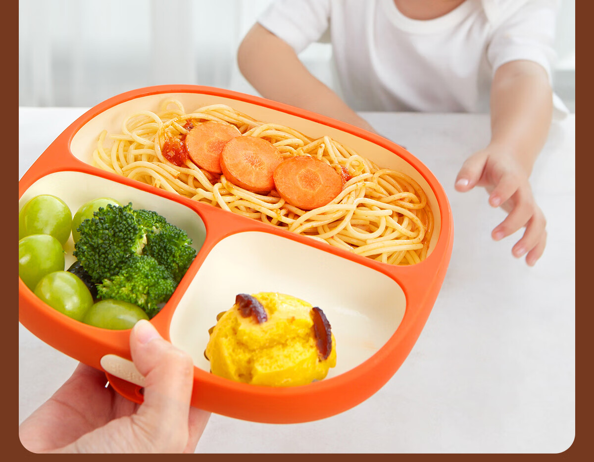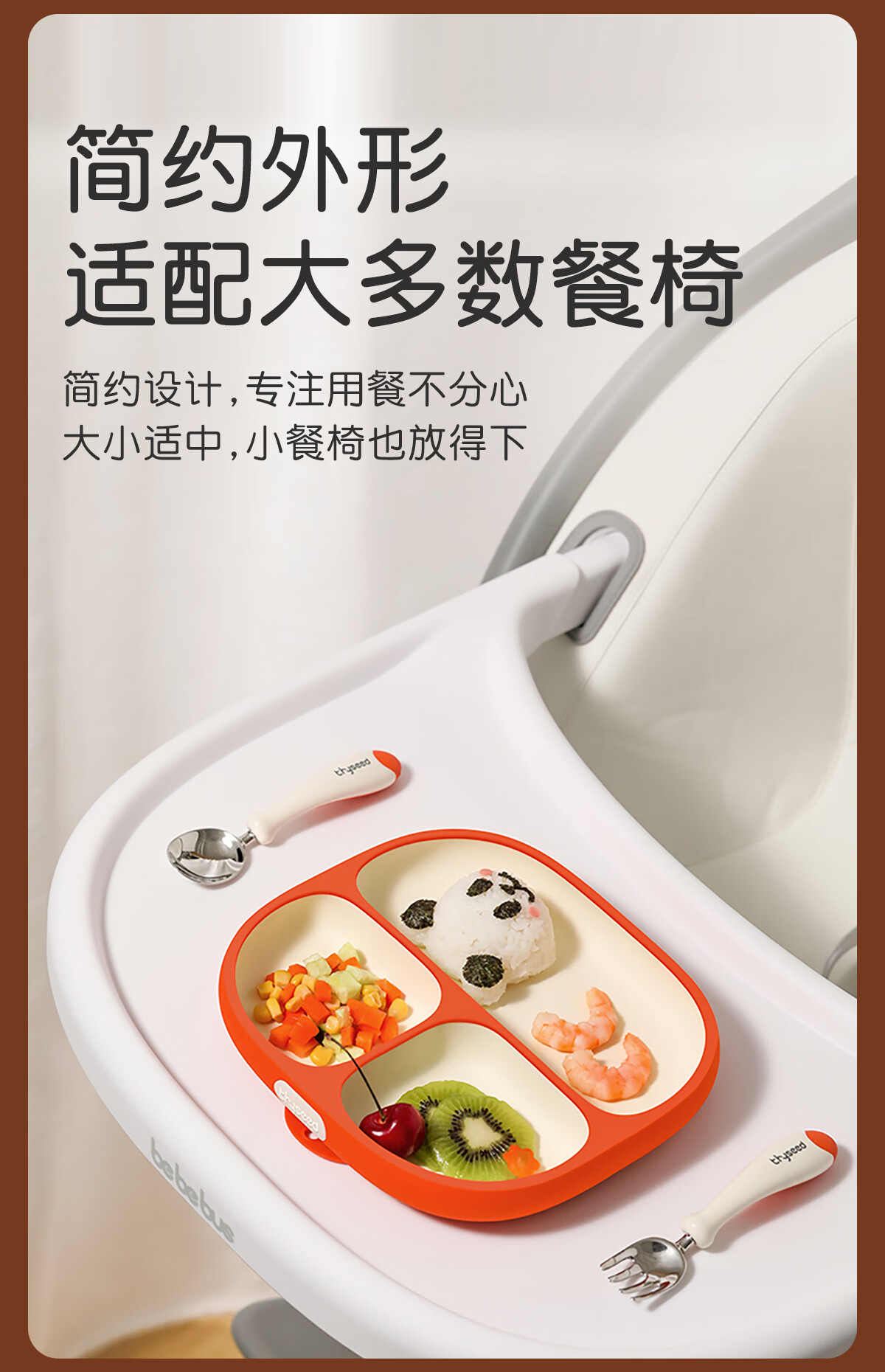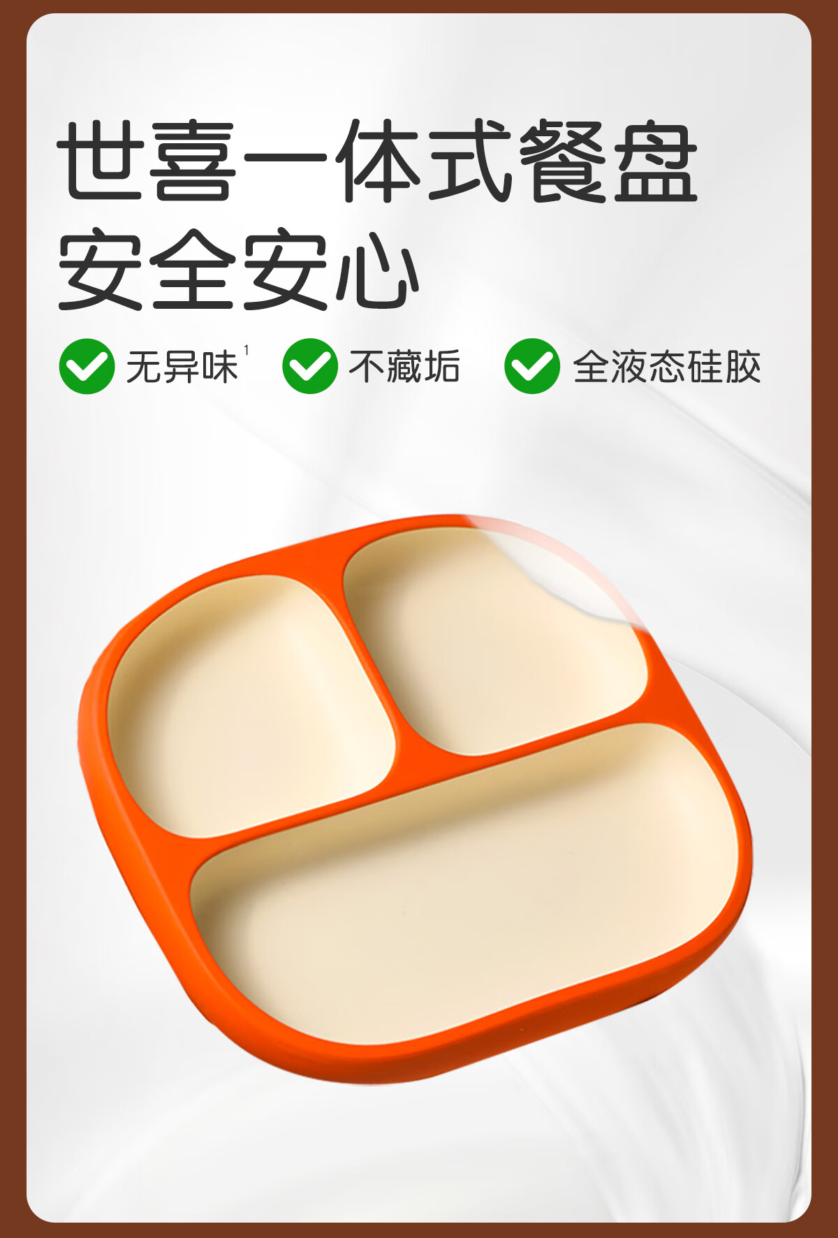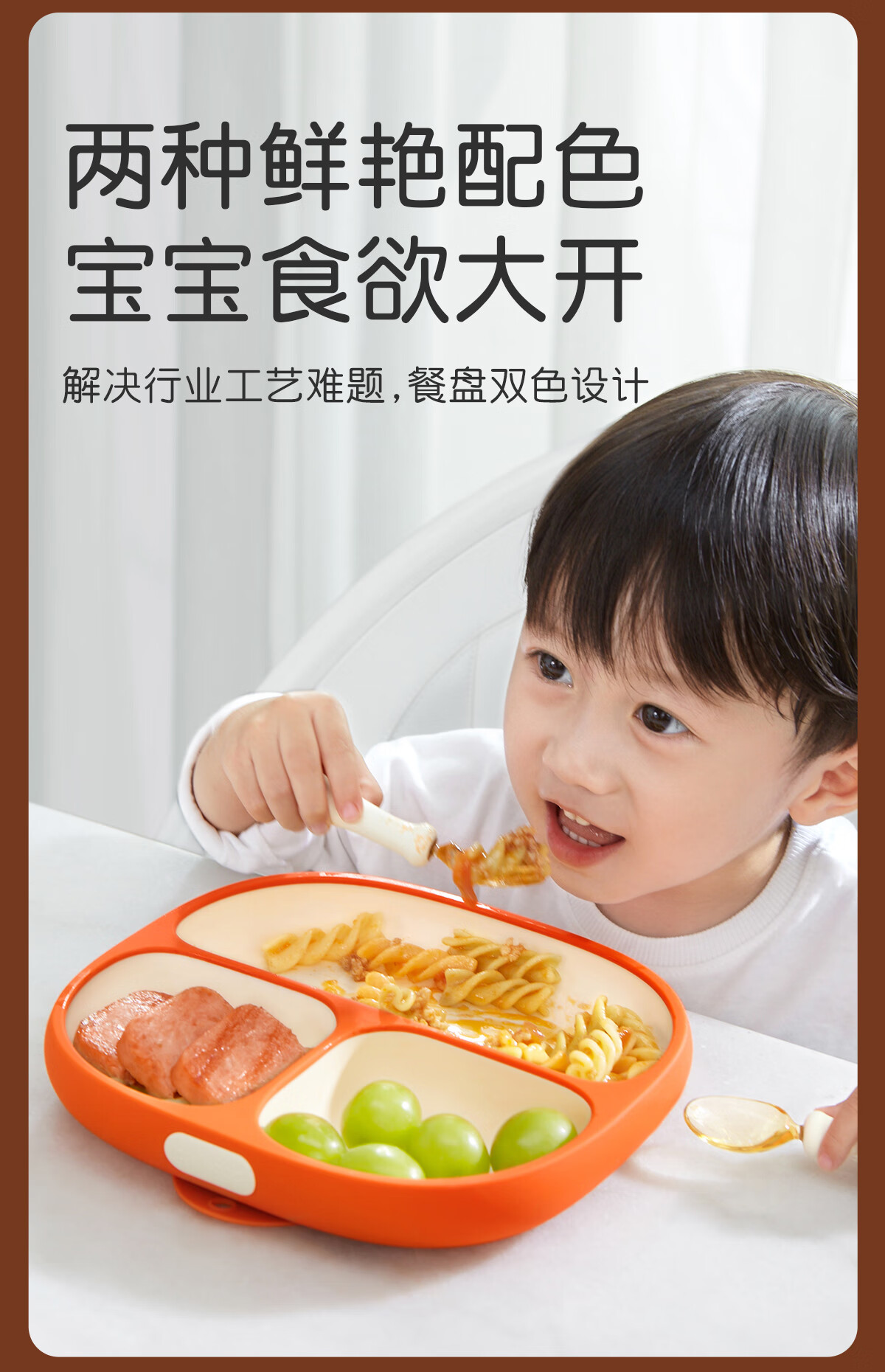 世喜婴儿餐盘分格带吸盘 宝宝训练弯弯辅食勺学吃饭叉子 儿童餐具套装