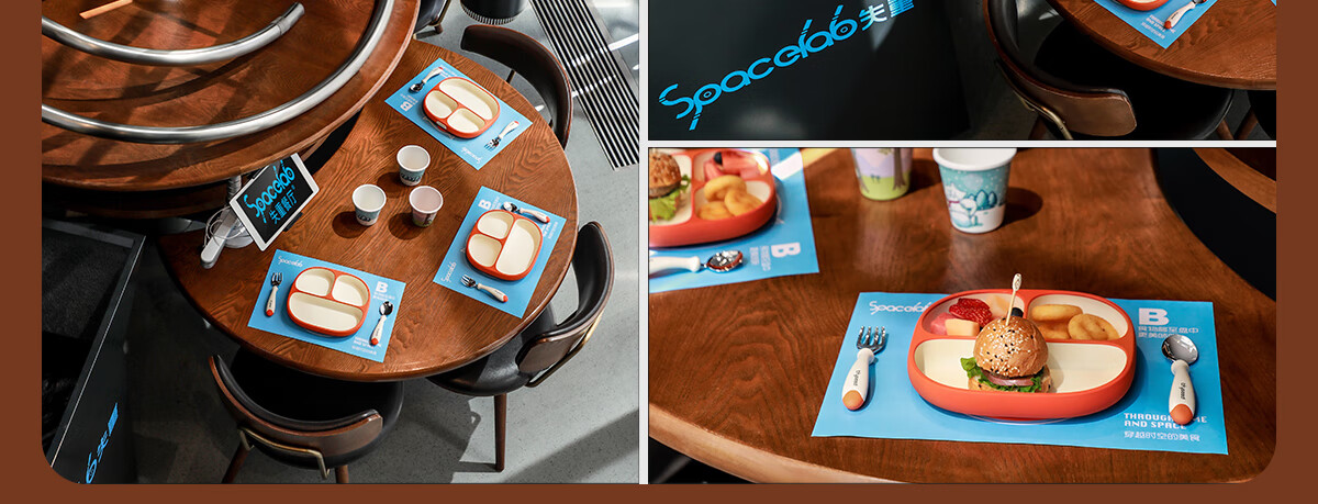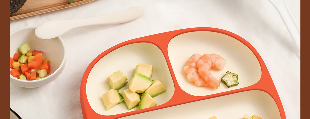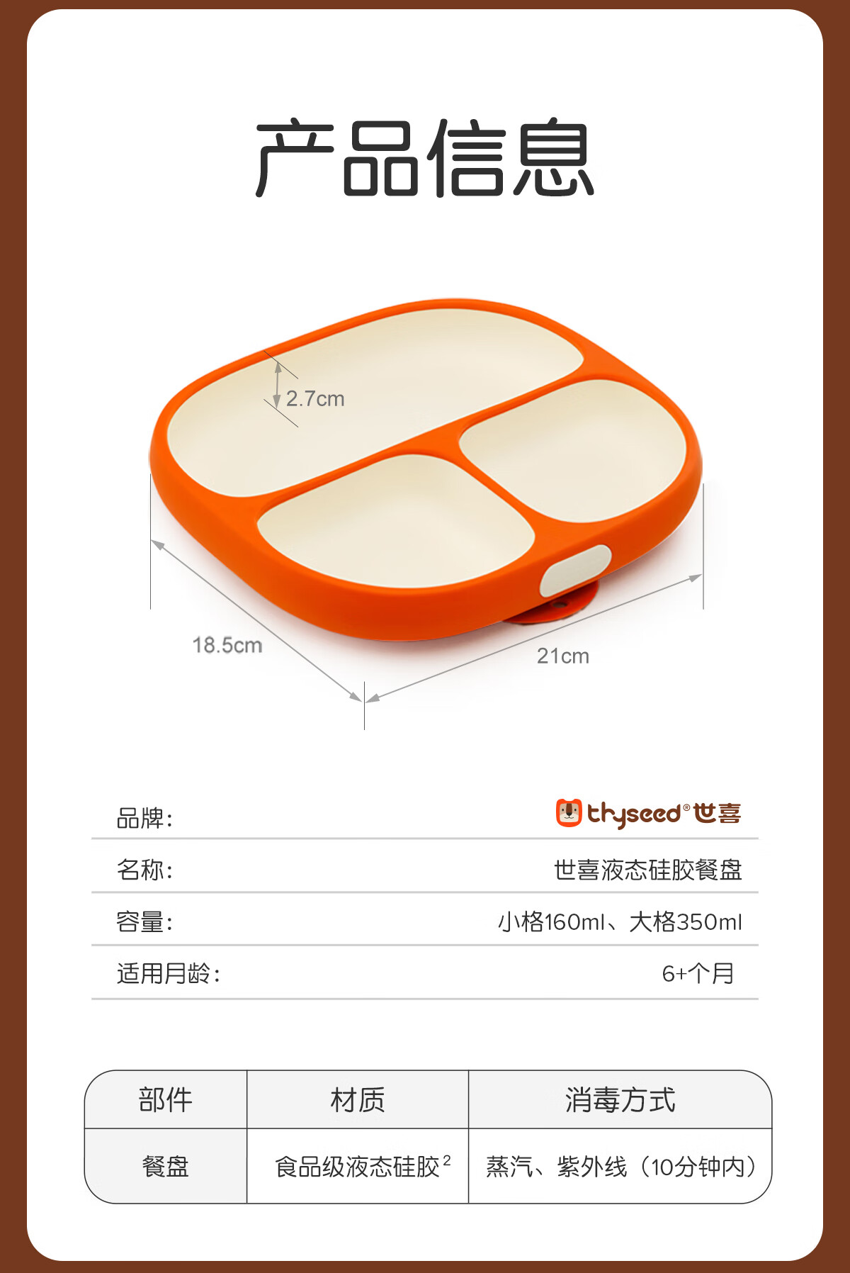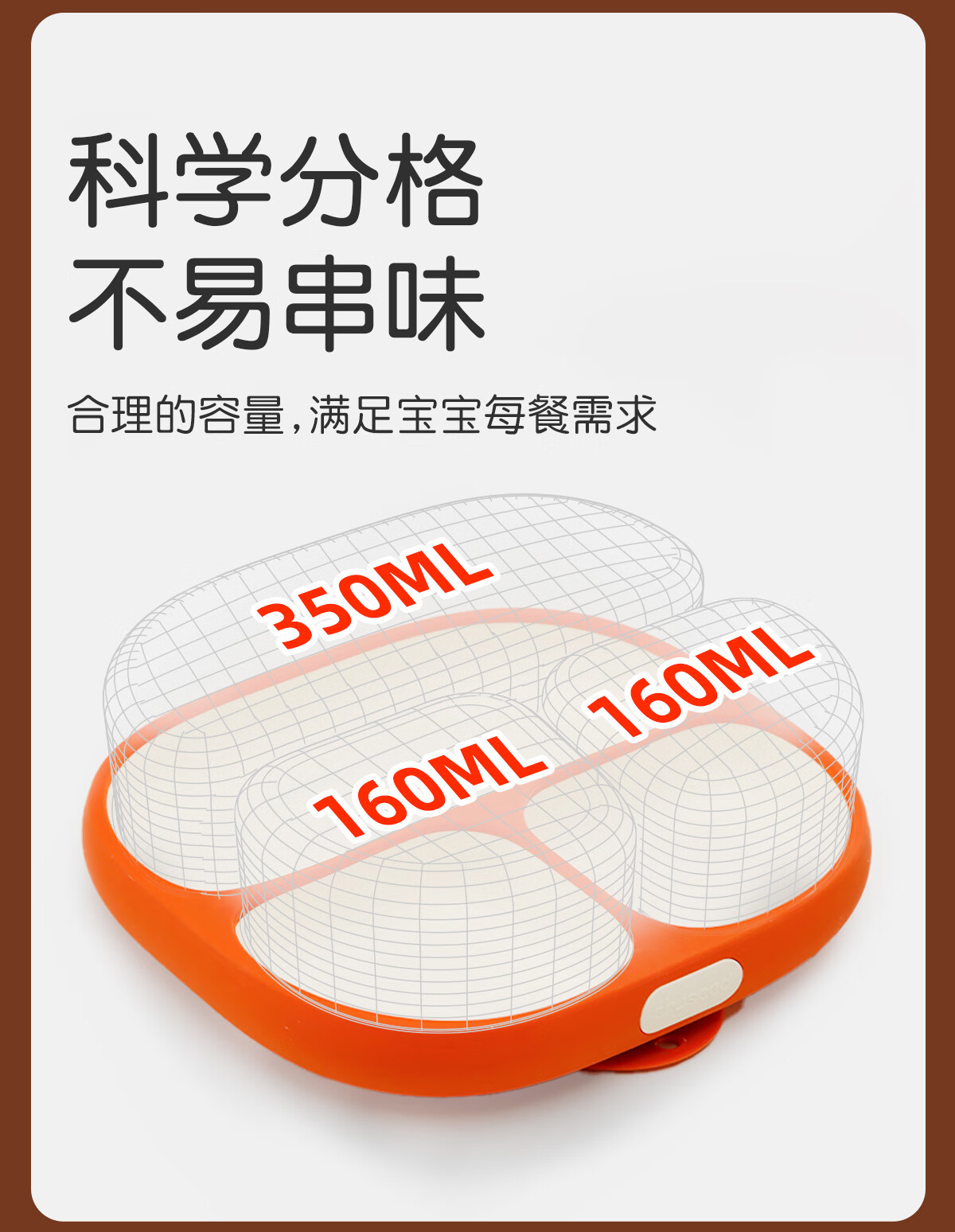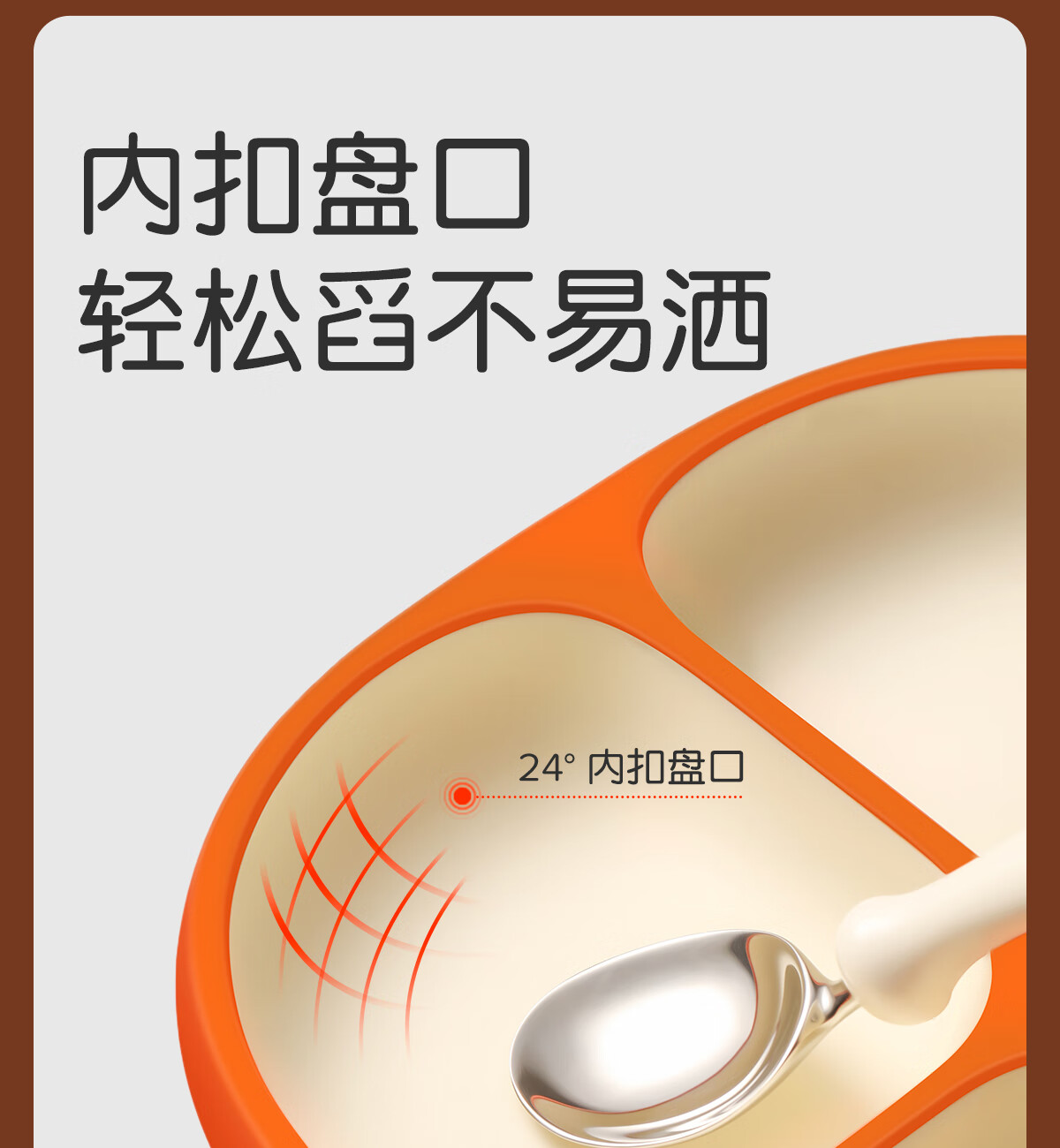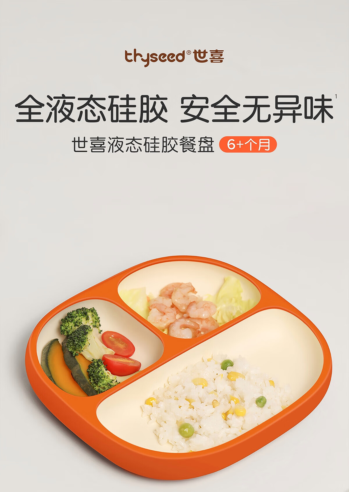 世喜婴儿餐盘分格带吸盘 宝宝训练弯弯辅食勺学吃饭叉子 儿童餐具套装
