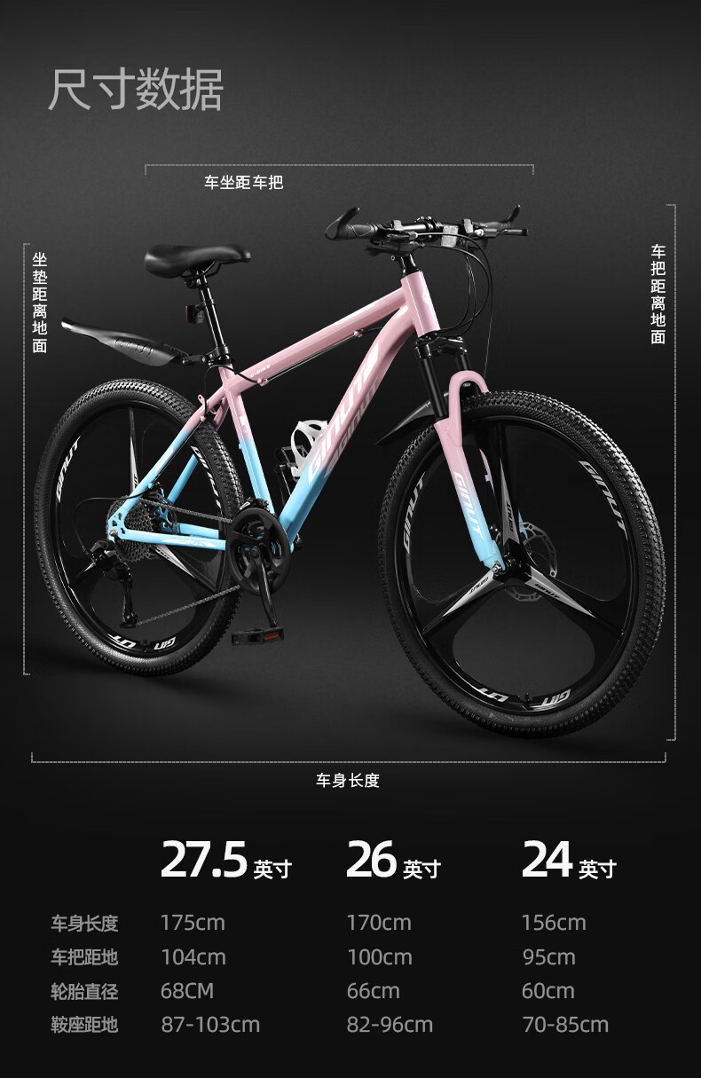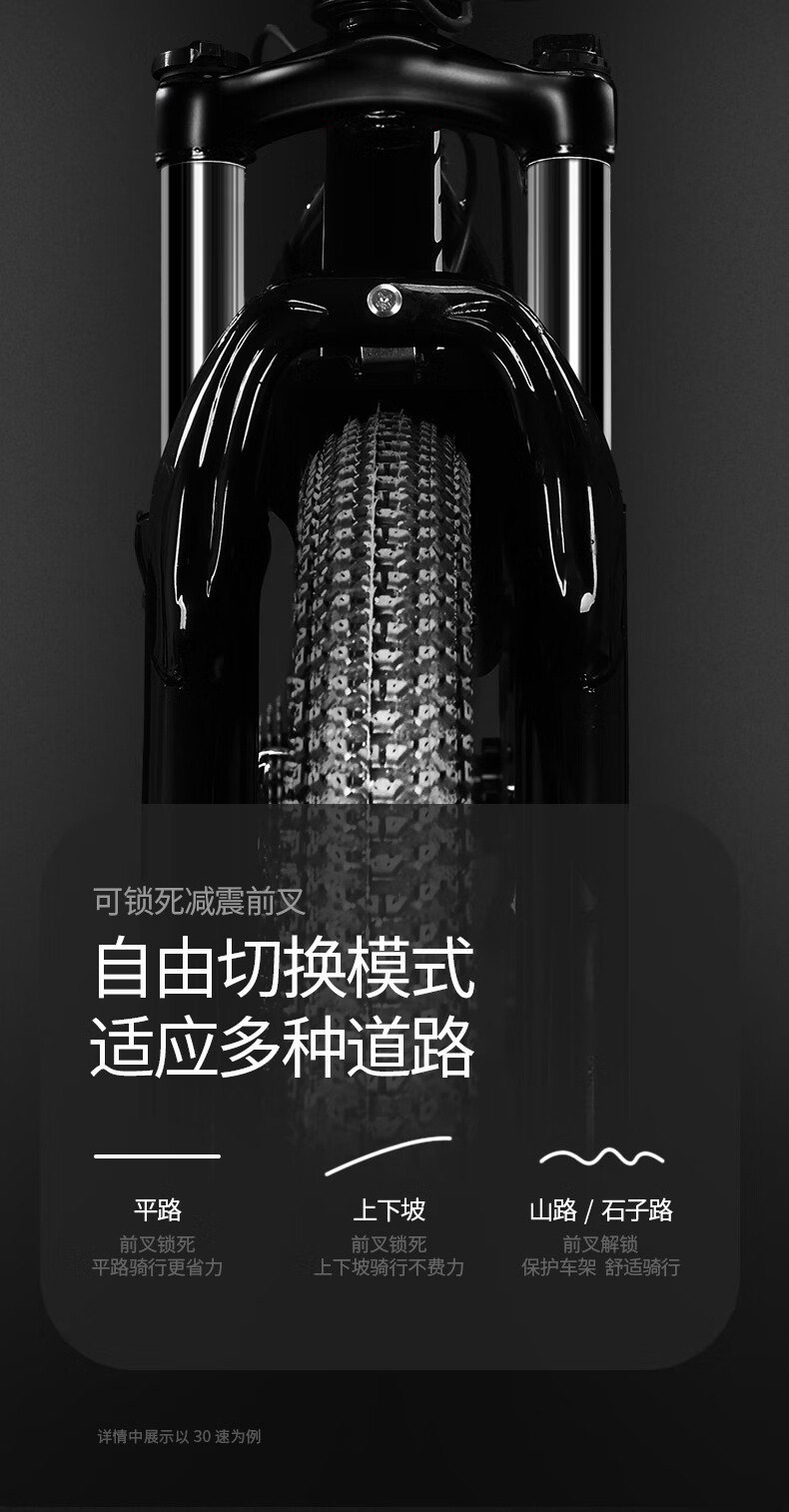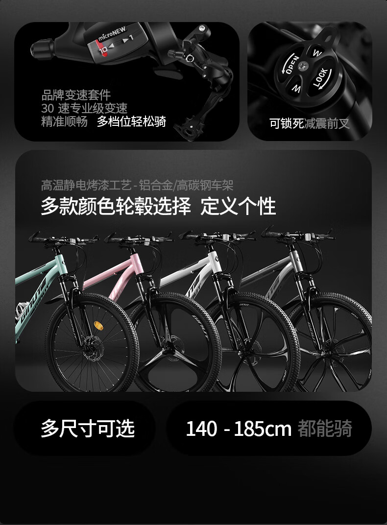 山地自行车女款成人男款男士变速公路减震单车女式初中学生青少年 钢架辐条-曜夜灰【加粗硬叉】 26寸21速