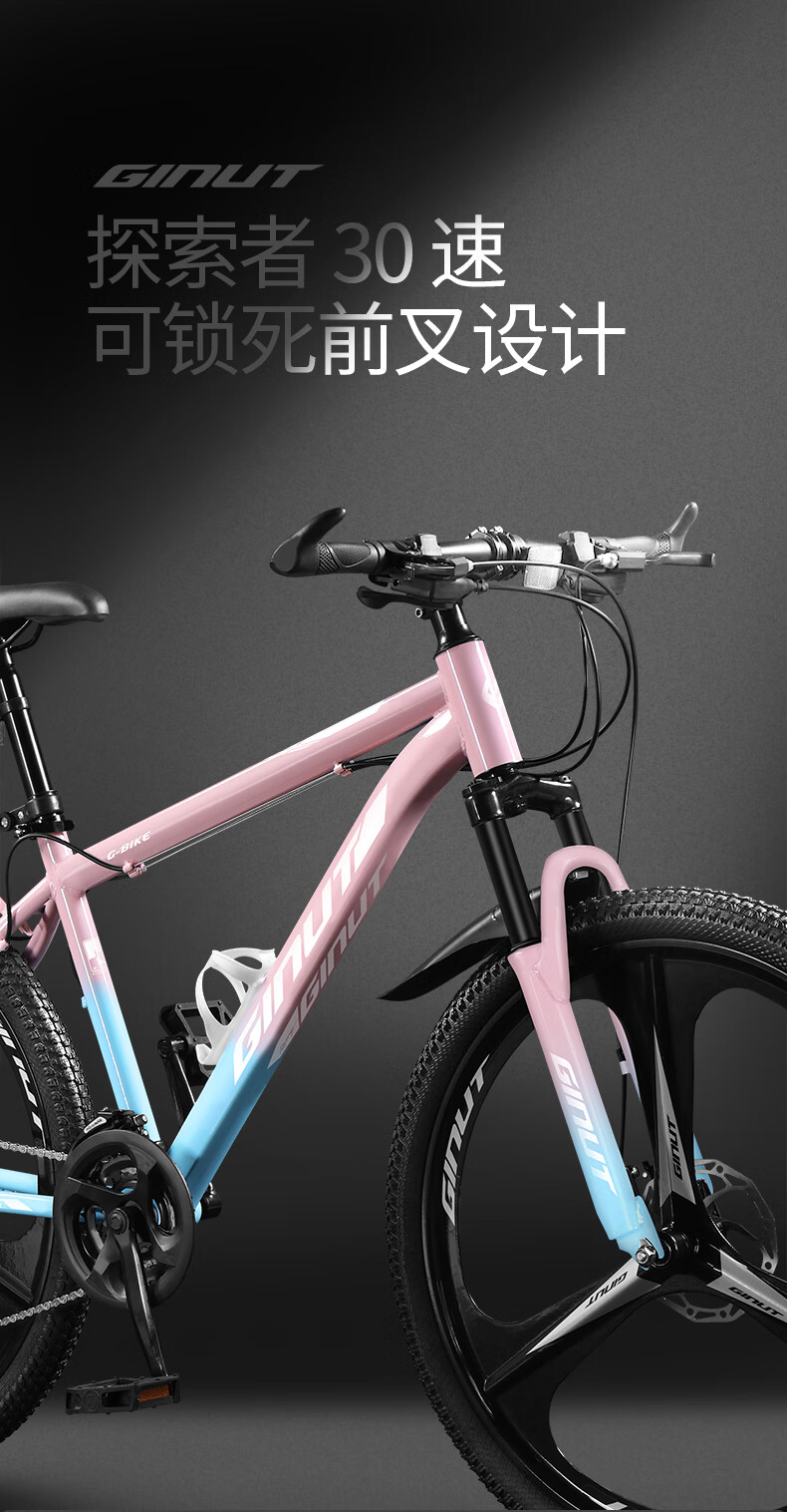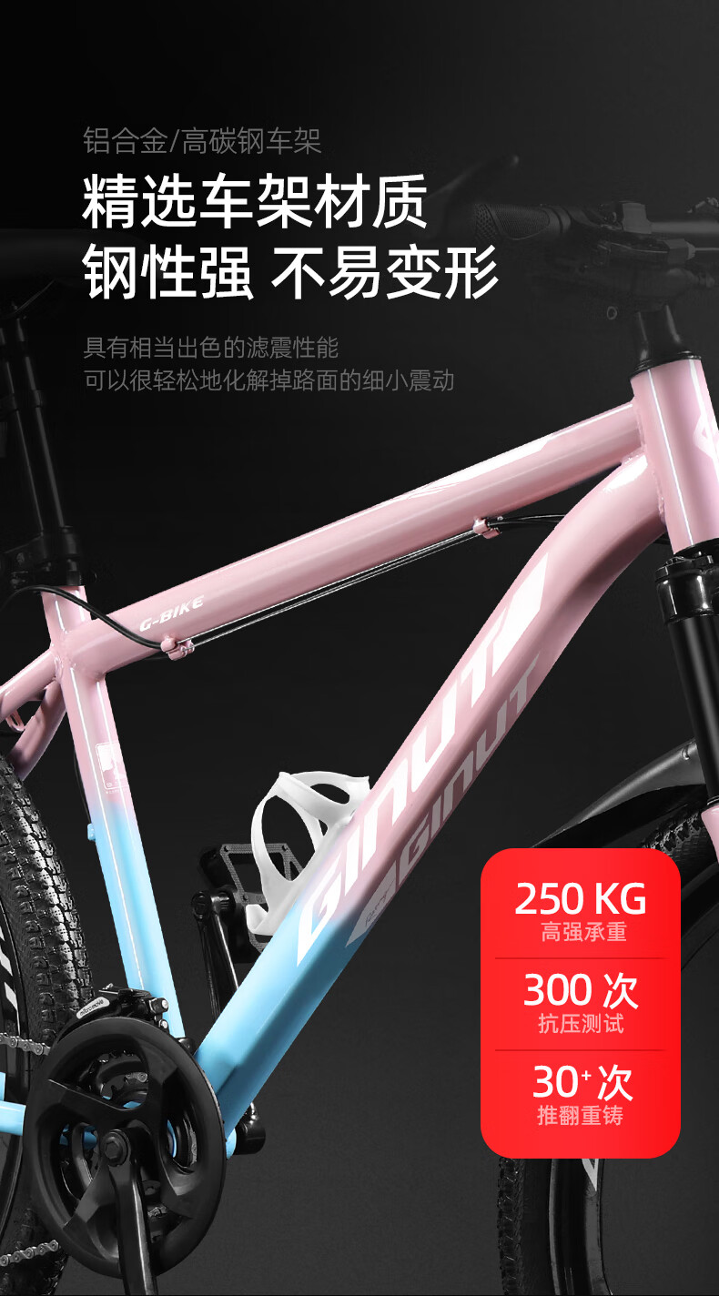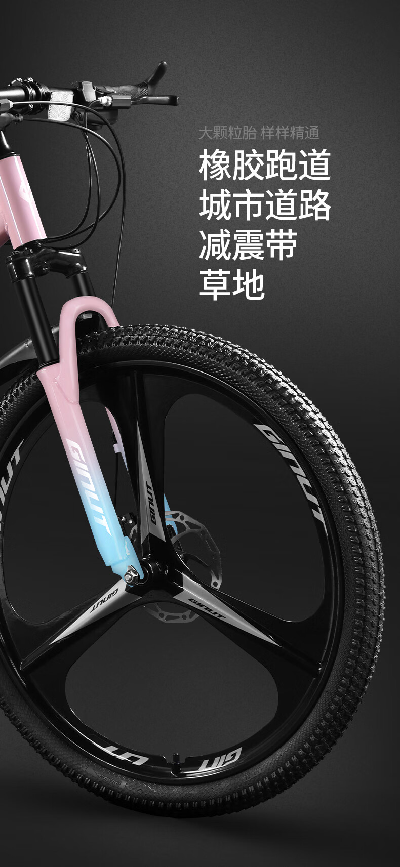 山地自行车女款成人男款男士变速公路减震单车女式初中学生青少年 钢架辐条-曜夜灰【加粗硬叉】 26寸21速