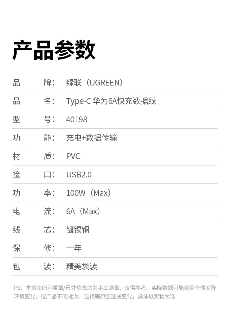 绿联Type-C数据线6A适用华为荣耀超级快充100W/66W充电线Pura80/70/Mate70/60Pro+/X6小米安卓手机短线