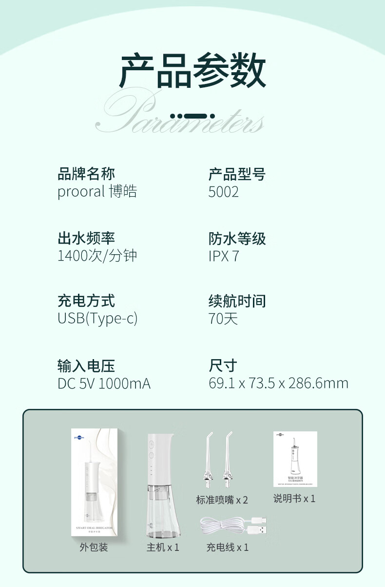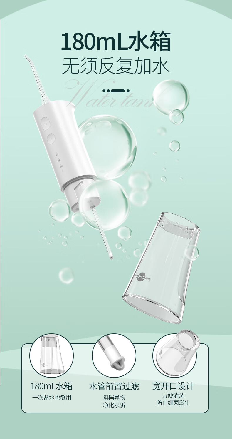 博皓(prooral)冲牙器便携式洗牙器家用洁牙器水牙线正畸牙龈敏感正畸专用清洗器牙齿冲洗器预防牙结石 F29 奶油黄-标配2支喷嘴
