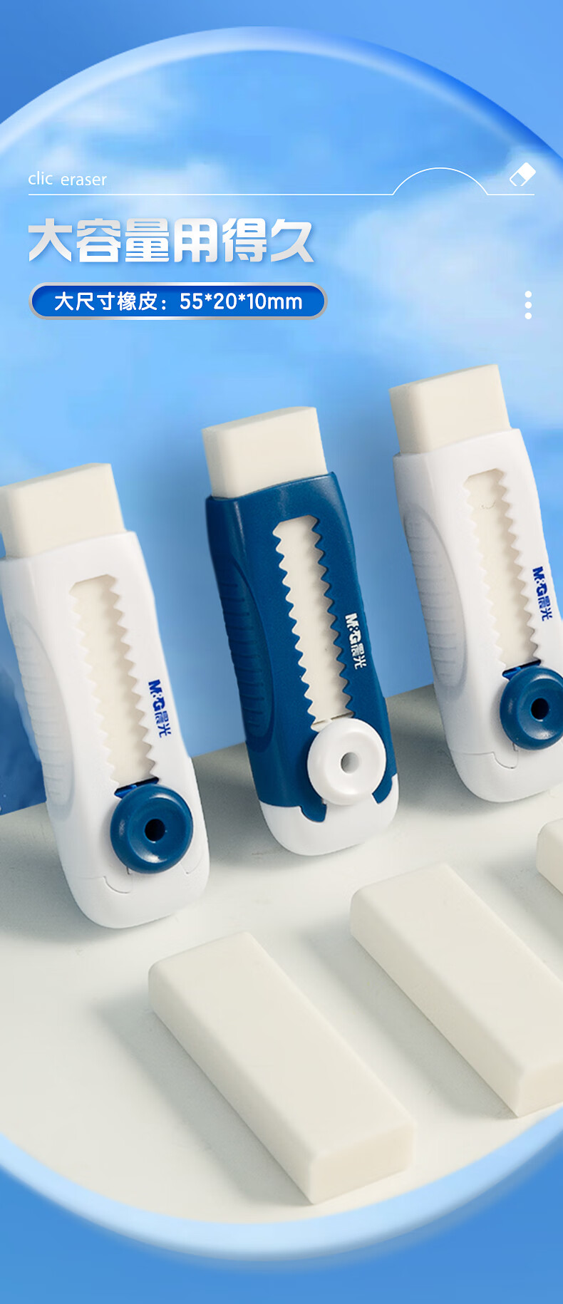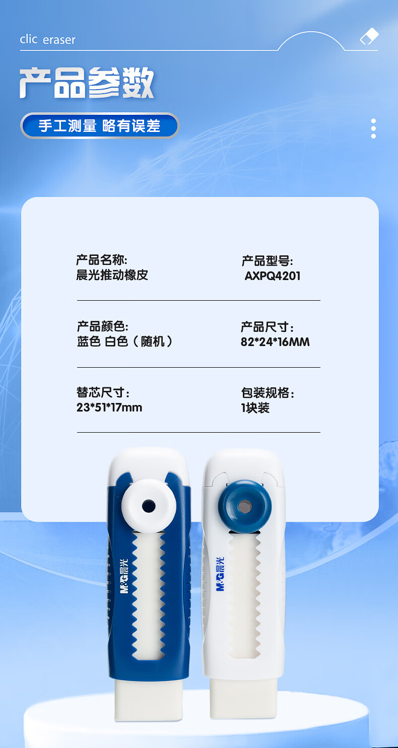 晨光(M&G)文具冰淇淋推拉橡皮擦 不易留痕少屑自锁可换芯铅笔橡皮 推动橡皮1块装 AXPQ4201