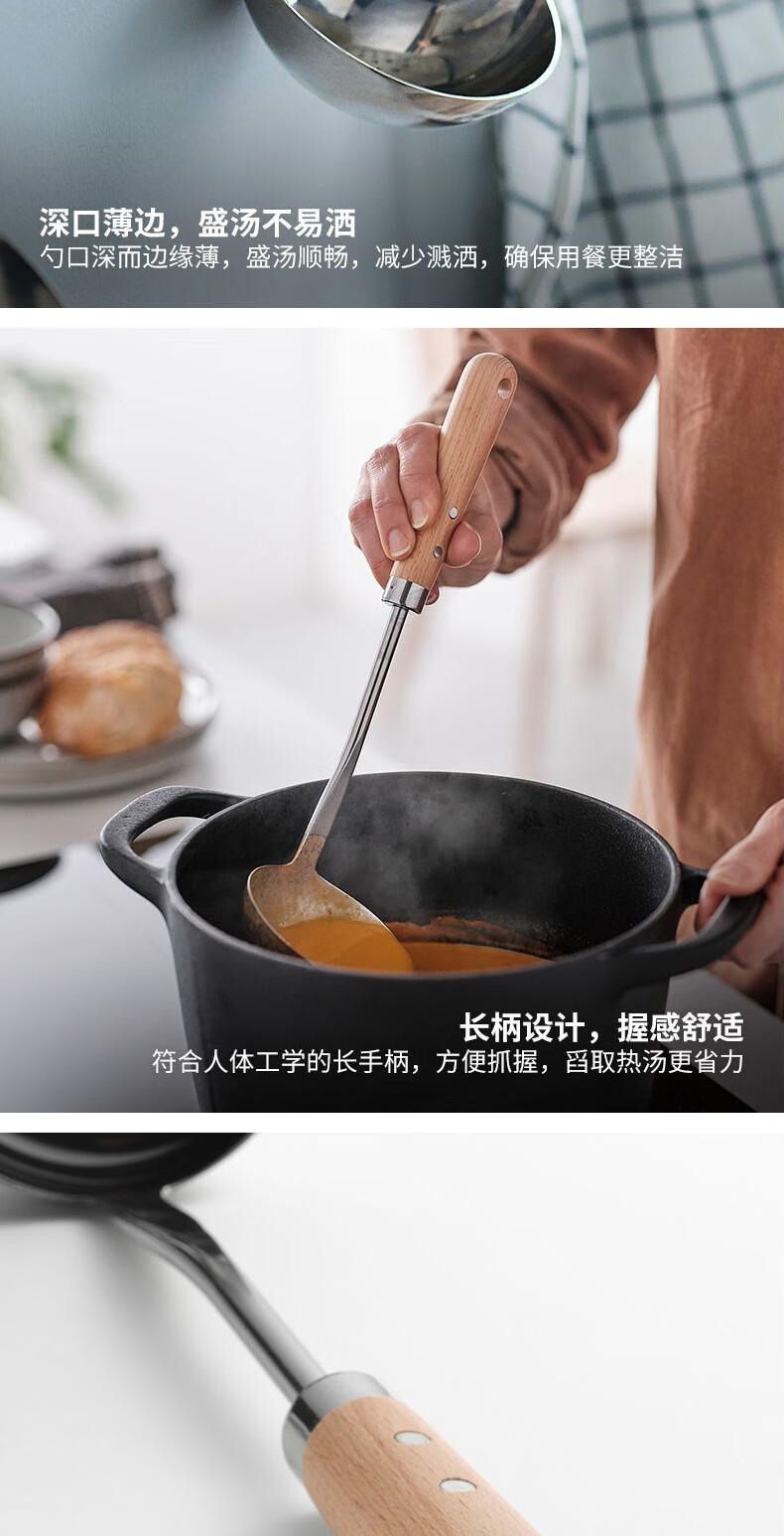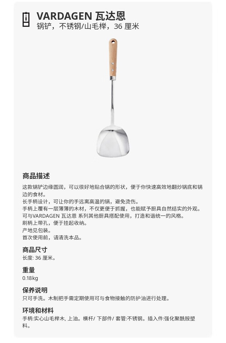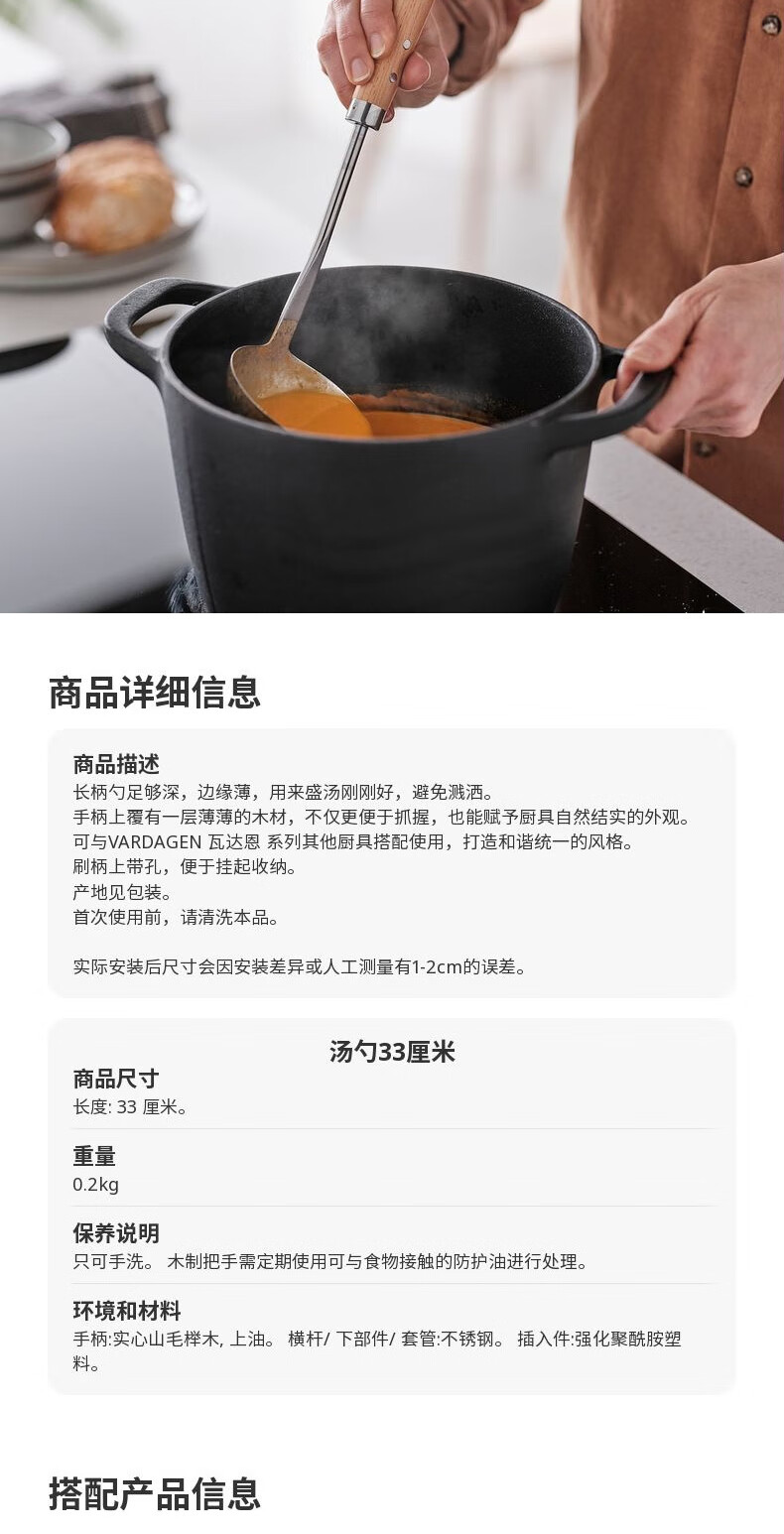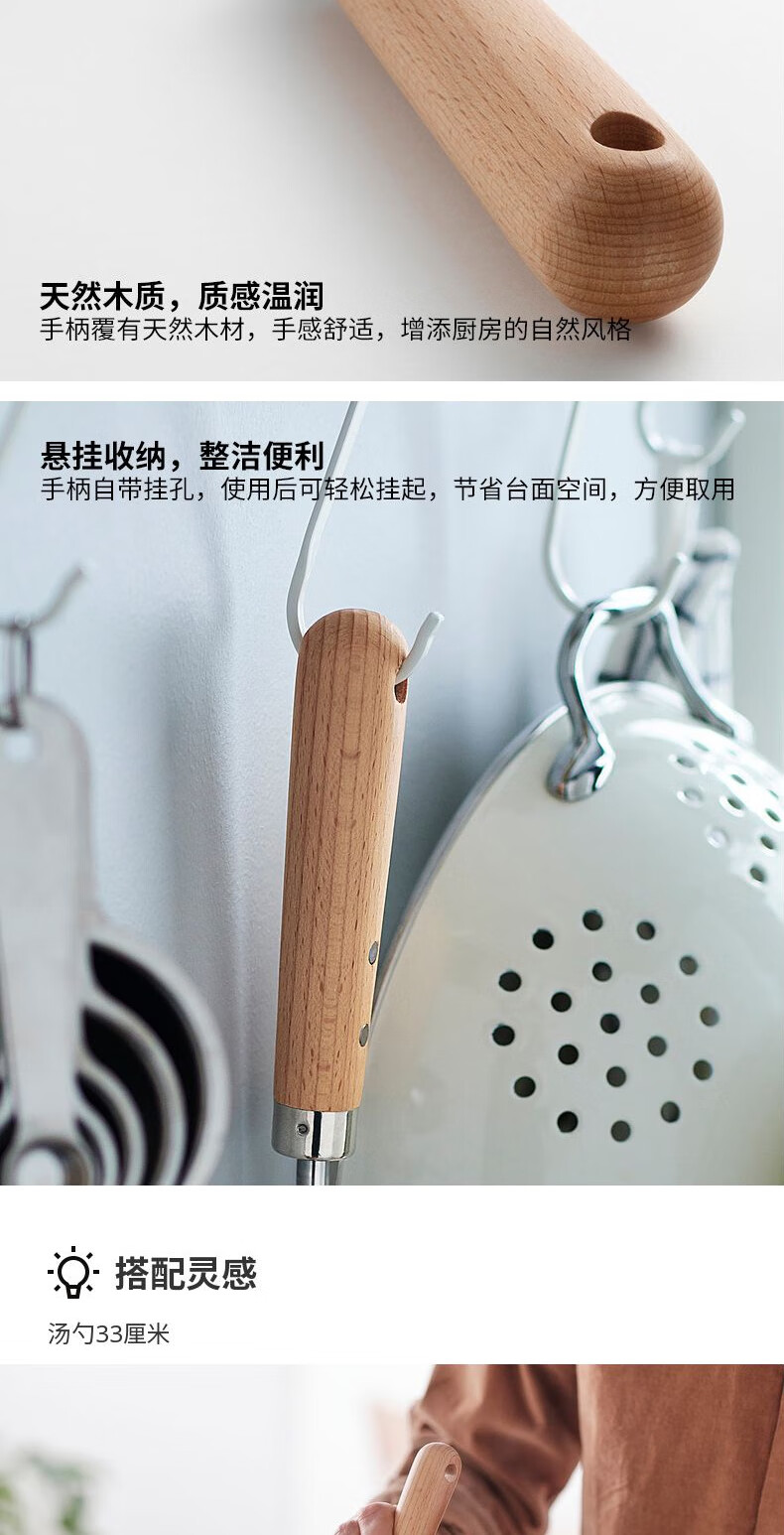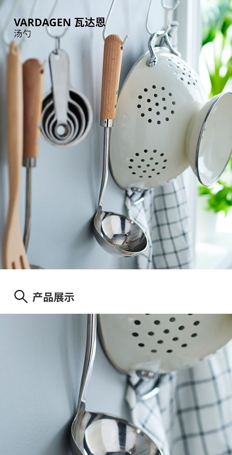 宜家(IKEA)VARDAGEN瓦达恩长柄勺不粘锅汤勺不锈钢厨具 长柄勺不锈钢/山毛榉33cm