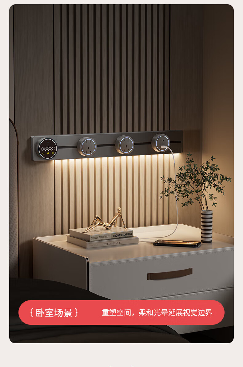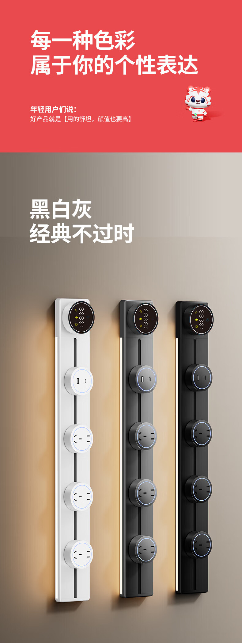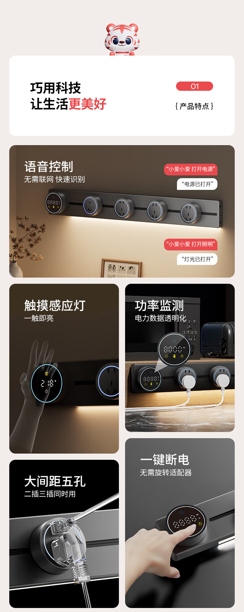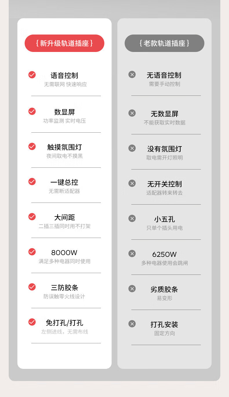 国际电工语音控制轨道插座智能数显示屏家用厨房餐边柜可移动带灯滑动插排 数显语音控制-40厘米+2大五孔(带灯)