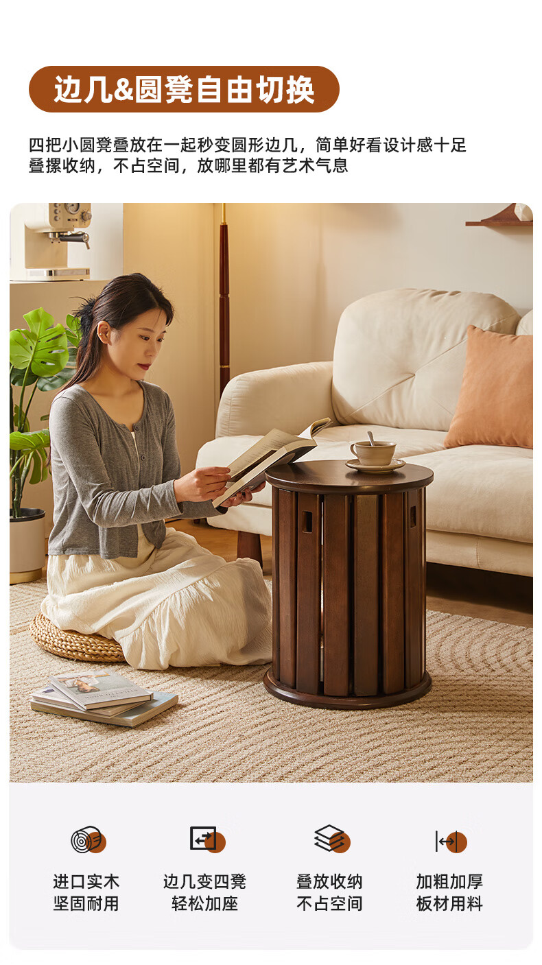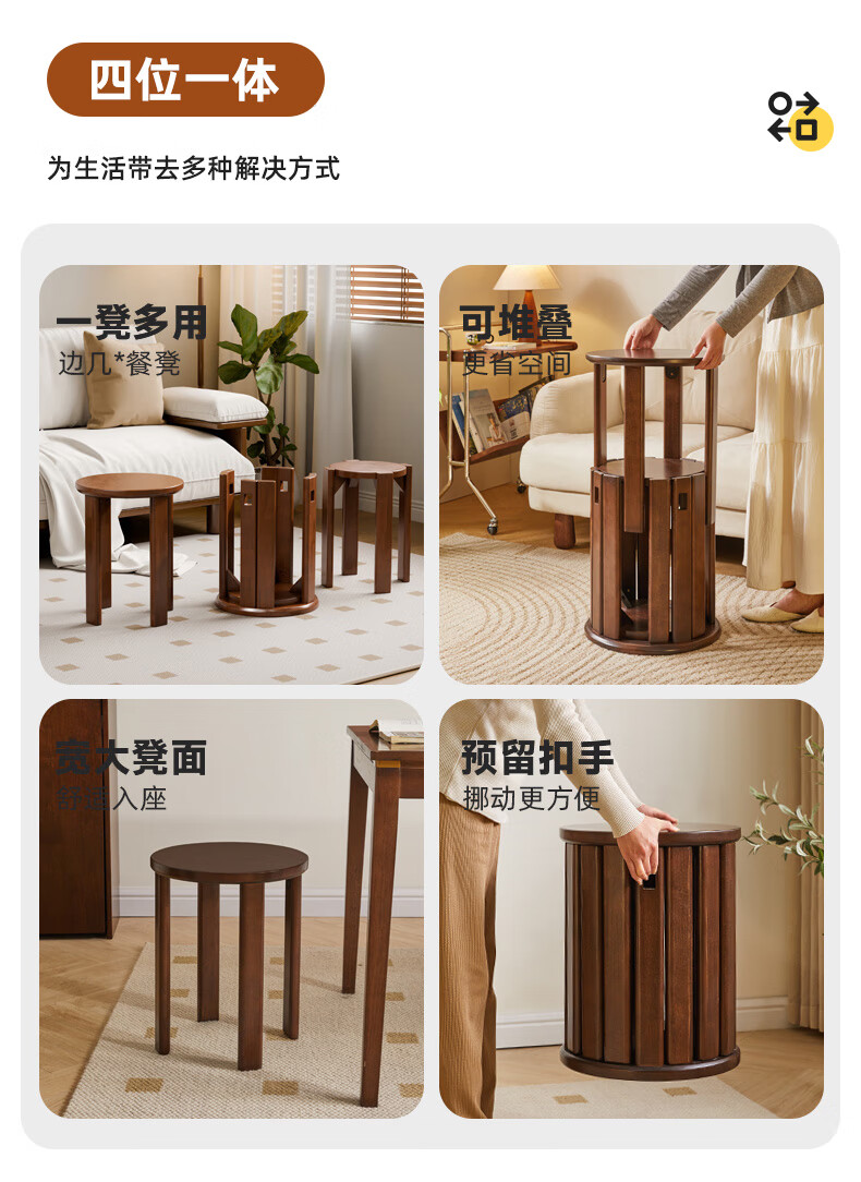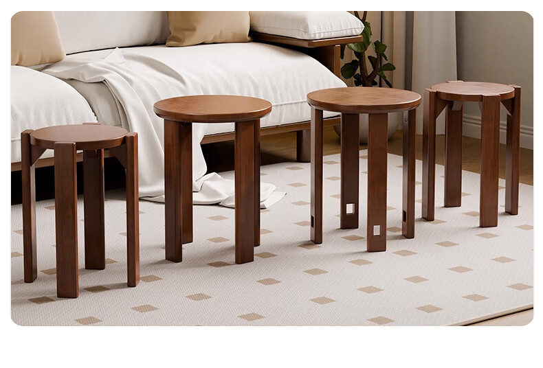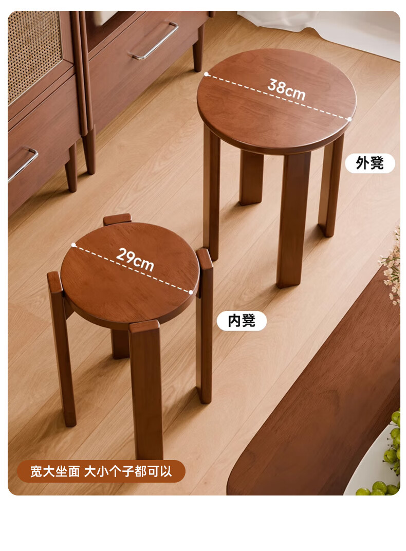 家逸实木凳子家用可叠放圆凳叠叠乐组合凳客厅板凳吃饭餐凳椅子堆叠凳