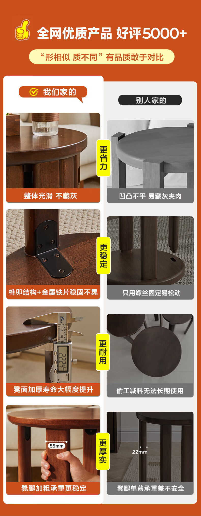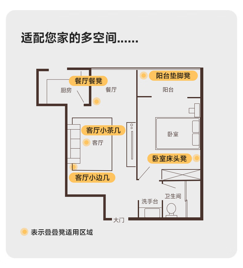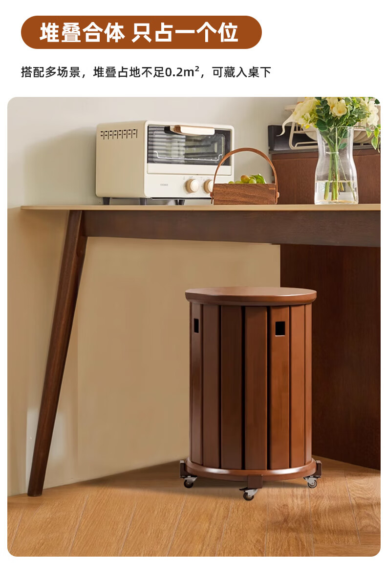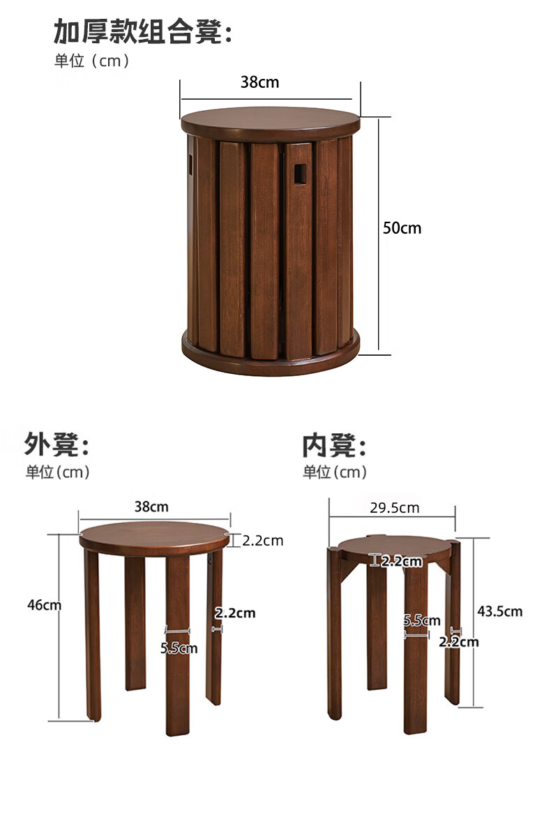 家逸实木凳子家用可叠放圆凳叠叠乐组合凳客厅板凳吃饭餐凳椅子堆叠凳