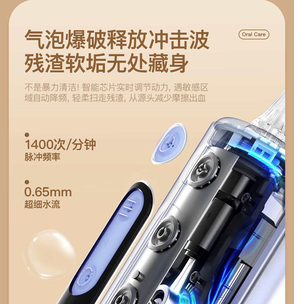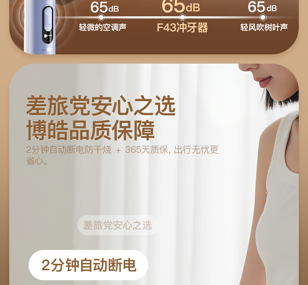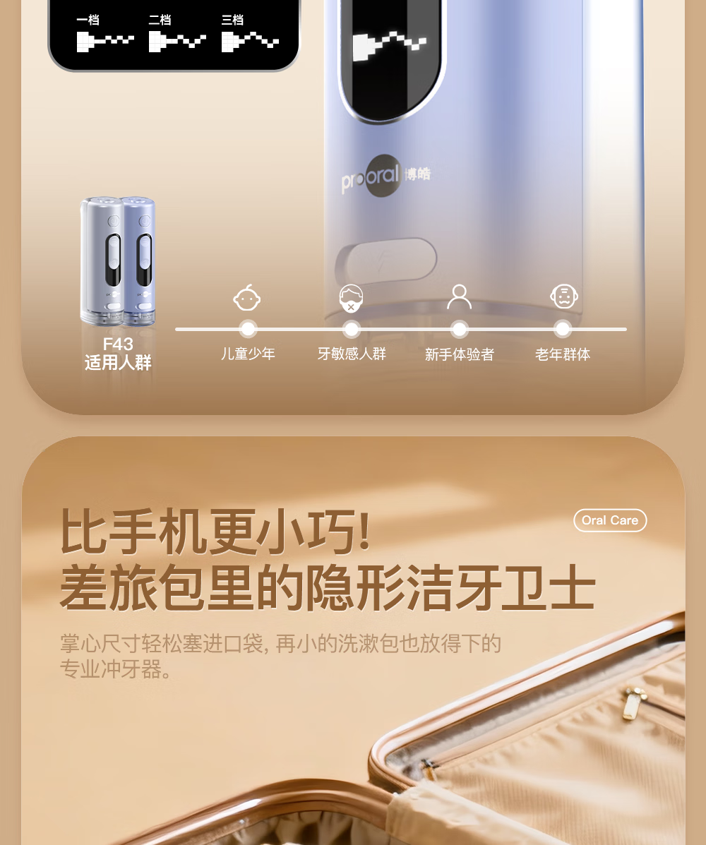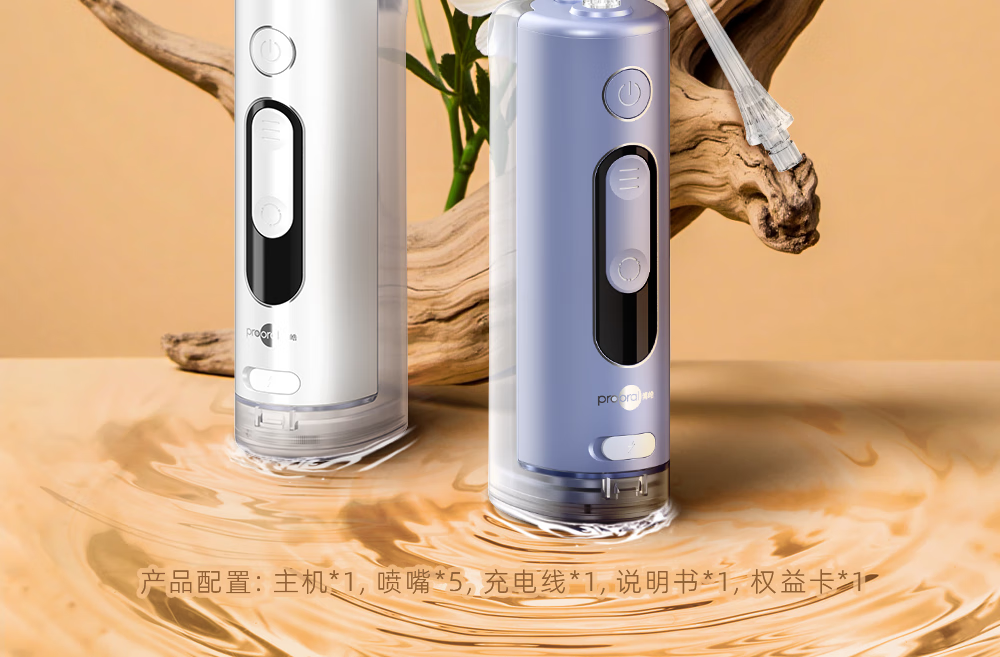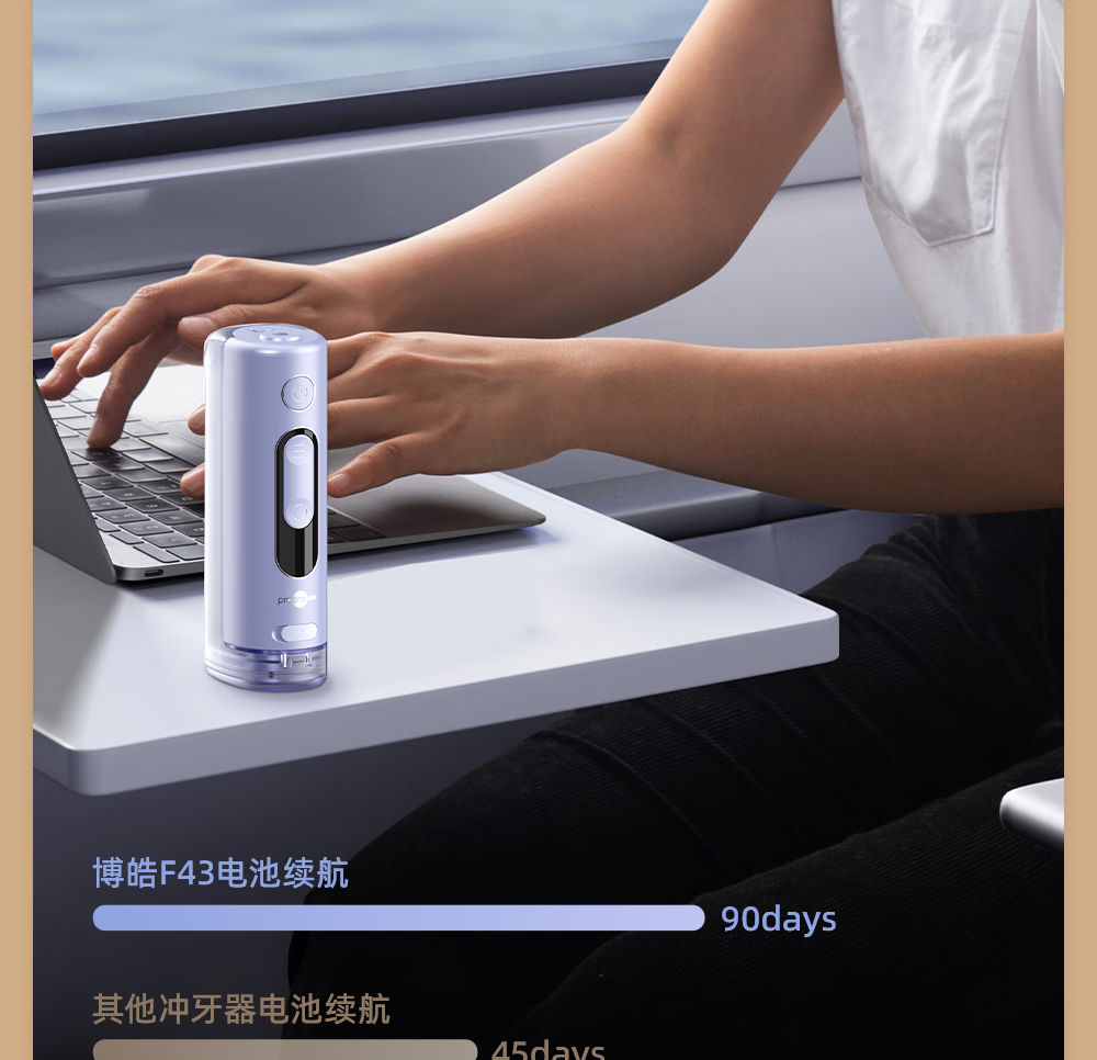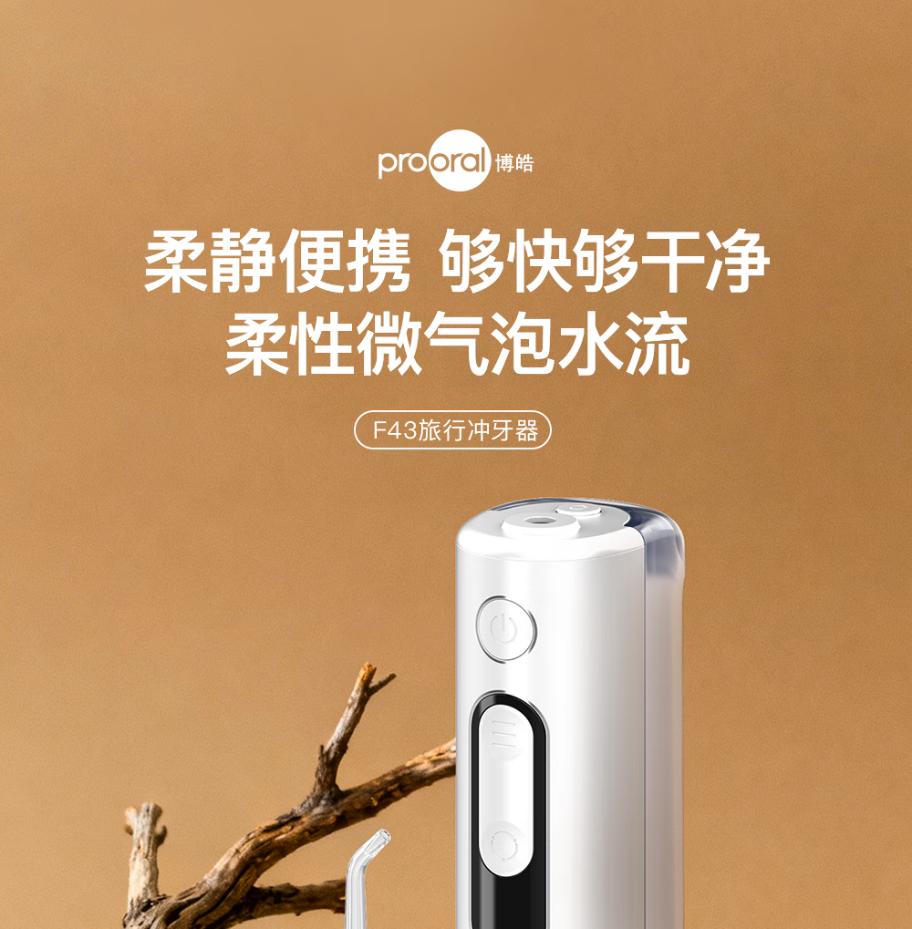 博皓(prooral)冲牙器便携式洗牙器牙齿冲洗器家用电动洁牙器水牙线正畸专用牙垢去除工具深度清洁医用美牙仪 F43 象牙白