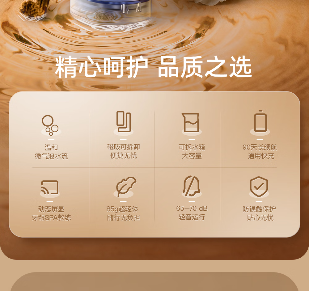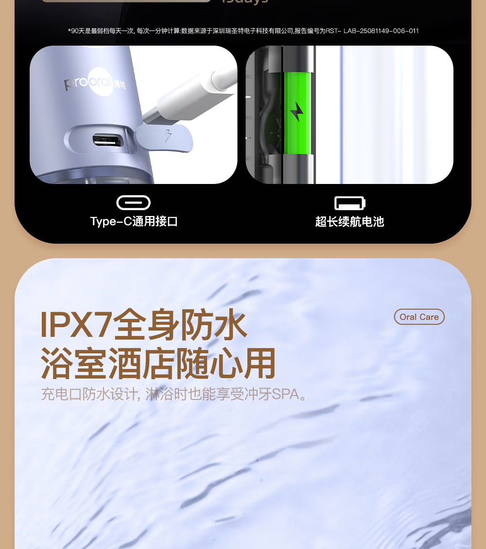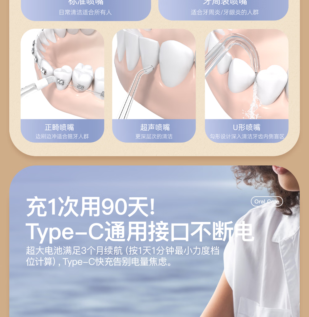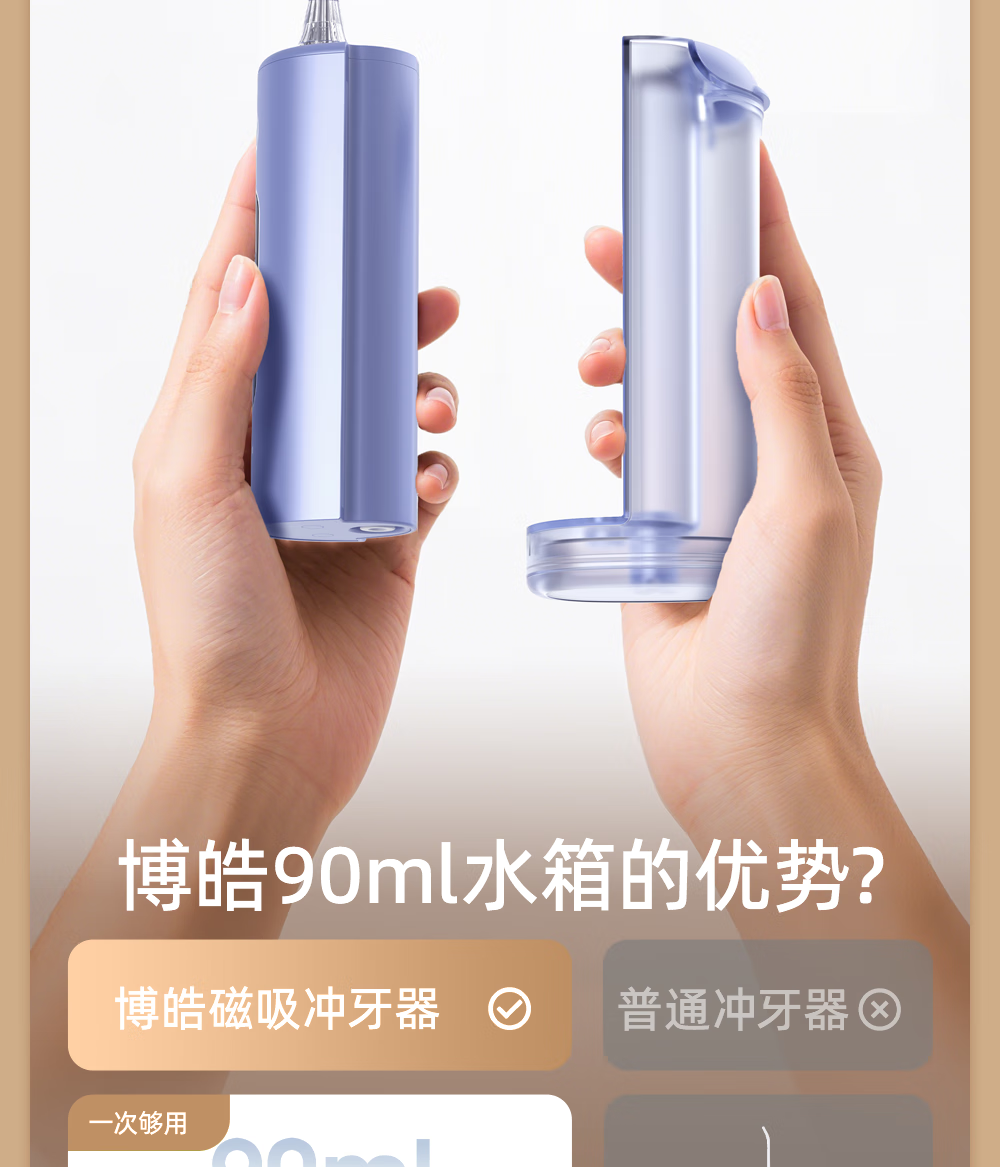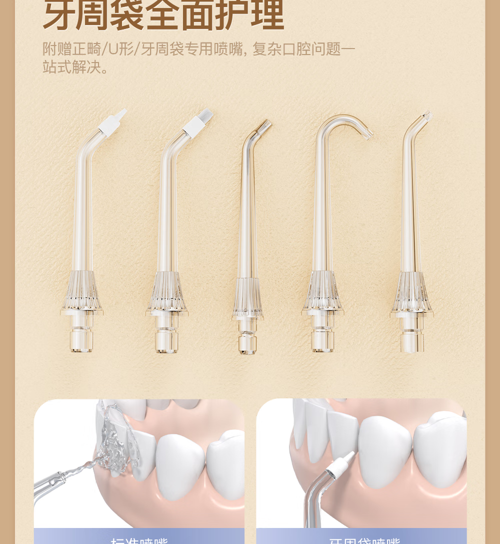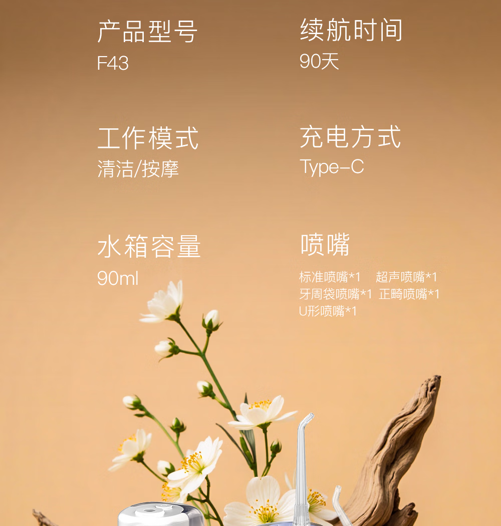 博皓(prooral)冲牙器便携式洗牙器牙齿冲洗器家用电动洁牙器水牙线正畸专用牙垢去除工具深度清洁医用美牙仪 F43 象牙白