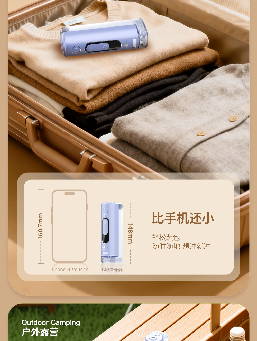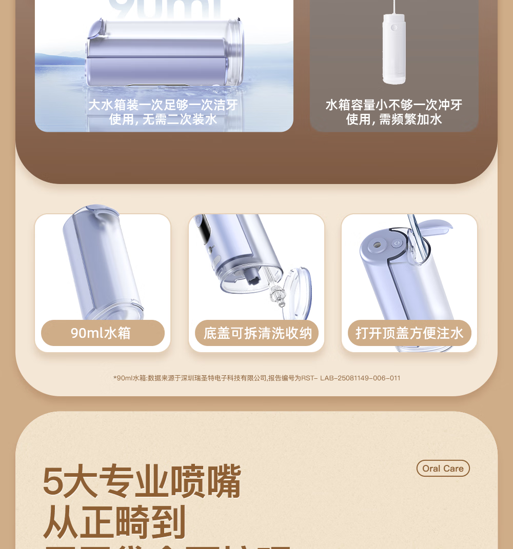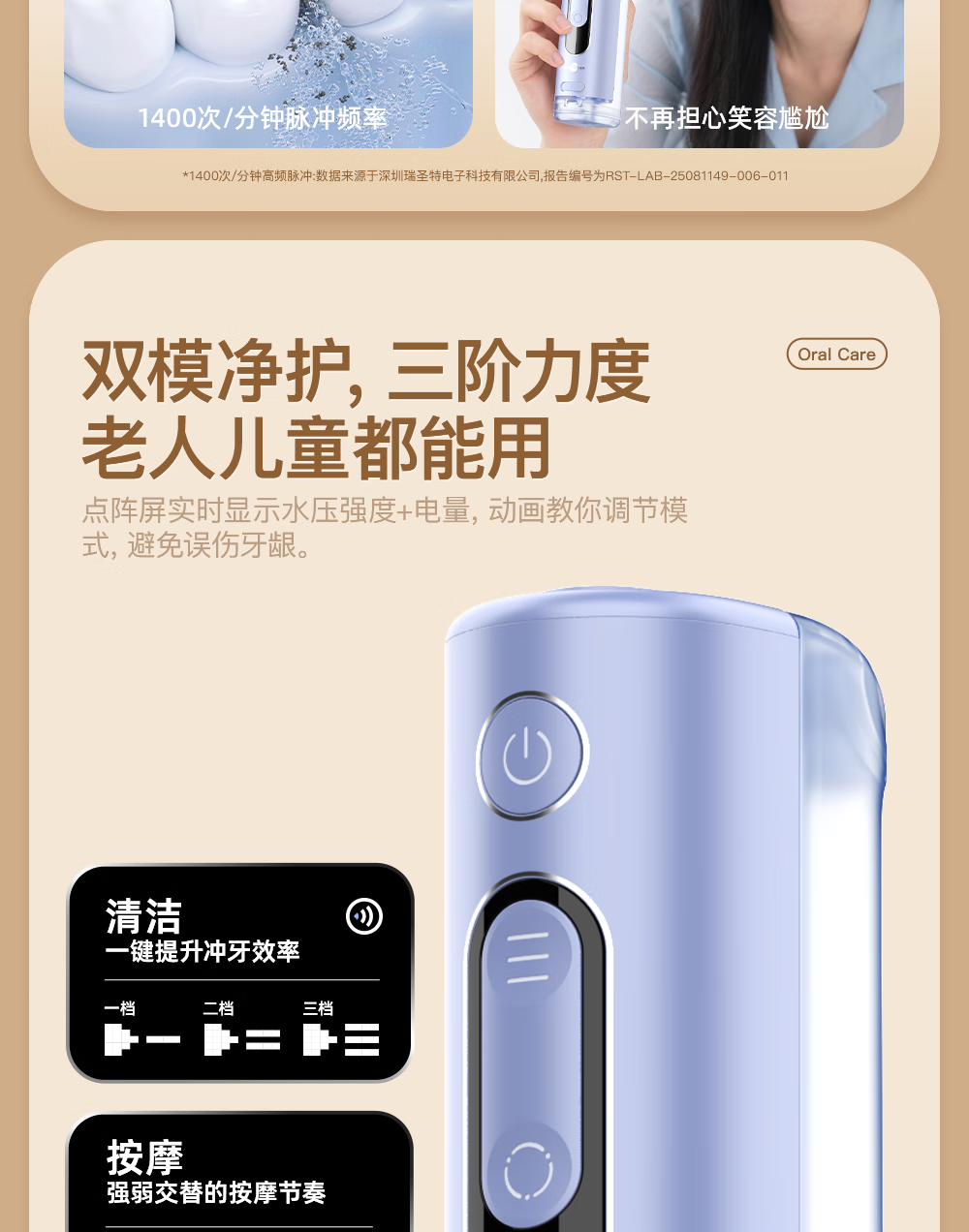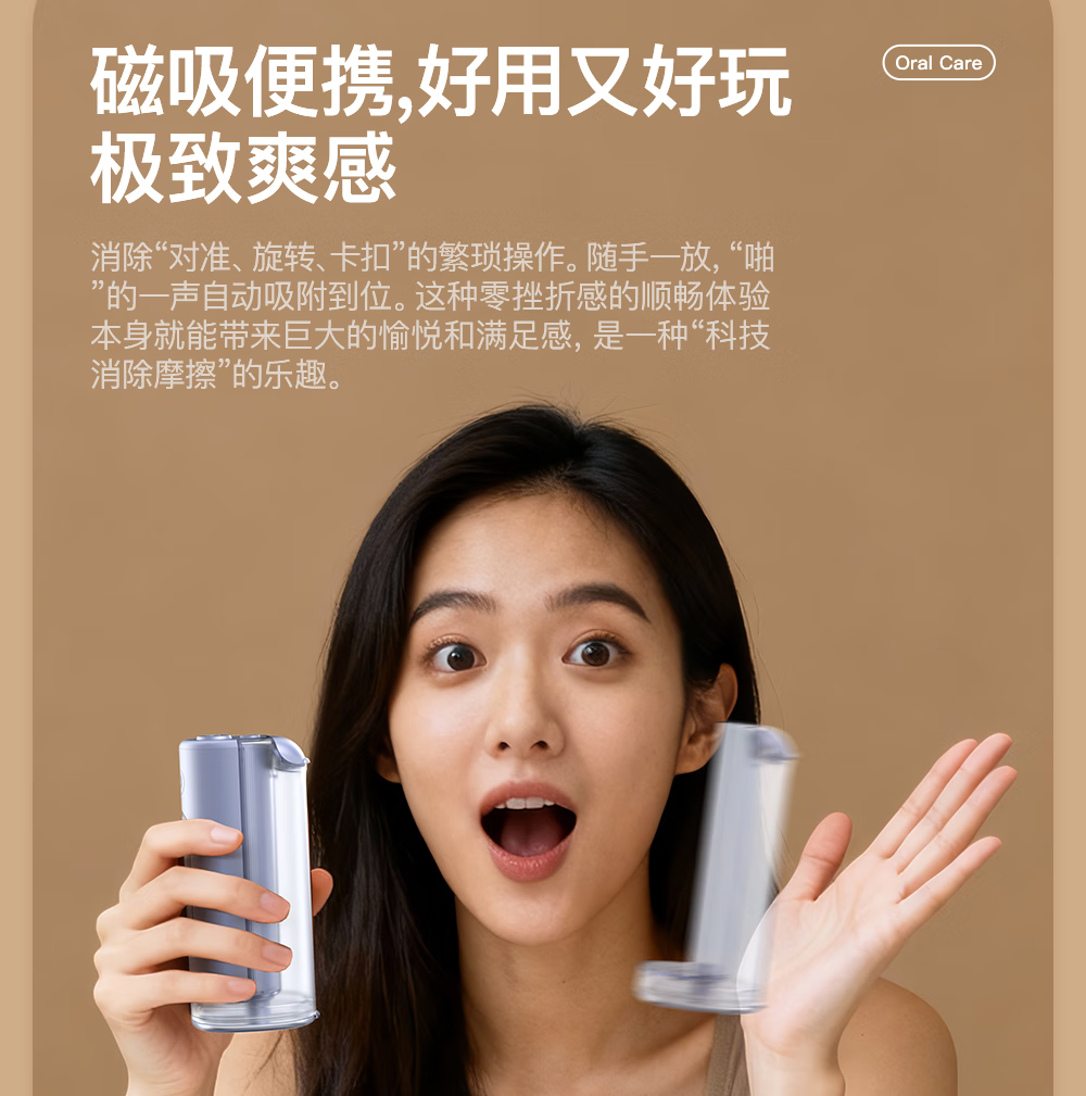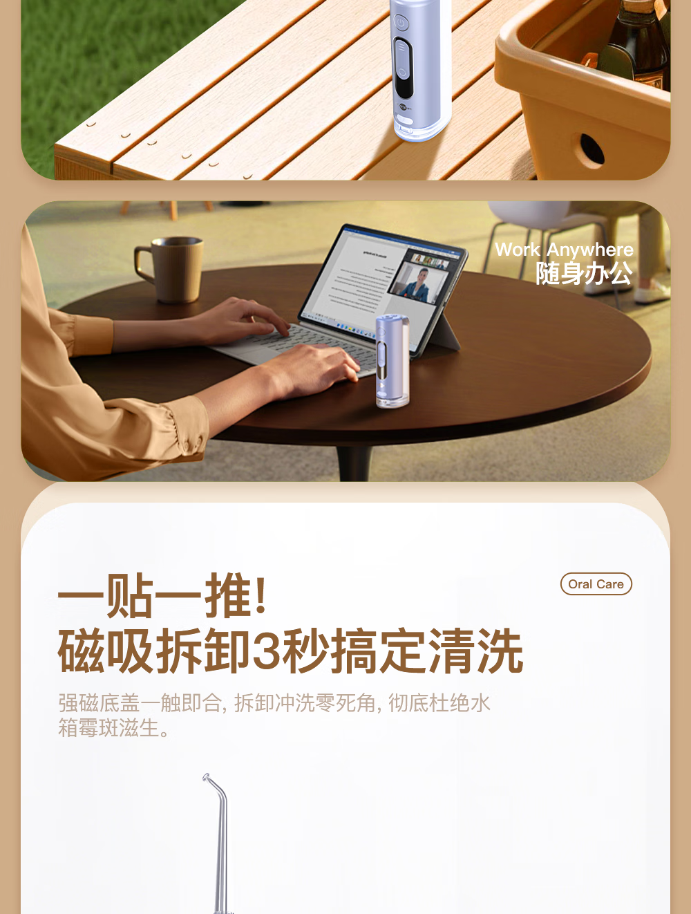 博皓(prooral)冲牙器便携式洗牙器牙齿冲洗器家用电动洁牙器水牙线正畸专用牙垢去除工具深度清洁医用美牙仪 F43 象牙白