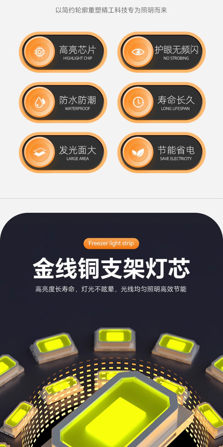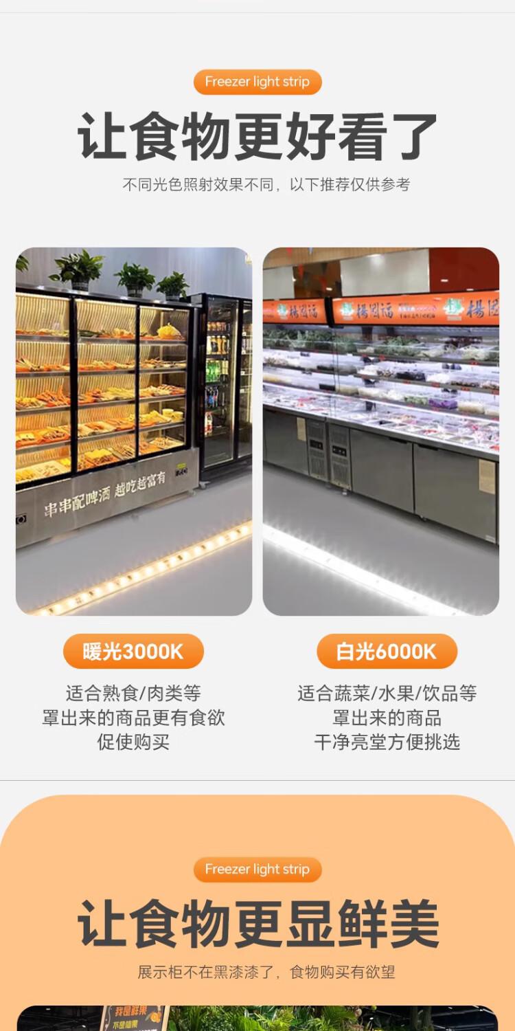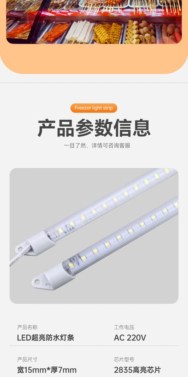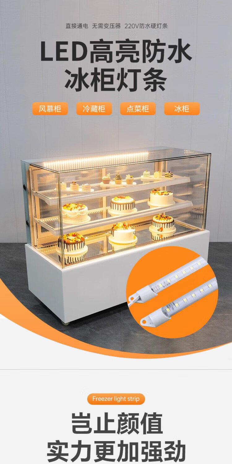 振牛冰柜防水led冷柜硬灯条冷藏冰箱灯带鱼缸点菜柜保鲜柜展示柜灯管 0.2米/4W 220V冰柜防水灯条