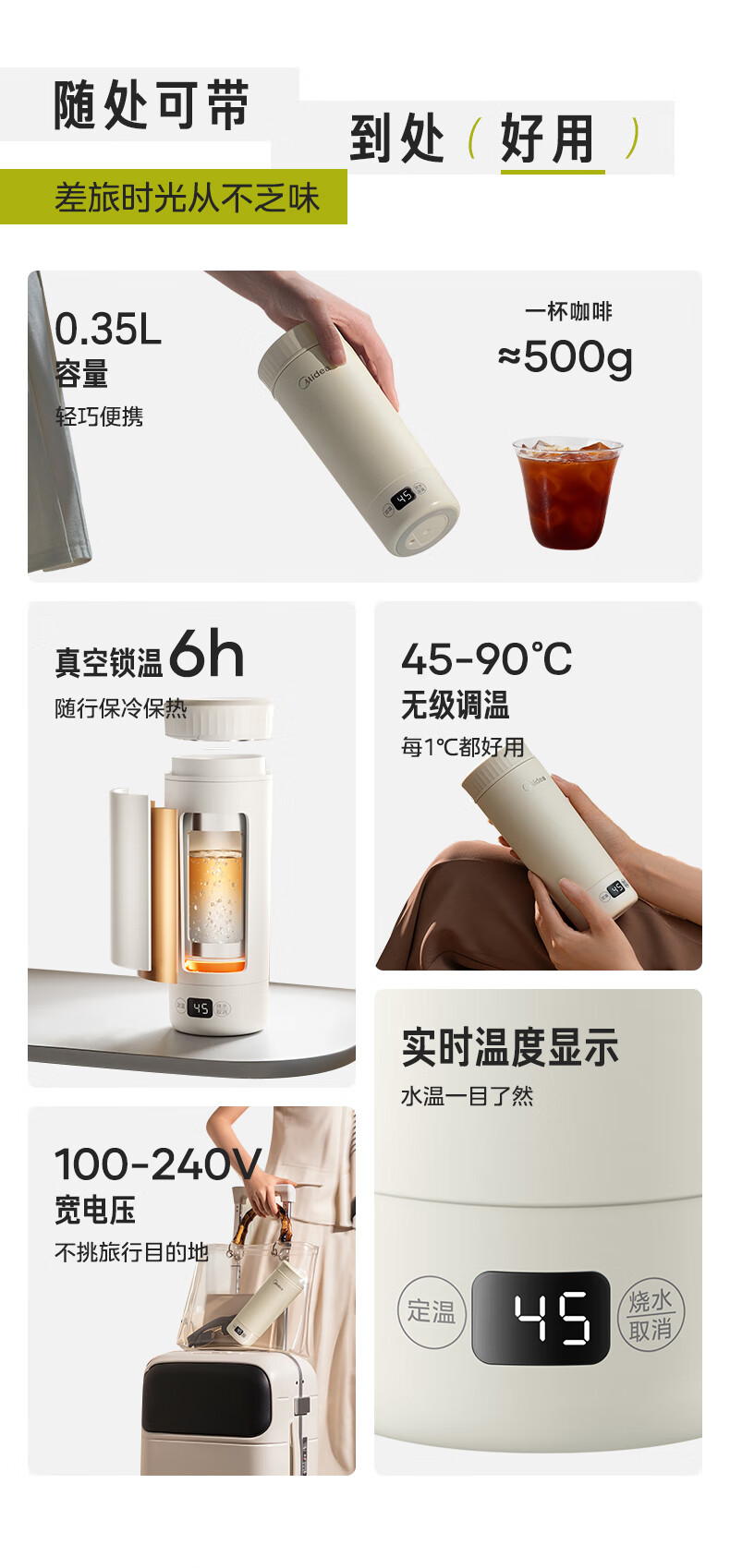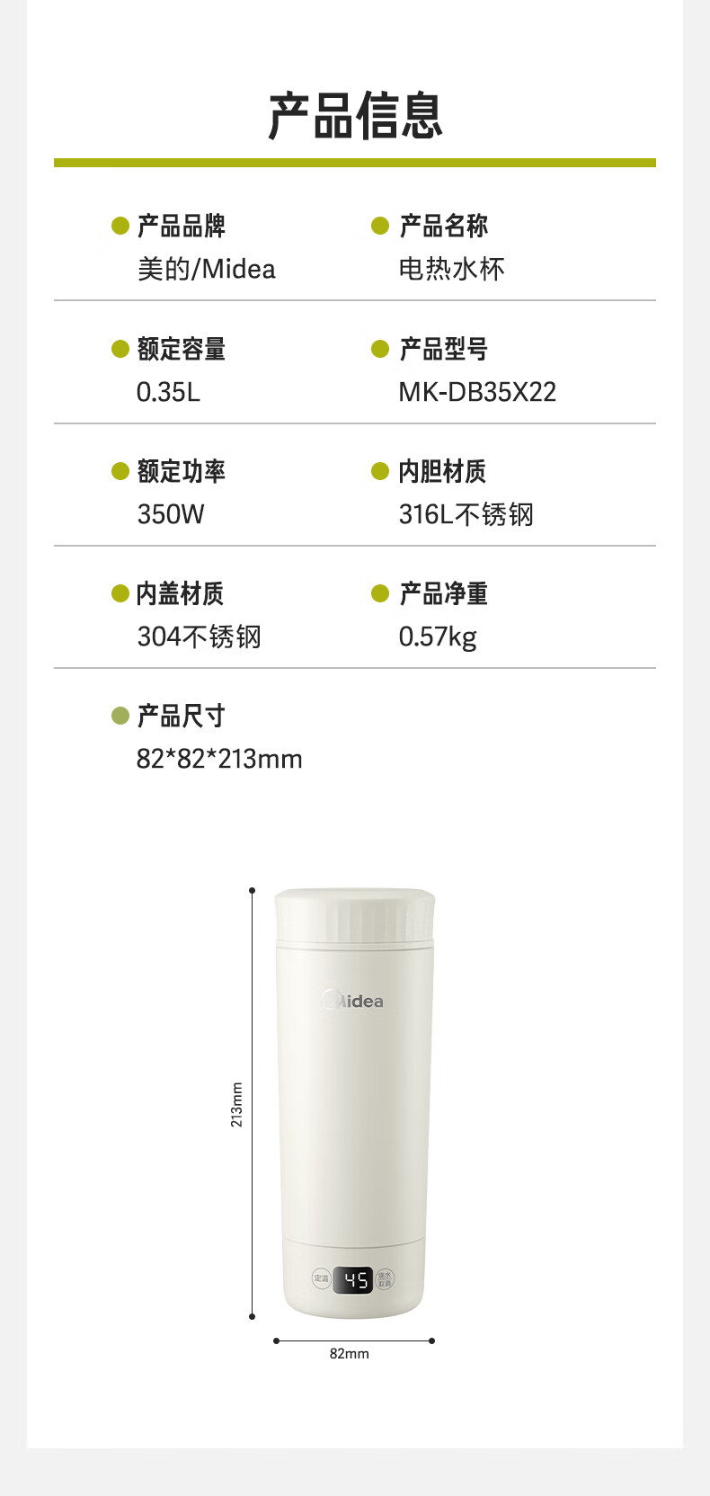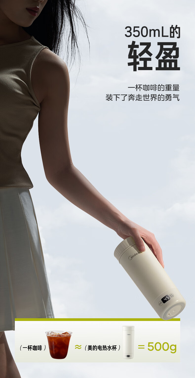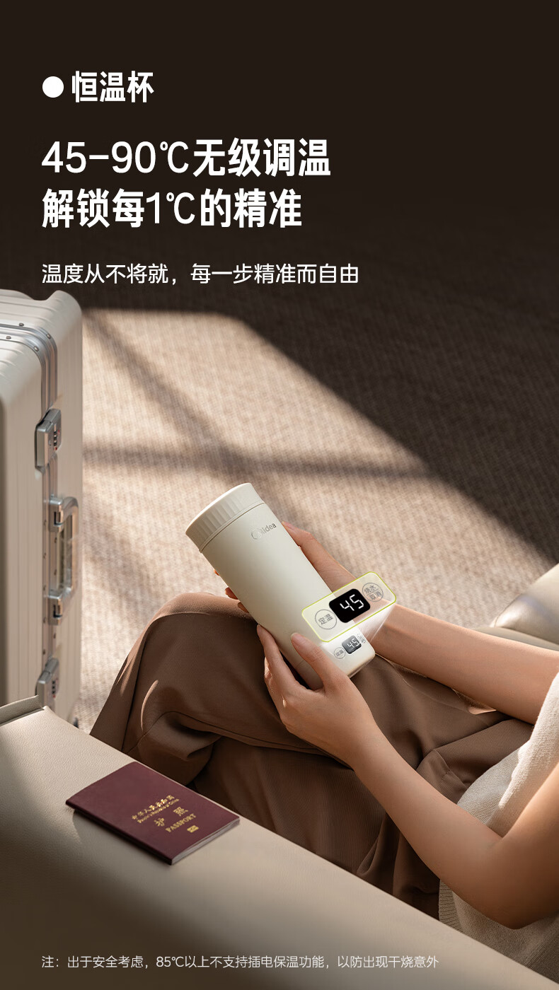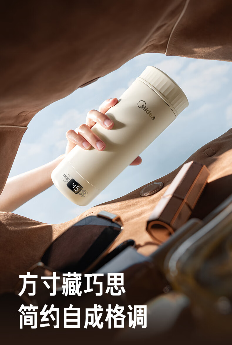美的(Midea)便携式电热水杯 电热水壶 保温烧水杯 350ml迷你便携式旅行出差 智能恒温加热杯 316L不锈钢无异味 0.35L 【精准控温】MK-DB35X22