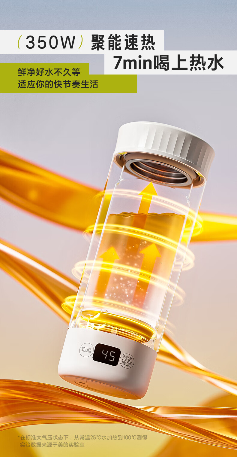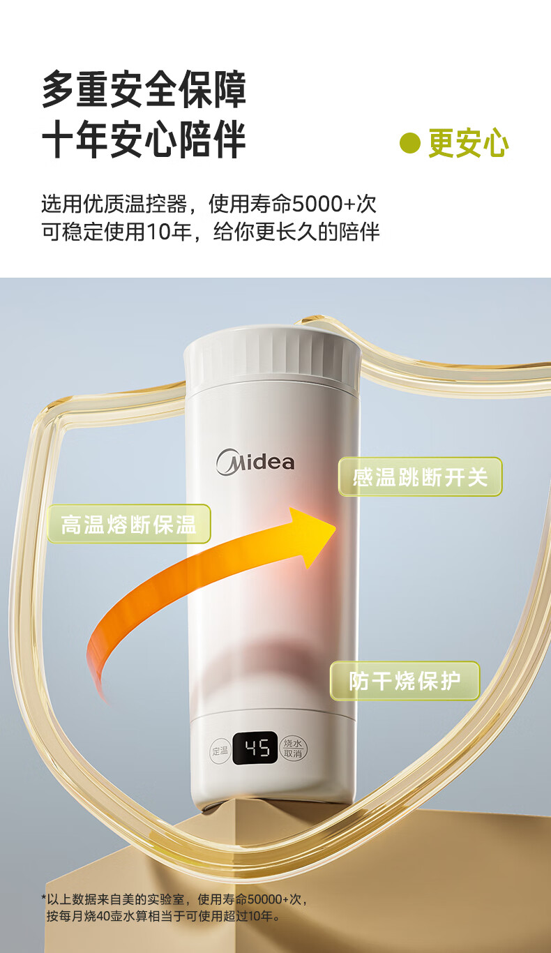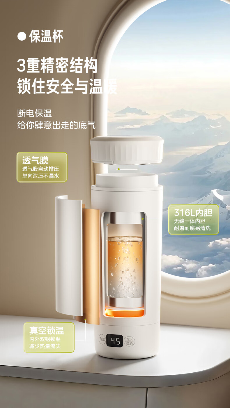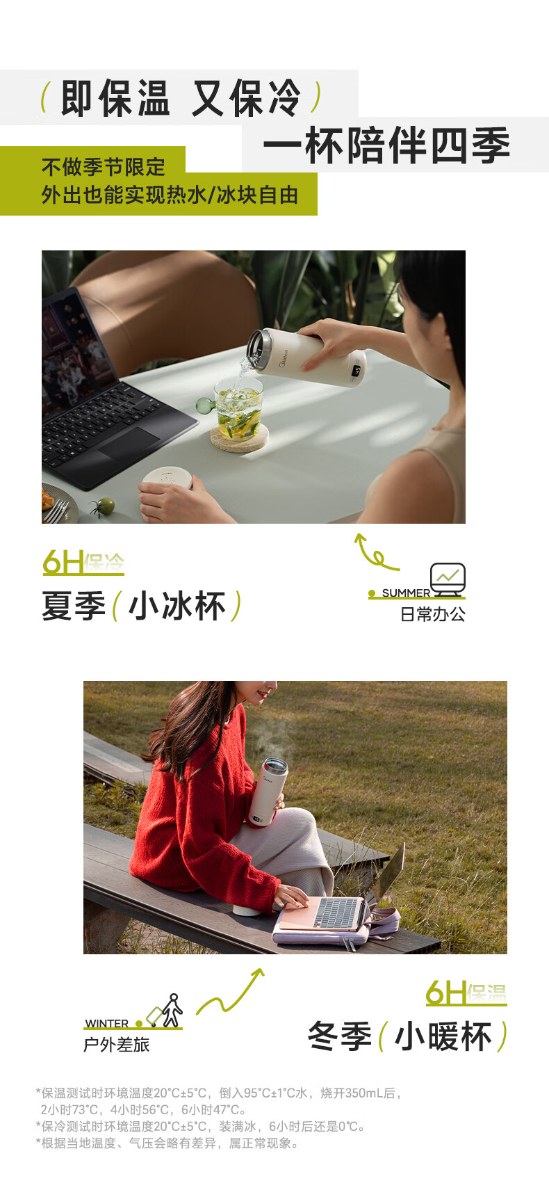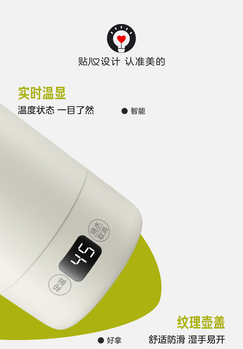 美的(Midea)便携式电热水杯 电热水壶 保温烧水杯 350ml迷你便携式旅行出差 智能恒温加热杯 316L不锈钢无异味 0.35L 【精准控温】MK-DB35X22