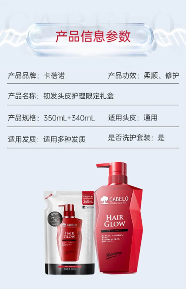 卡蓓诺(CABELO)防脱洗发水加强型深层焕活头皮掉发发量稀少适用【日本原装进口】 【强韧防脱】焕活头皮 洗发水补充装 340ml*1袋